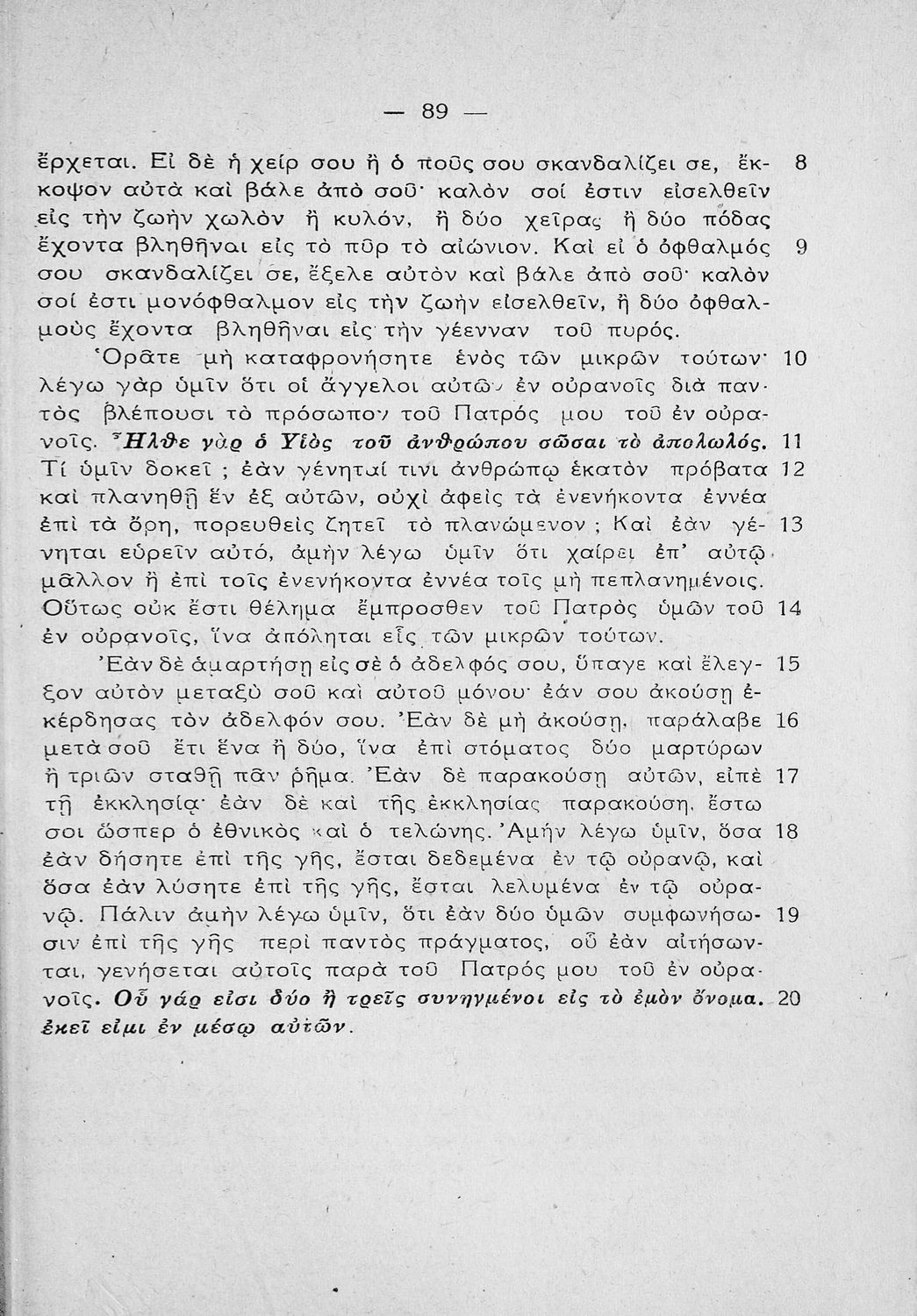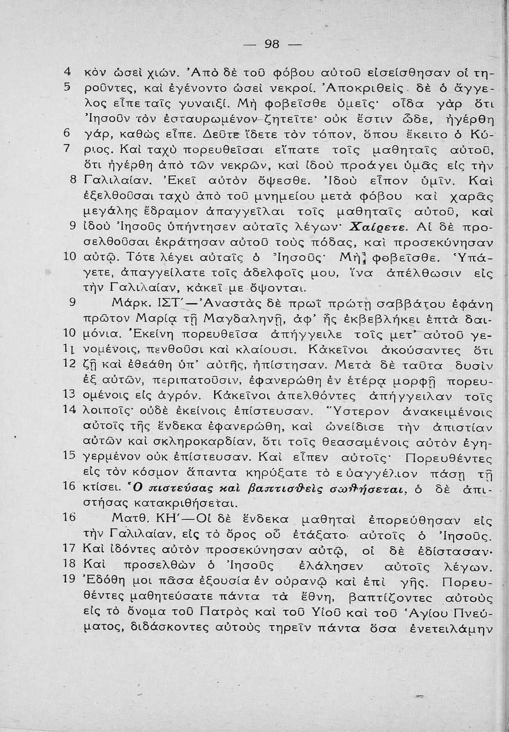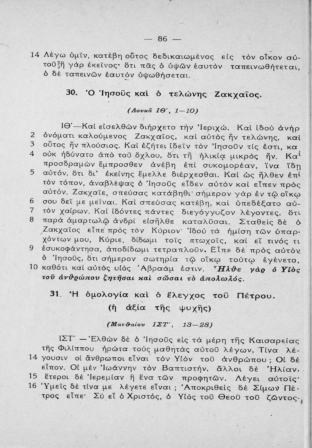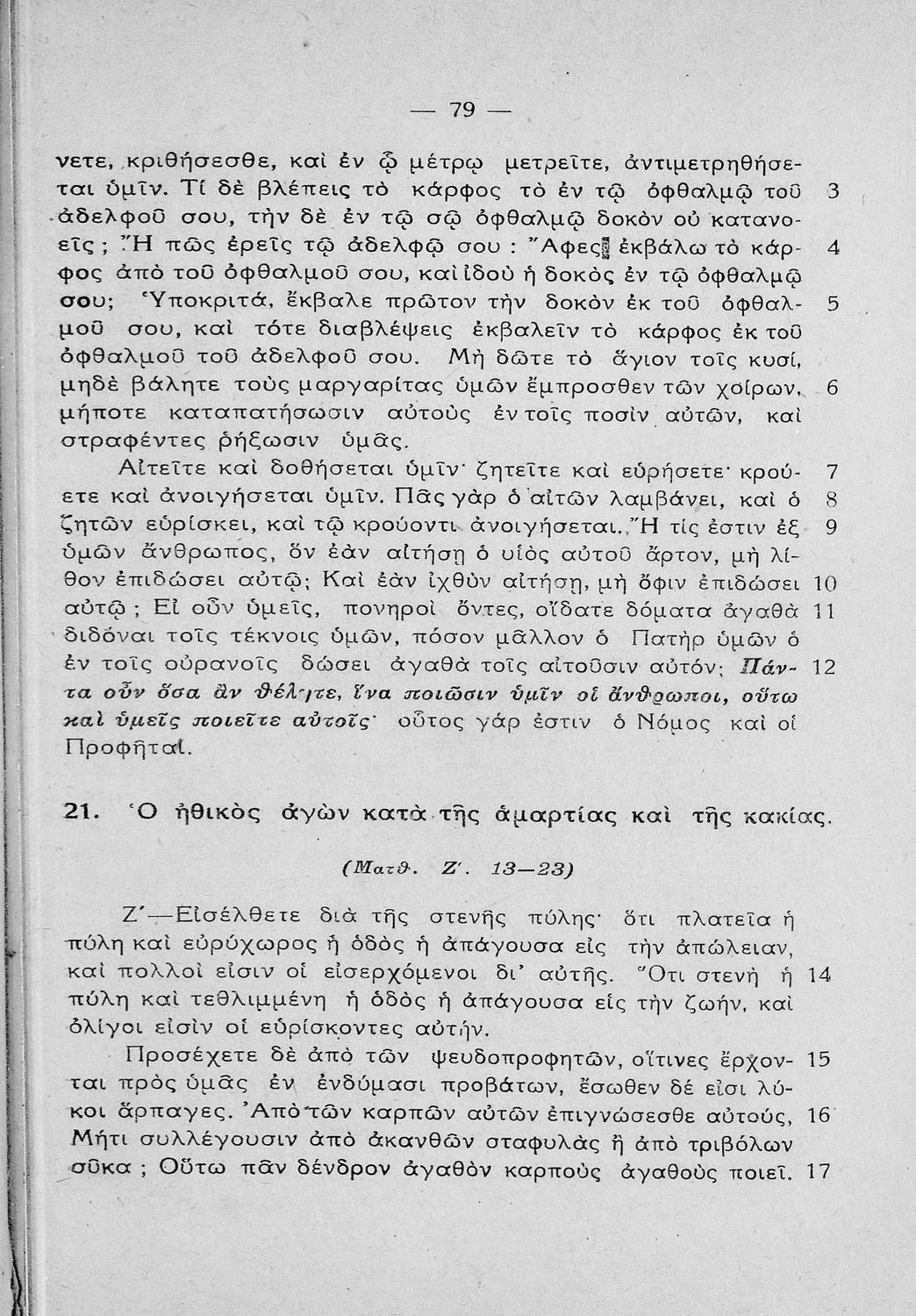 Σχολικό εγχειρίδιο Θρησκευτικών για την Γ΄ Γυμνασίου, τα Διδασκαλεία και τα Ανώτερα Παρθεναγωγεία που περιέχει περικοπές από τα βιβλία της Καινής Διαθήκης και ερμηνευτικές σημειώσεις.