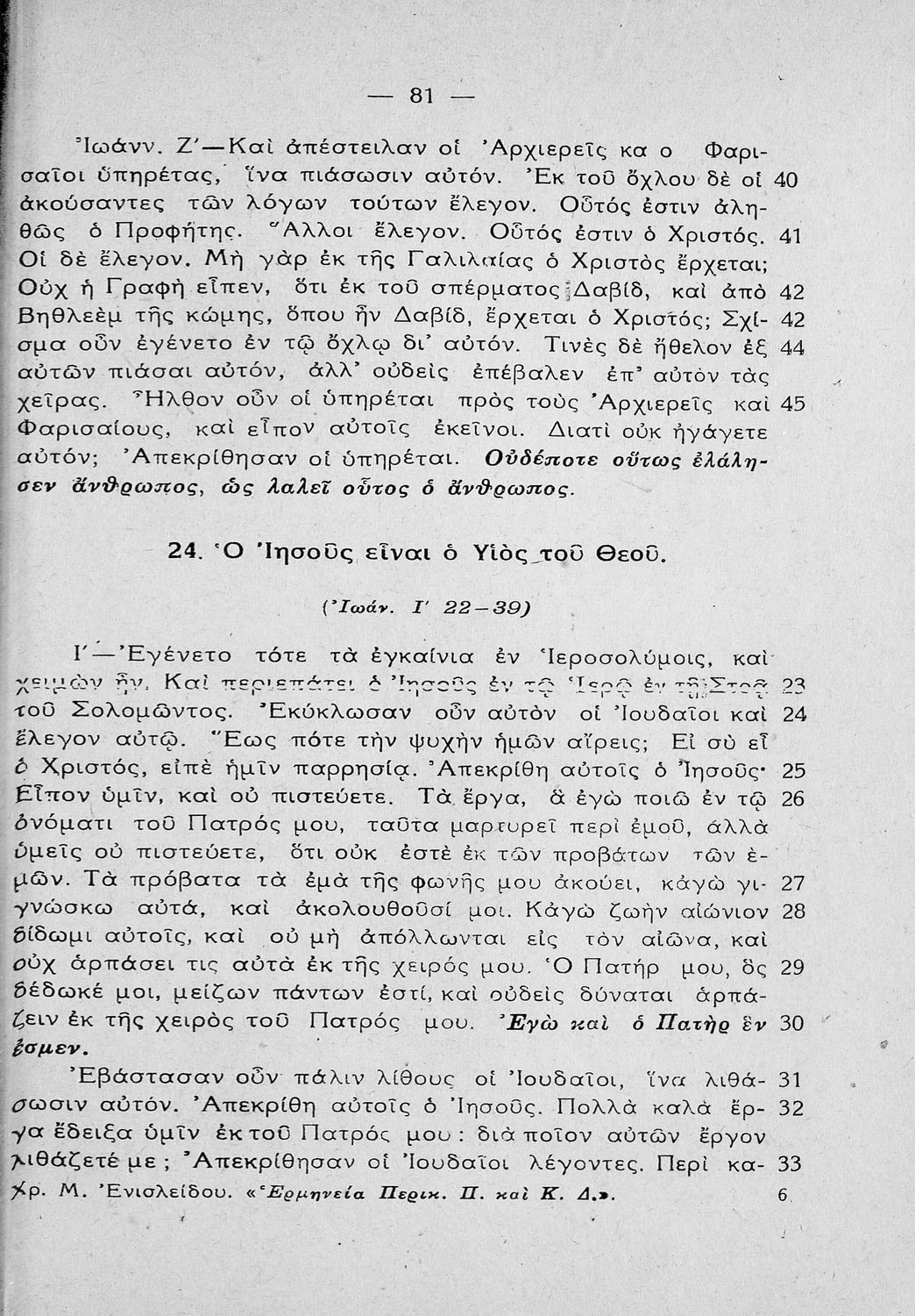 Ερμηνεία Περικοπών από τα ιστορικά βιβλία της Αγίας Γραφής (Παλαιάς και Καινής), προς χρήσιν των μαθητών της Πέμπτης τάξεως των Οκταταξίων Γυμνασίων και της Τρίτης των Εξαταξίων