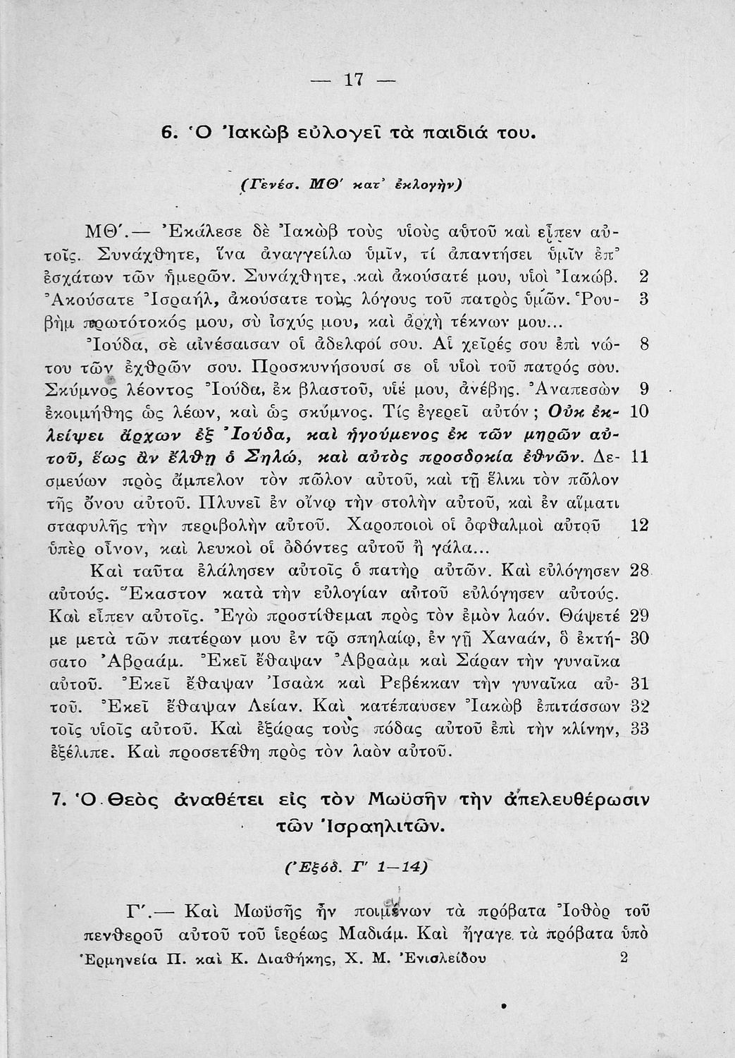 Ερμηνεία Περικοπών από τα ιστορικά βιβλία της Αγίας Γραφής (Παλαιάς και Καινής), προς χρήσιν των μαθητών της Πέμπτης τάξεως των Οκταταξίων Γυμνασίων και της Τρίτης των Εξαταξίων