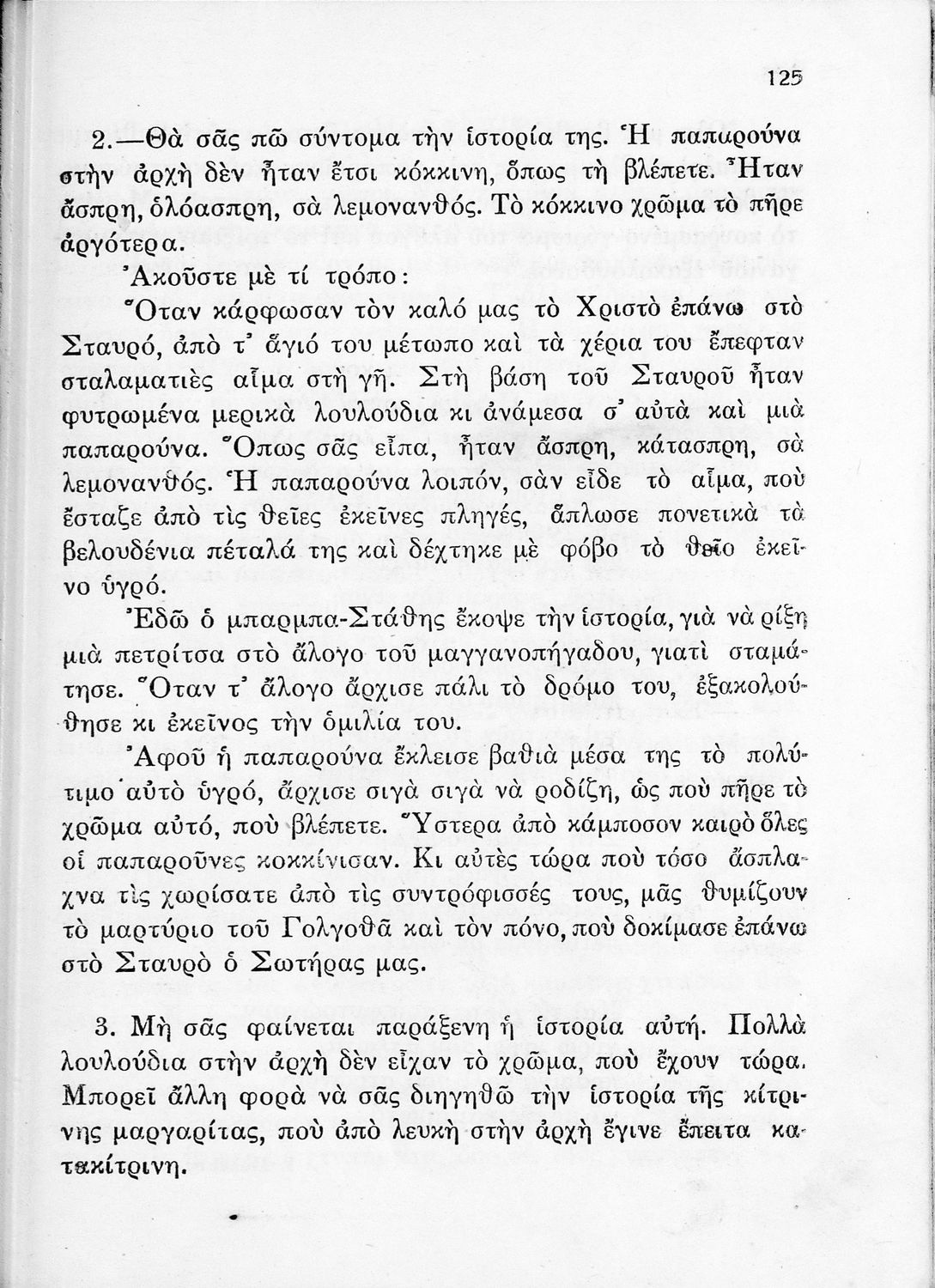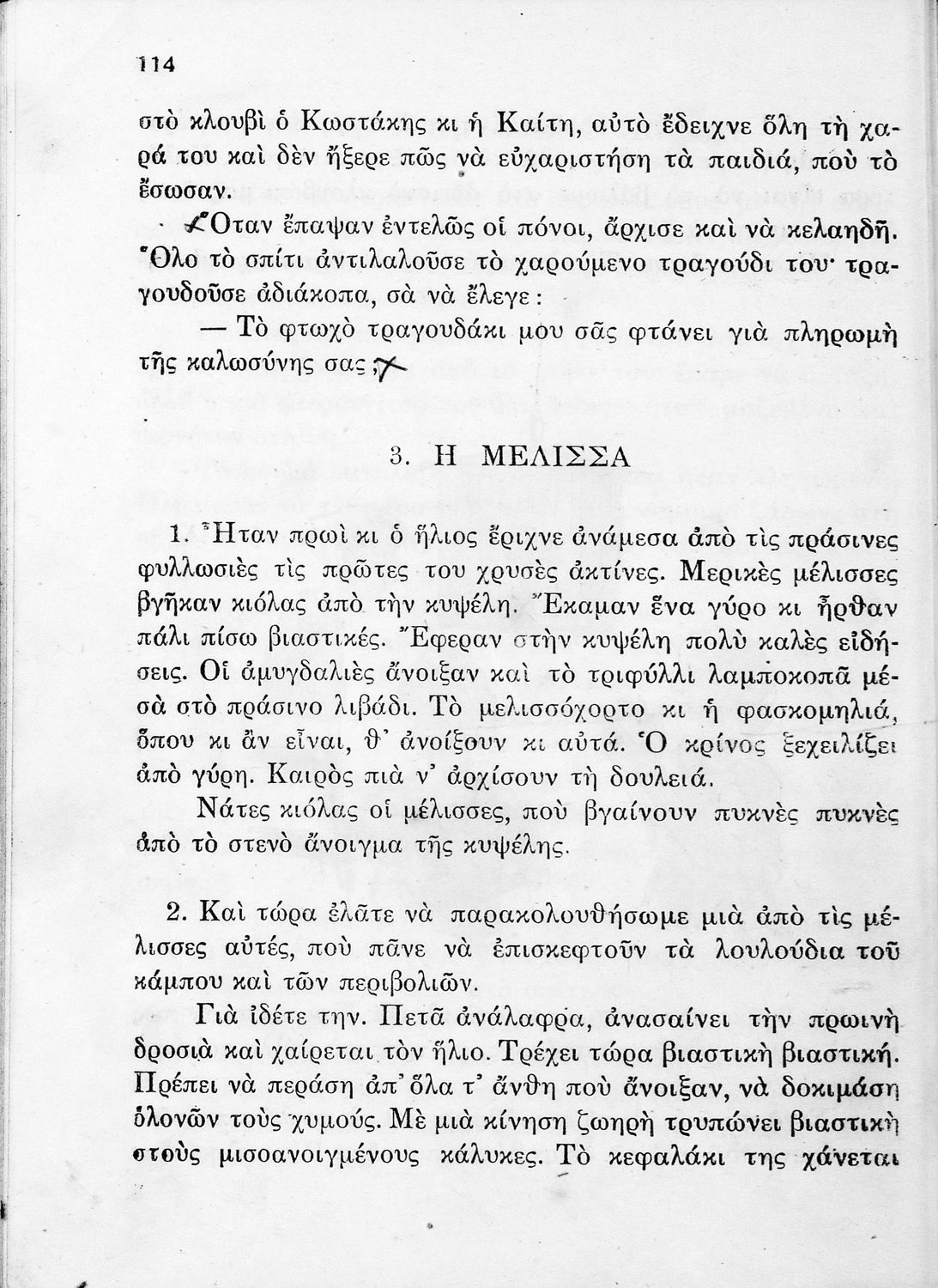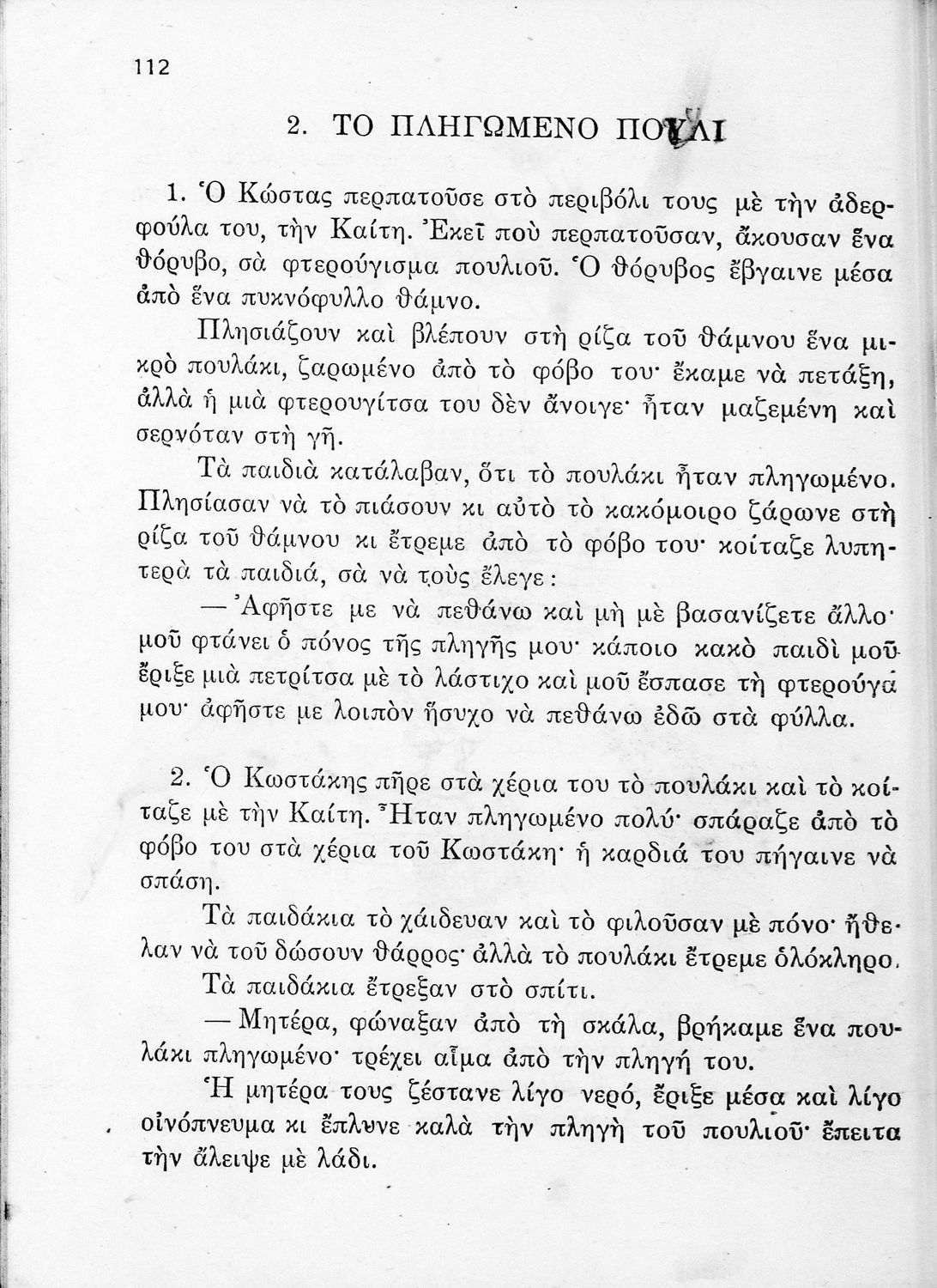 Αναγνωστικό Δ΄ Δημοτικού που περιέχει πεζά και ποιήματα με περιεχόμενο διδακτικό και ηθικοπλαστικό εμπνευσμένα από την ελληνική ιστορία και μυθολογία, και την αγροτική και κοινωνική ζωή.
