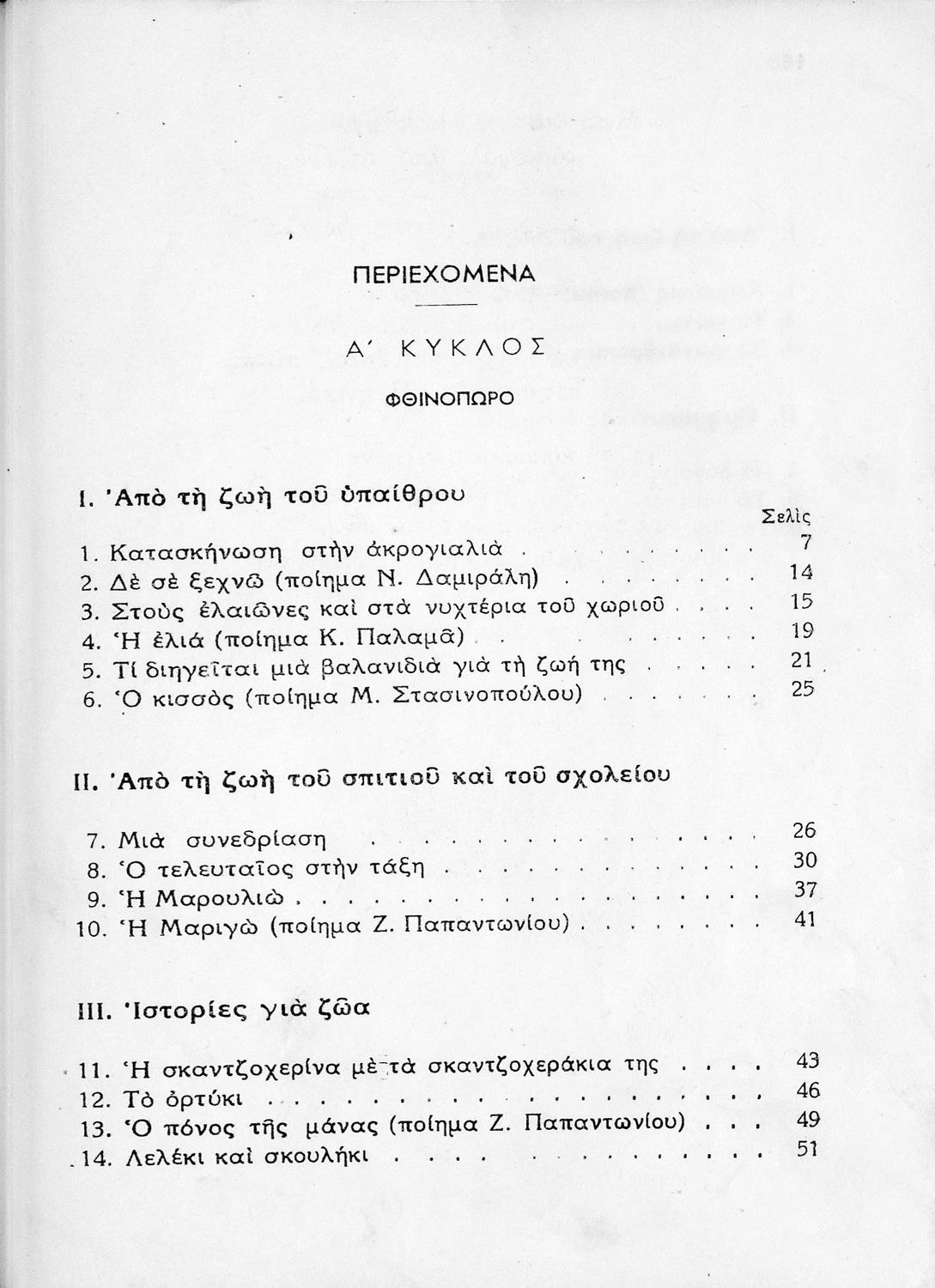 Αναγνωστικό Δ' Δημοτικού που είναι χωρισμένο σύμφωνα με τις εποχές του χρόνου και περιλαμβάνει ποιήματα και πεζά εμπνευσμένα από τη ζωή στην ύπαιθρο, την εθνική, οικογενειακή και κοινωνική ζωή, τη θρησκευτική ...