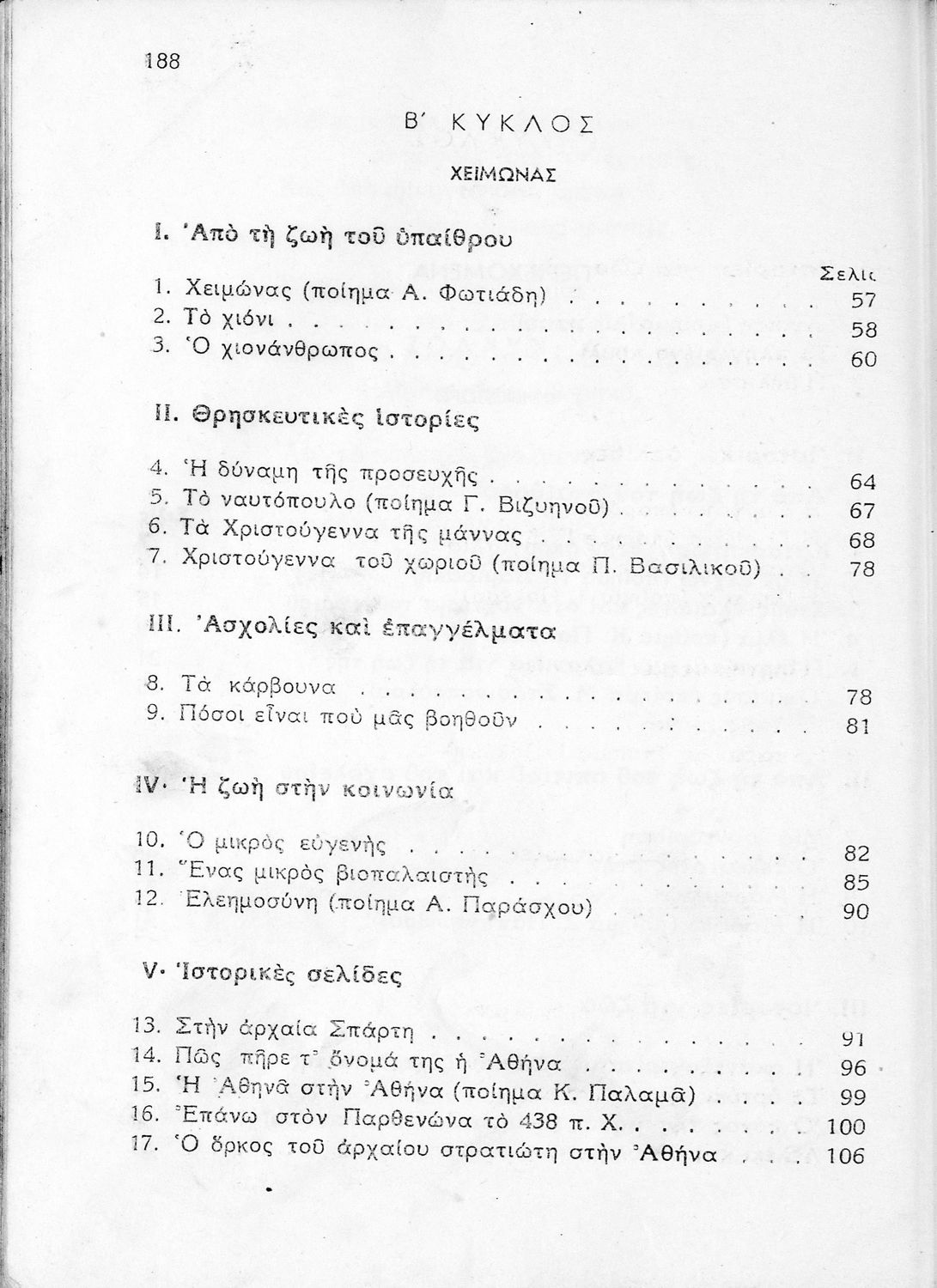 Αναγνωστικό Δ΄ Δημοτικού που περιέχει πεζά και ποιήματα με περιεχόμενο διδακτικό και ηθικοπλαστικό εμπνευσμένα από την ελληνική ιστορία και μυθολογία, και την αγροτική και κοινωνική ζωή.