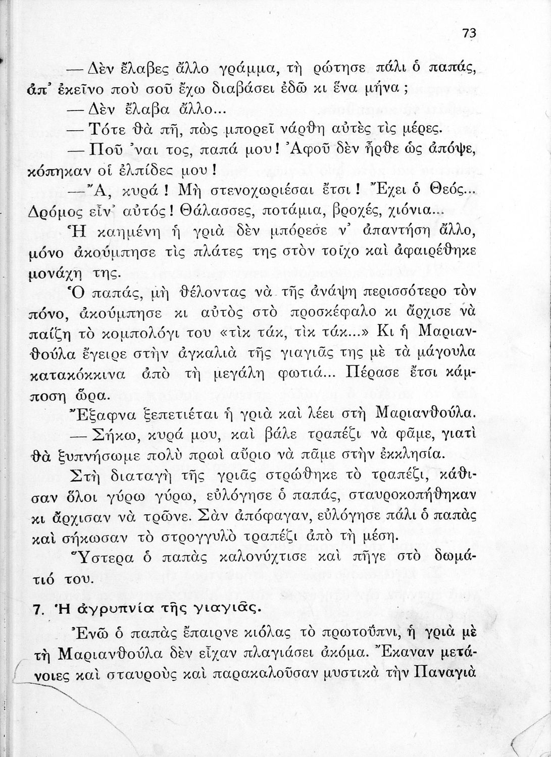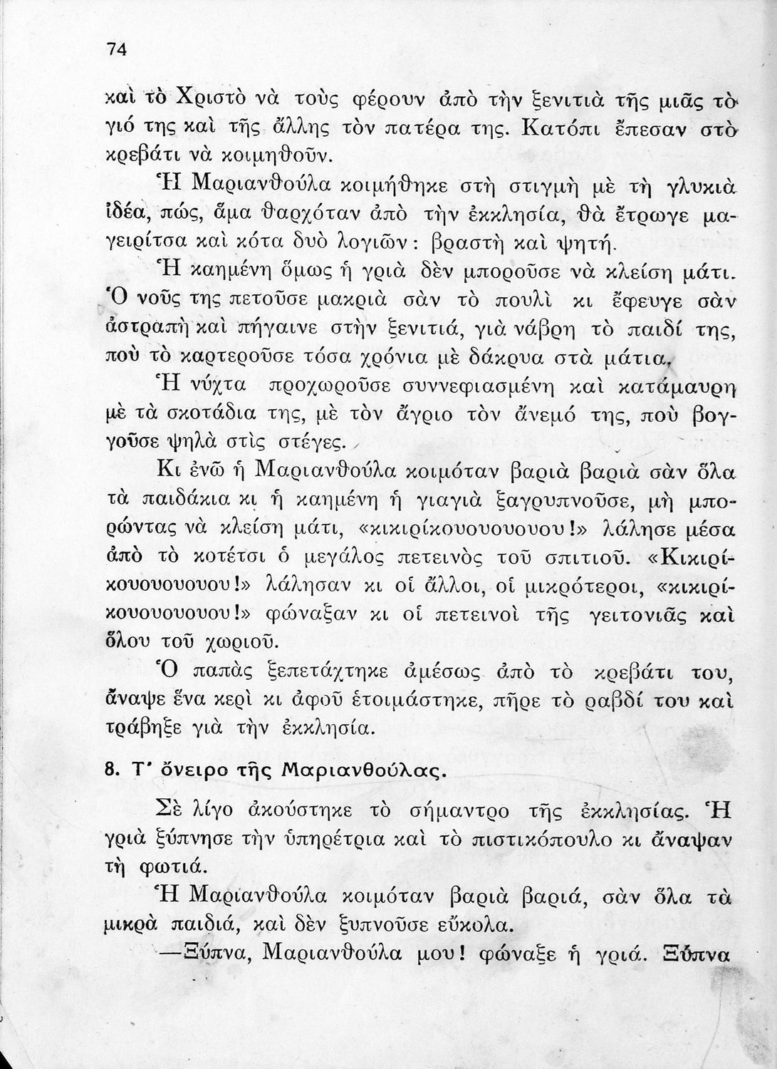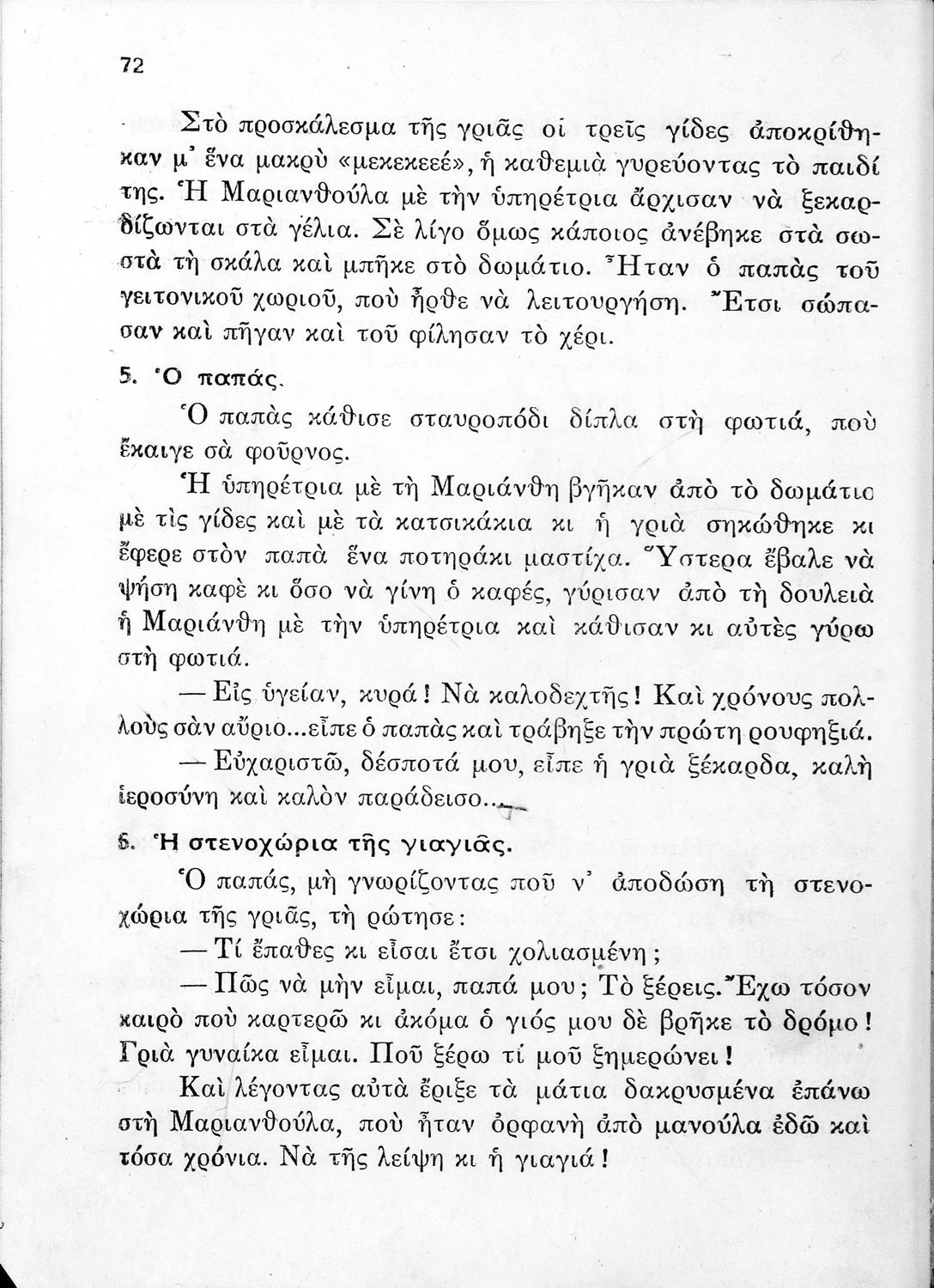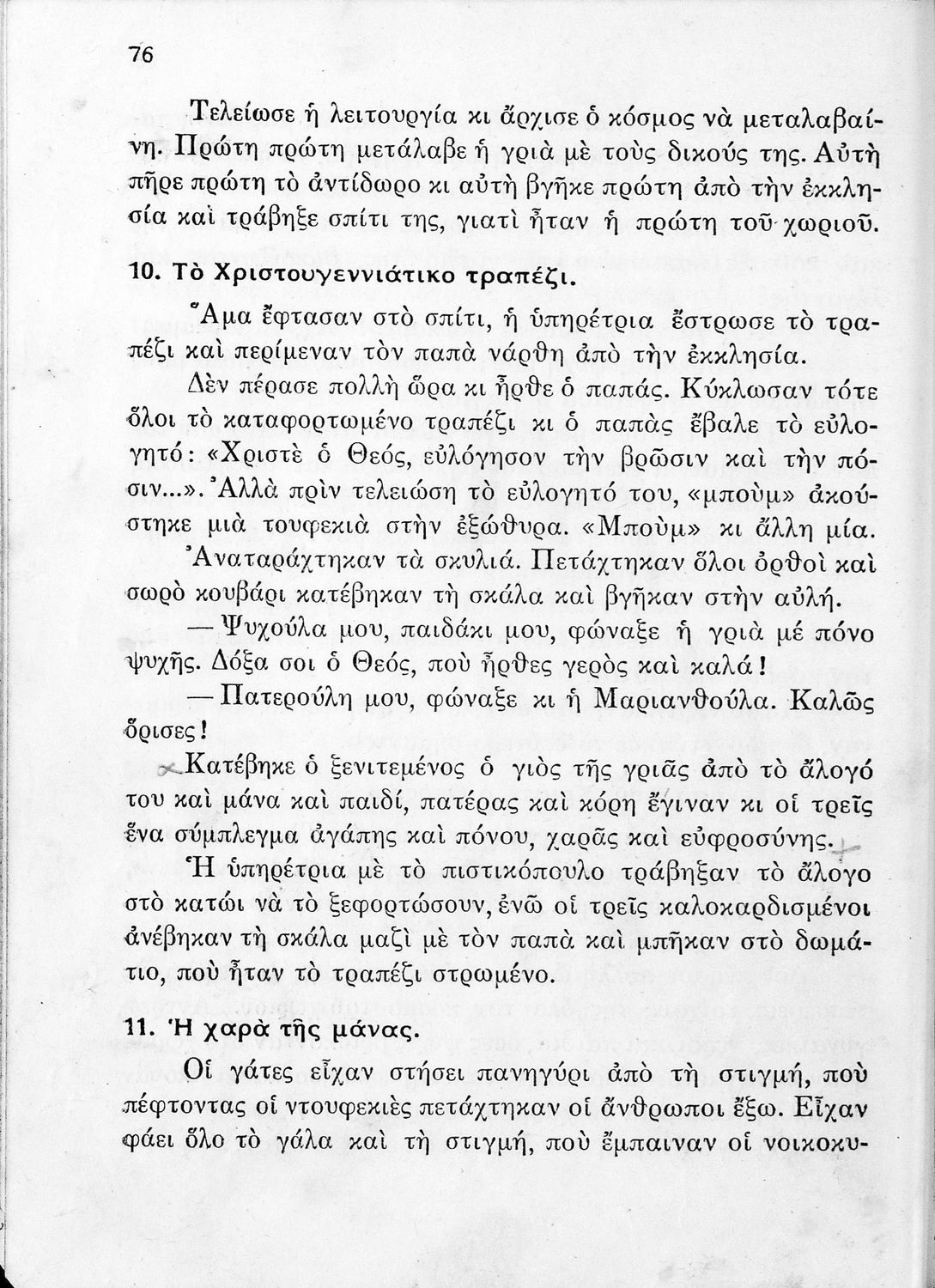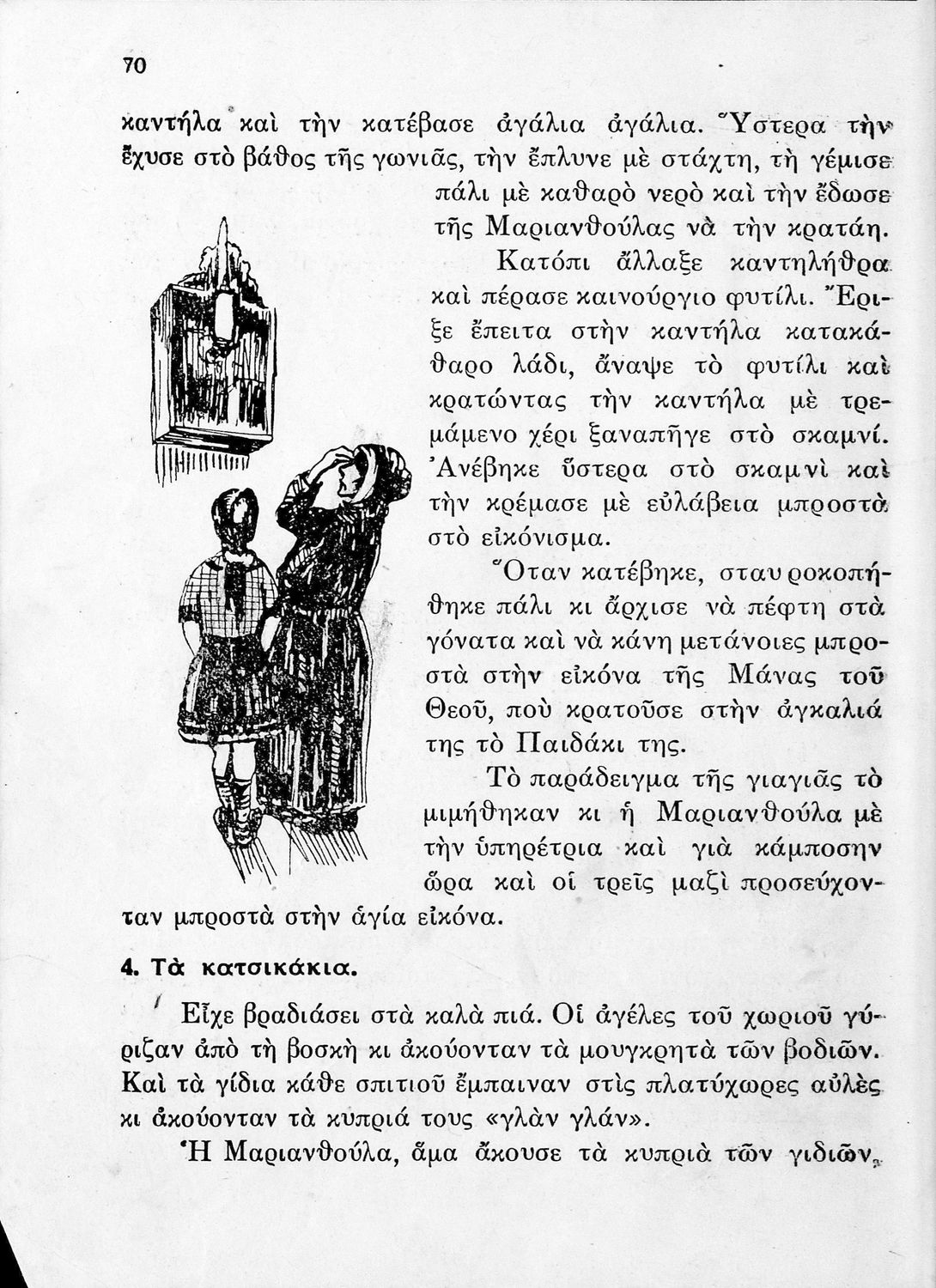 Αναγνωστικό Δ΄ Δημοτικού που περιέχει πεζά και ποιήματα με περιεχόμενο διδακτικό και ηθικοπλαστικό εμπνευσμένα από την ελληνική ιστορία και μυθολογία, και την αγροτική και κοινωνική ζωή.