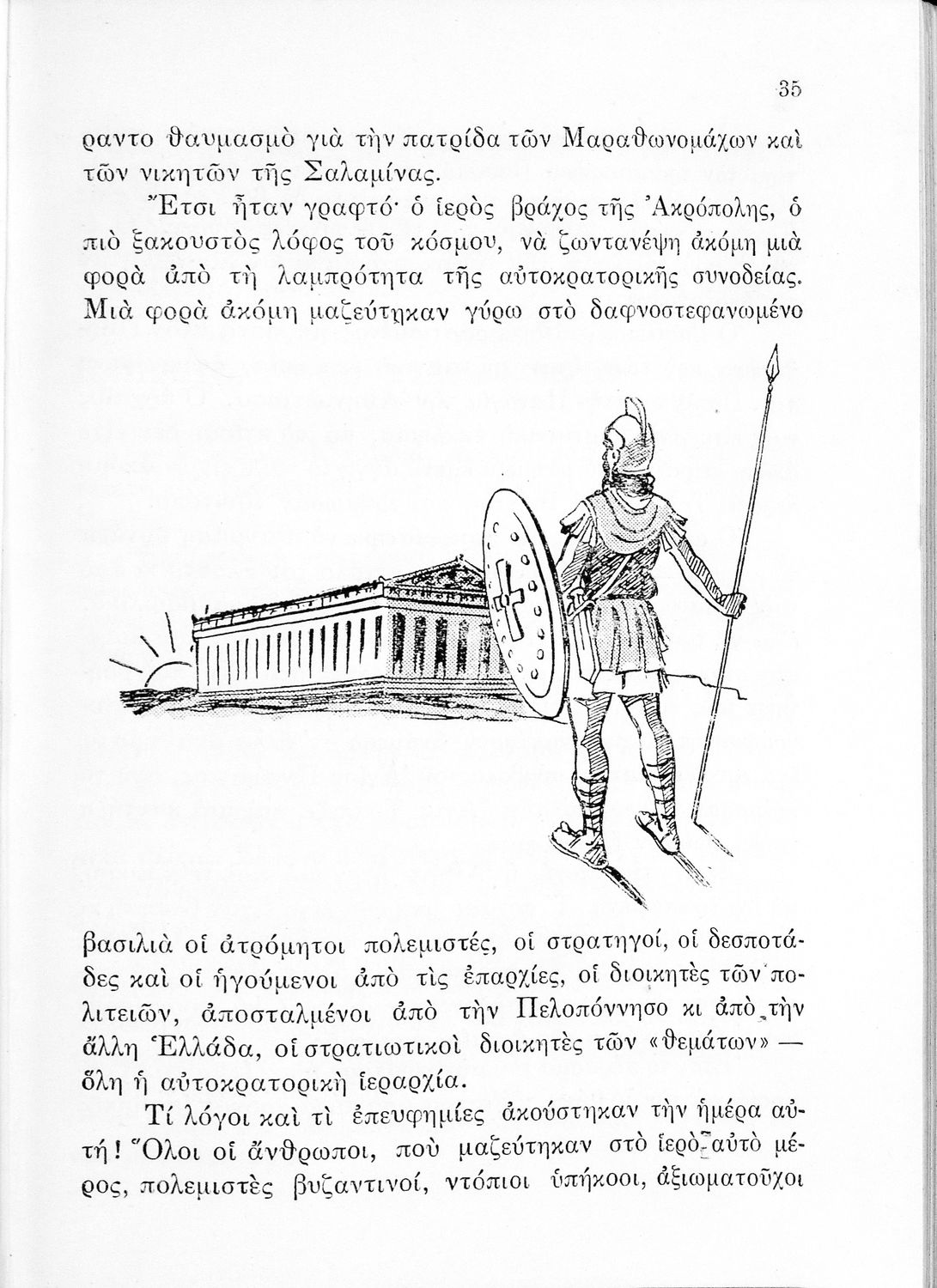 Αναγνωστικό Ε΄ Δημοτικού που περιέχει κείμενα εμπνευσμένα από την εθνική, κοινωνική και οικογενειακή ζωή και την ελληνική φύση, μυθολογία και ιστορία. Φέρει το σύμβολο της δικτατορίας.