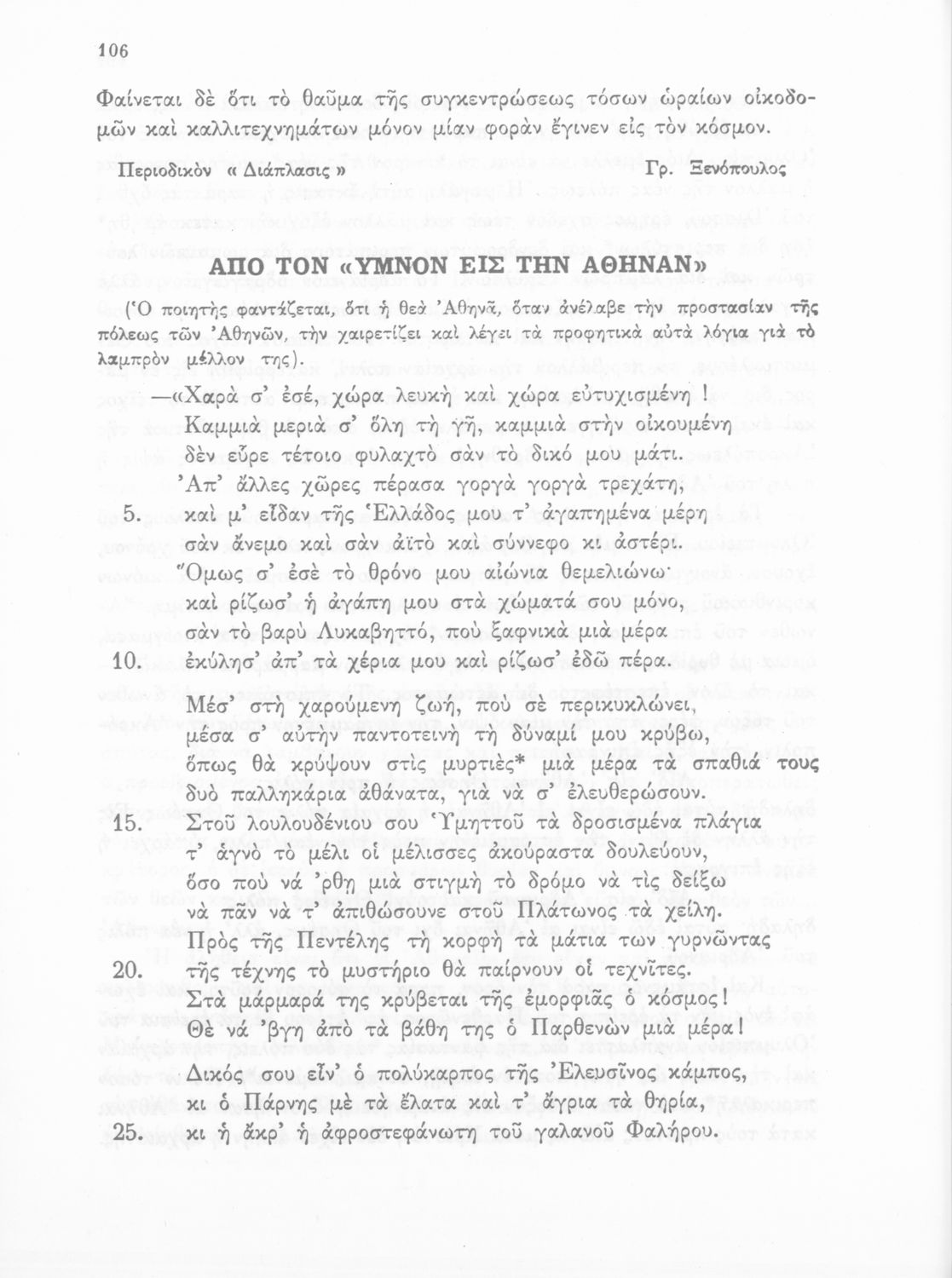 Σχολικό εγχειρίδιο Νέων Ελληνικών Γ΄ Γυμνασίου που περιέχει ποιήματα και πεζά Ελλήνων συγγραφέων εμπνευσμένα από τη θρησκευτική, οικογενειακή και κοινωνική ζωή, την σύγχρονή ελληνική ιστορία και την ελληνική φύση. Περιέχει παράρτημα με βιογραφίες των συγγραφέων και λεξιλόγιο.