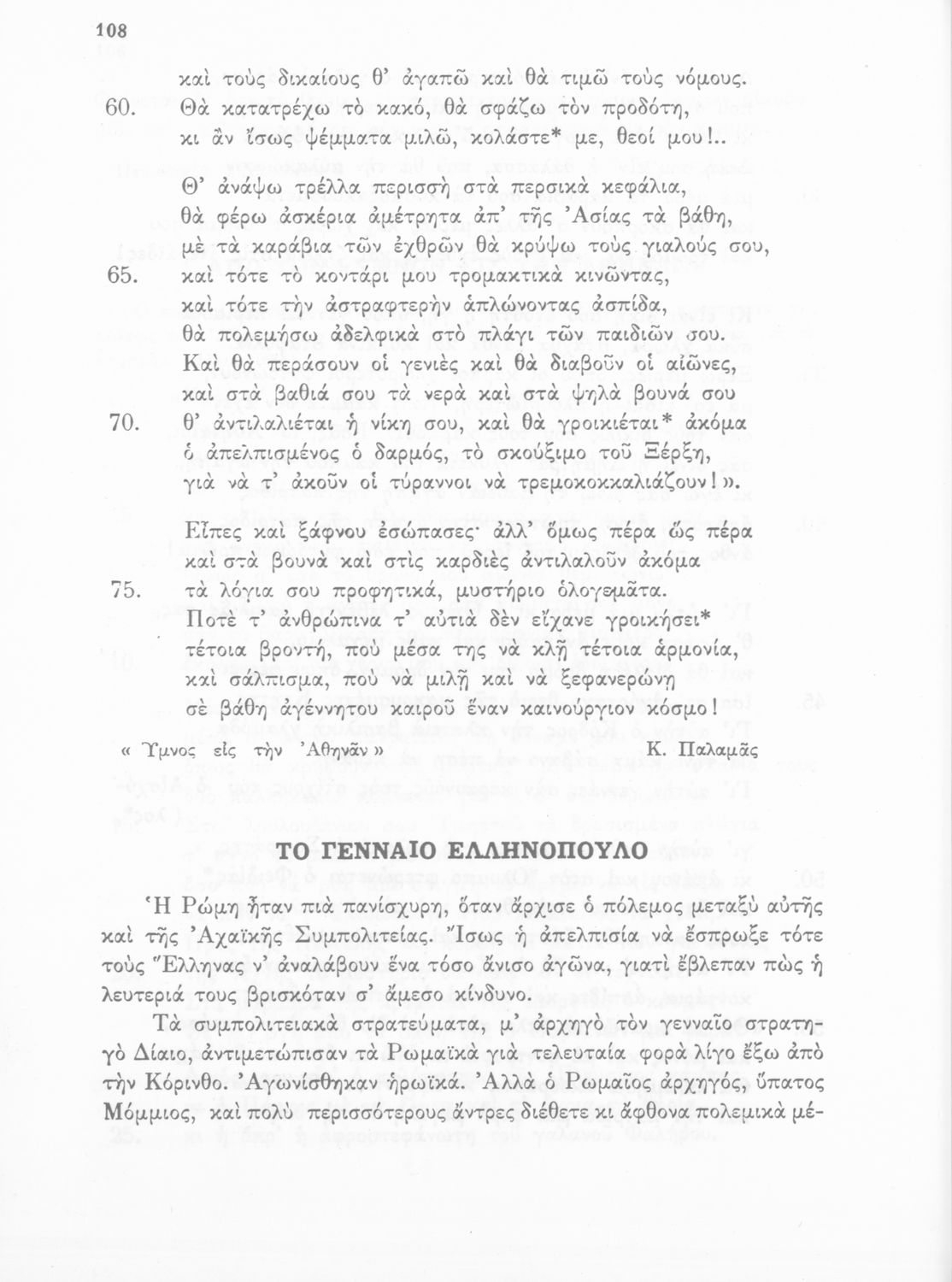 Σχολικό εγχειρίδιο Νέων Ελληνικών Γ΄ Γυμνασίου και Α' Αστικού Σχολείου που περιέχει πεζά και ποιήματα Ελλήνων συγγραφέων εμπνευσμένα από τη θρησκευτική και κοινωνική ζωή, την ελληνική μυθολογία, την αρχαία και