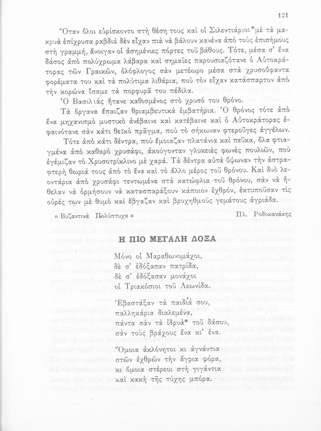 Σχολικό εγχειρίδιο Νέων Ελληνικών Γ΄ Γυμνασίου που περιέχει πεζά και ποιήματα Ελλήνων συγγραφέων εμπνευσμένα από την αρχαία και σύγχρονη ελληνική ιστορία, τη βυζαντινή ιστορία, τη θρησκευτική παράδοση και την ...