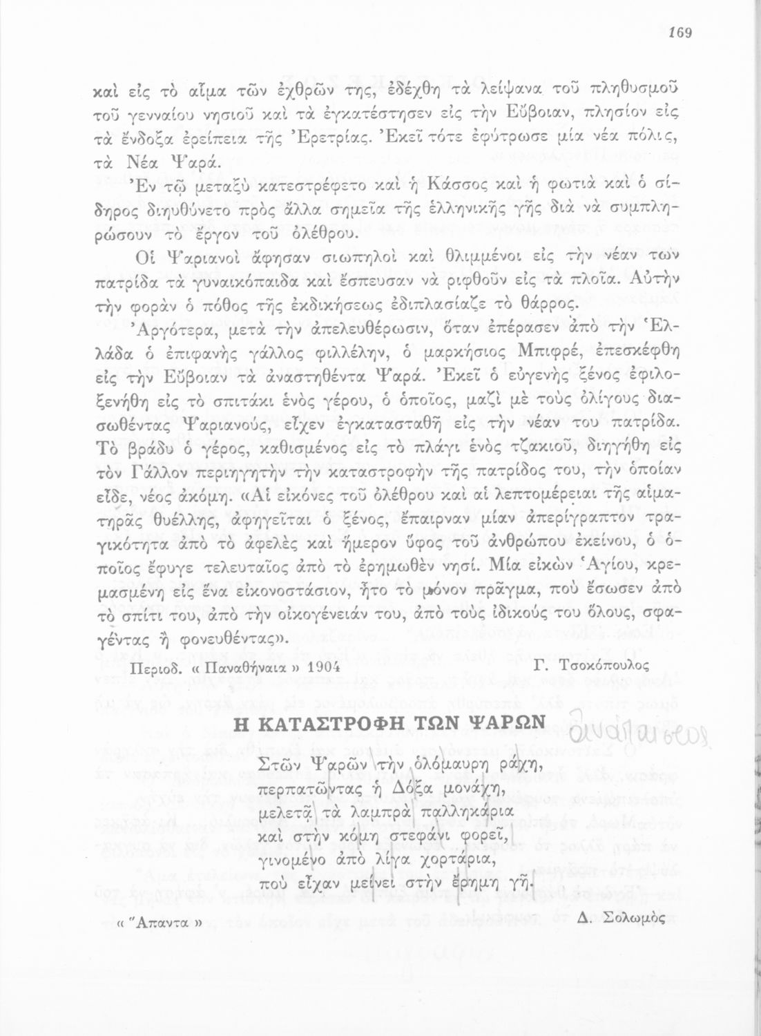 Σχετιζόμενοι όροι:  Παλαμάς, Σολωμός, Βιζυηνός, Δροσίνης