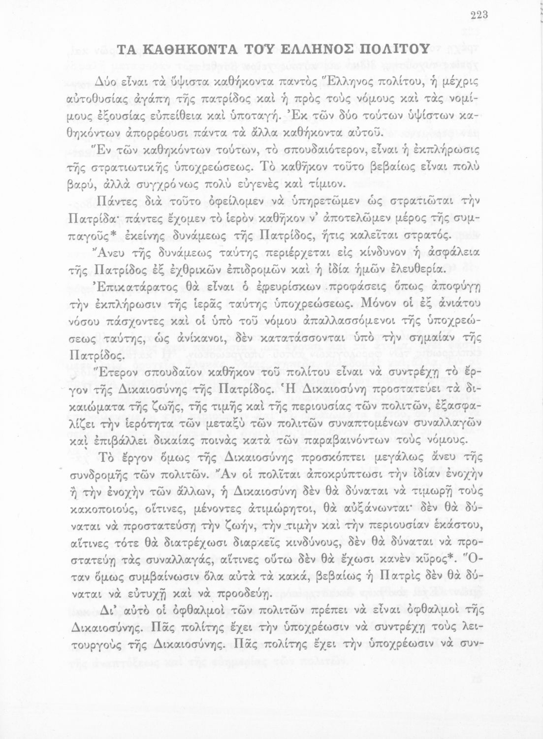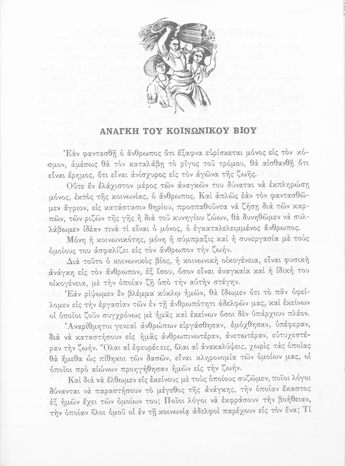 Σχολικό εγχειρίδιο Νέων Ελληνικών Γ΄ Γυμνασίου και Α' Αστικού Σχολείου που περιέχει πεζά και ποιήματα Ελλήνων συγγραφέων εμπνευσμένα από τη θρησκευτική και κοινωνική ζωή, την ελληνική μυθολογία, την αρχαία και
