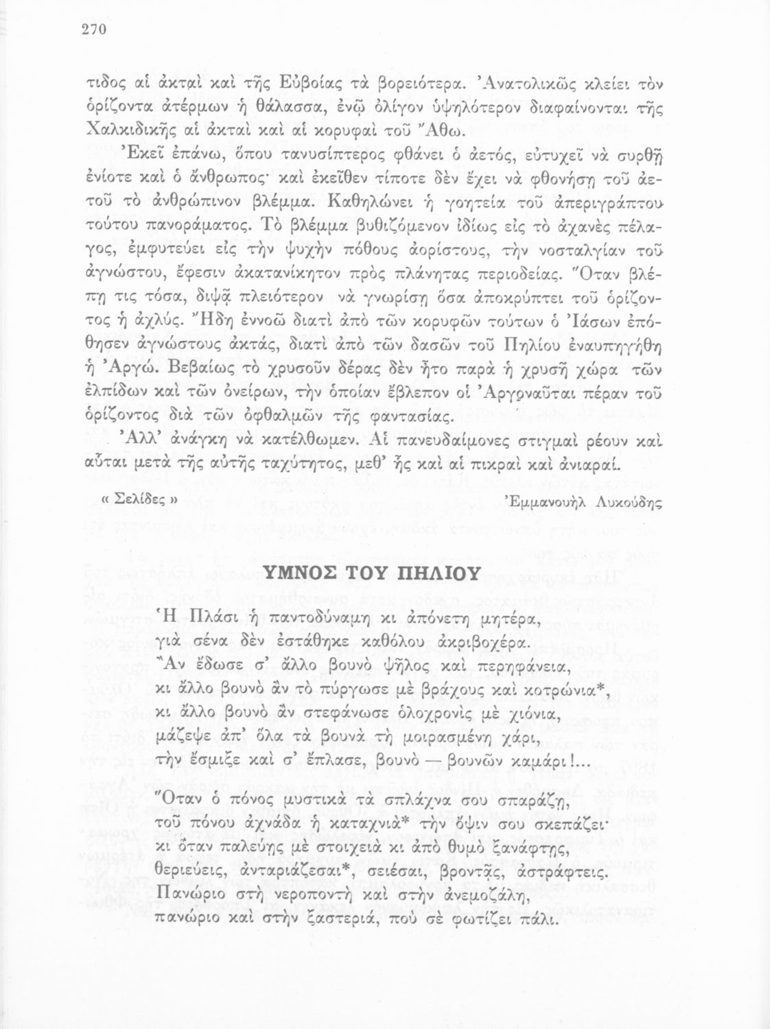 Σχολικό εγχειρίδιο Νέων Ελληνικών Γ΄ Γυμνασίου που περιέχει ποιήματα και πεζά Ελλήνων συγγραφέων εμπνευσμένα από τη θρησκευτική, οικογενειακή και κοινωνική ζωή, την σύγχρονή ελληνική ιστορία και την ελληνική φύση. Περιέχει παράρτημα με βιογραφίες των συγγραφέων και λεξιλόγιο.