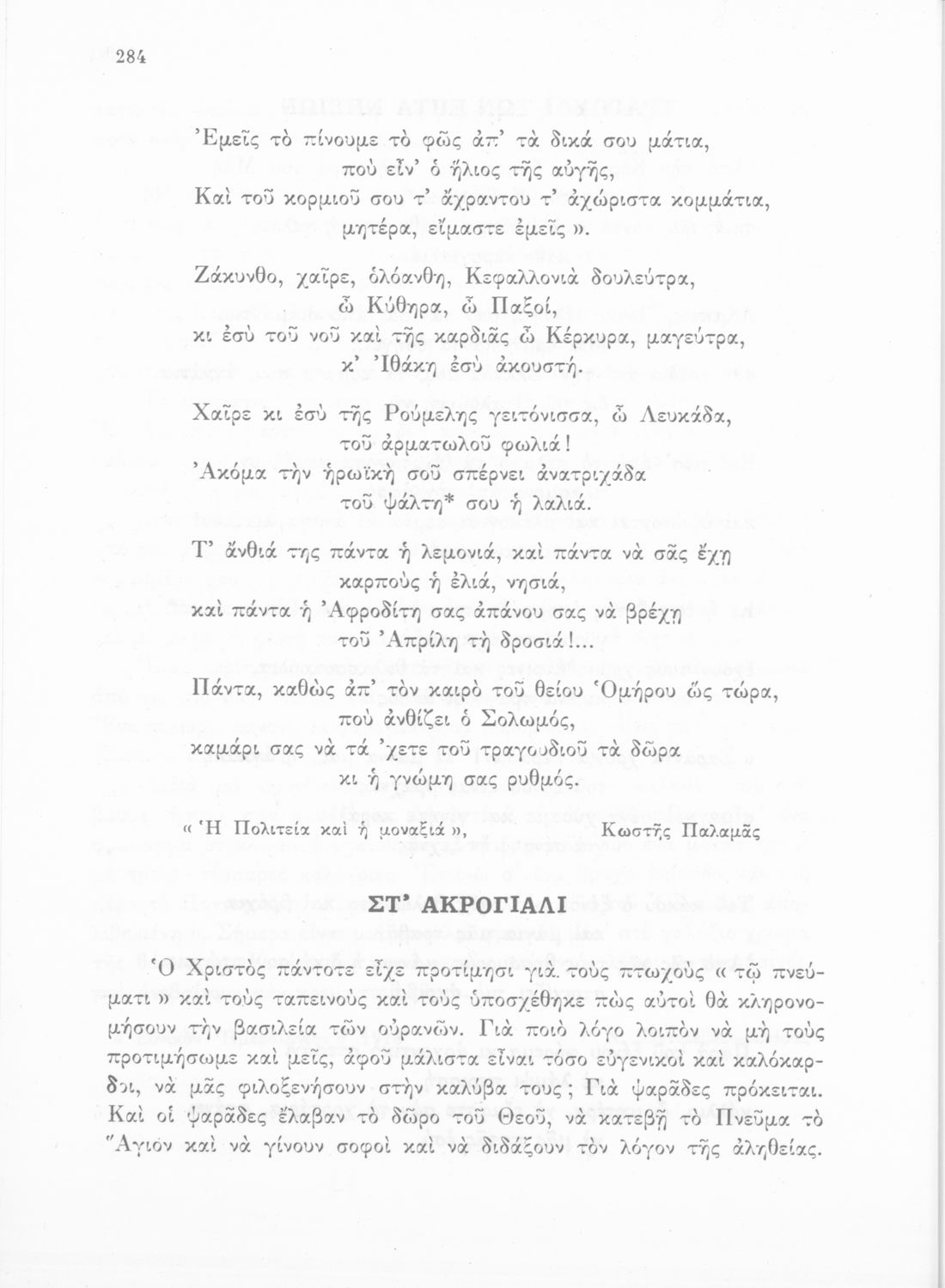 Σχολικό εγχειρίδιο Νέων Ελληνικών Γ΄ Γυμνασίου και Α' Αστικού Σχολείου που περιέχει πεζά και ποιήματα Ελλήνων συγγραφέων εμπνευσμένα από τη θρησκευτική και κοινωνική ζωή, την ελληνική μυθολογία, την αρχαία και