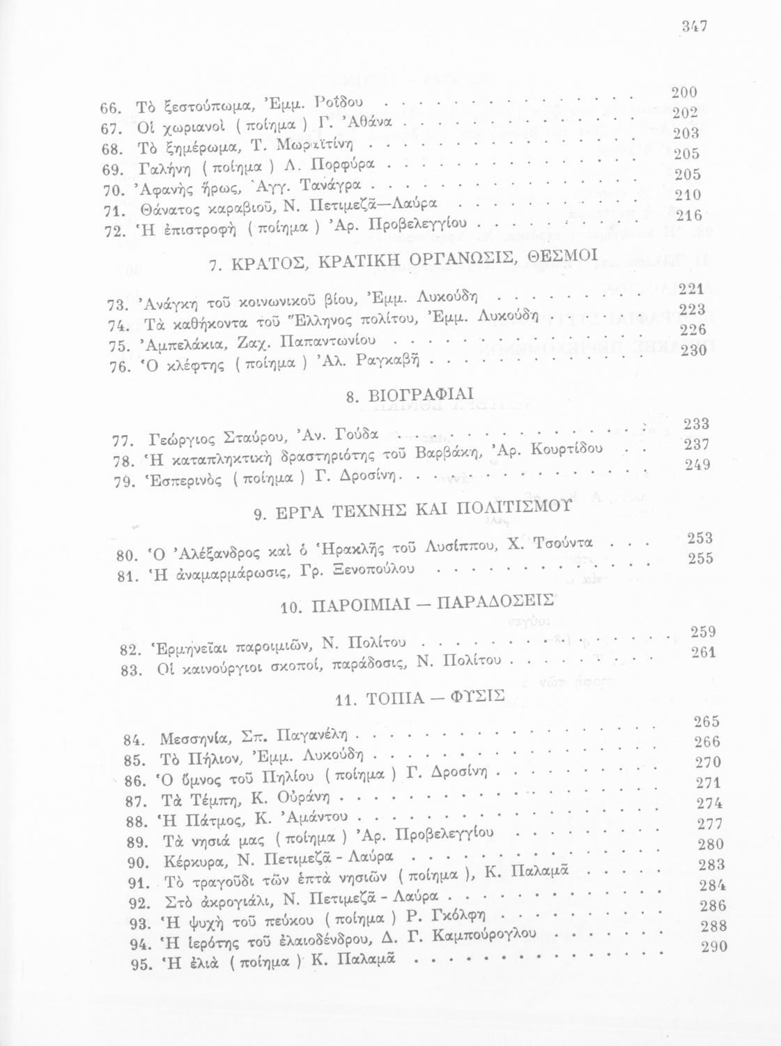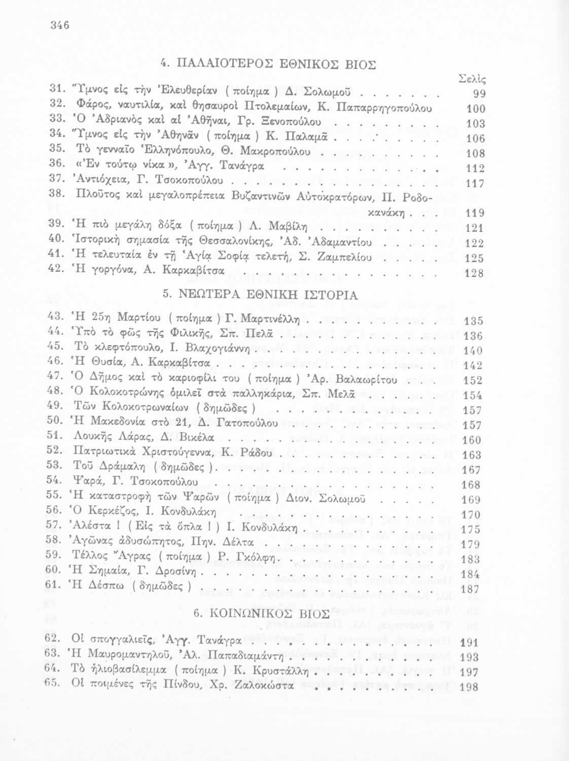 Σχολικό εγχειρίδιο Νέων Ελληνικών Γ΄ Γυμνασίου και Α' Αστικού Σχολείου που περιέχει πεζά και ποιήματα Ελλήνων συγγραφέων εμπνευσμένα από τη θρησκευτική και κοινωνική ζωή, την ελληνική μυθολογία, την αρχαία και
