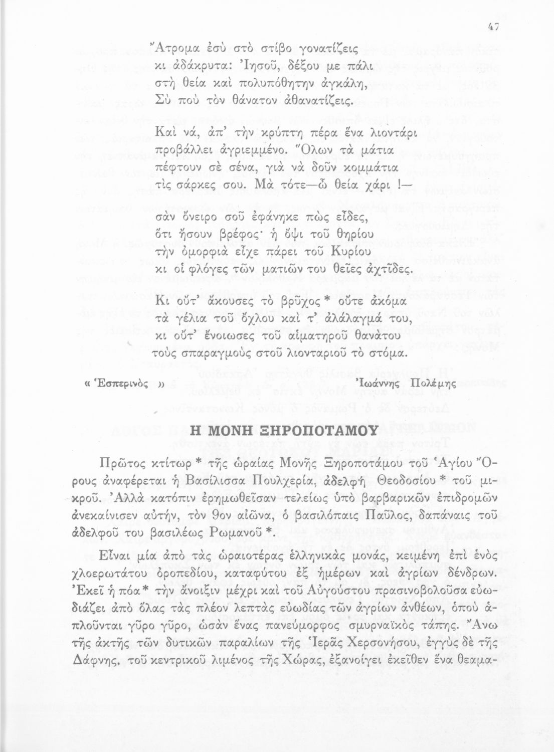 Σχολικό εγχειρίδιο Νέων Ελληνικών Γ΄ Γυμνασίου που περιέχει ποιήματα και πεζά Ελλήνων συγγραφέων εμπνευσμένα από τη θρησκευτική, οικογενειακή και κοινωνική ζωή, την σύγχρονή ελληνική ιστορία και την ελληνική φύση. Περιέχει παράρτημα με βιογραφίες των συγγραφέων και λεξιλόγιο.
