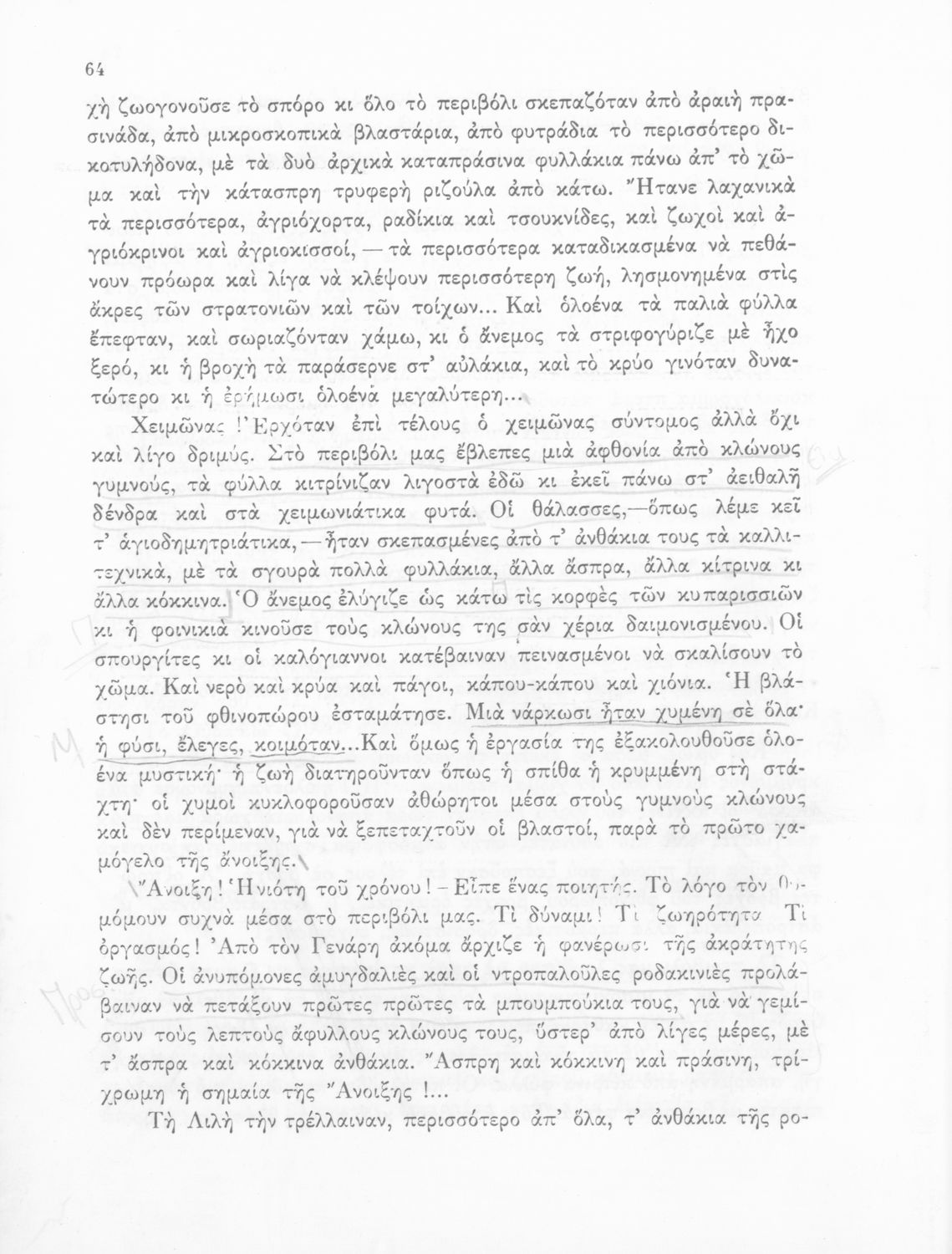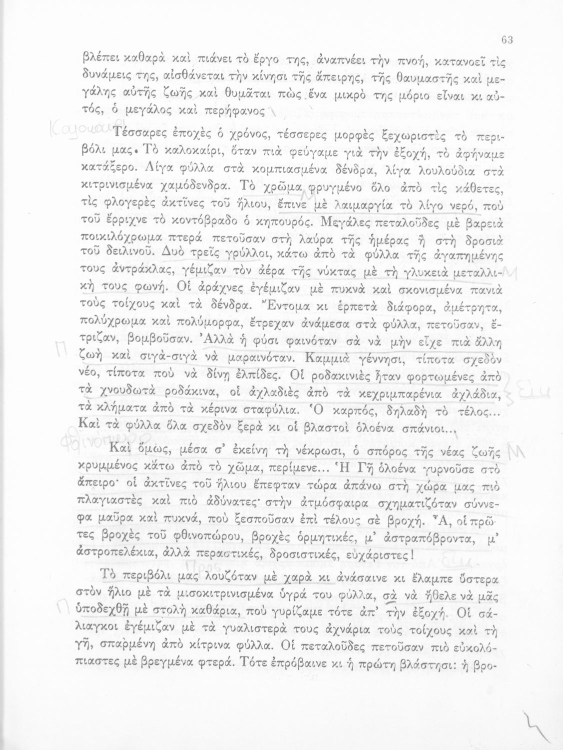 Σχολικό εγχειρίδιο Νέων Ελληνικών Γ΄ Γυμνασίου που περιέχει ποιήματα και πεζά Ελλήνων συγγραφέων εμπνευσμένα από τη θρησκευτική, οικογενειακή και κοινωνική ζωή, την σύγχρονή ελληνική ιστορία και την ελληνική φύση. Περιέχει παράρτημα με βιογραφίες των συγγραφέων και λεξιλόγιο.