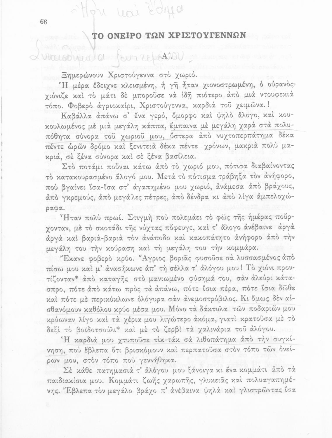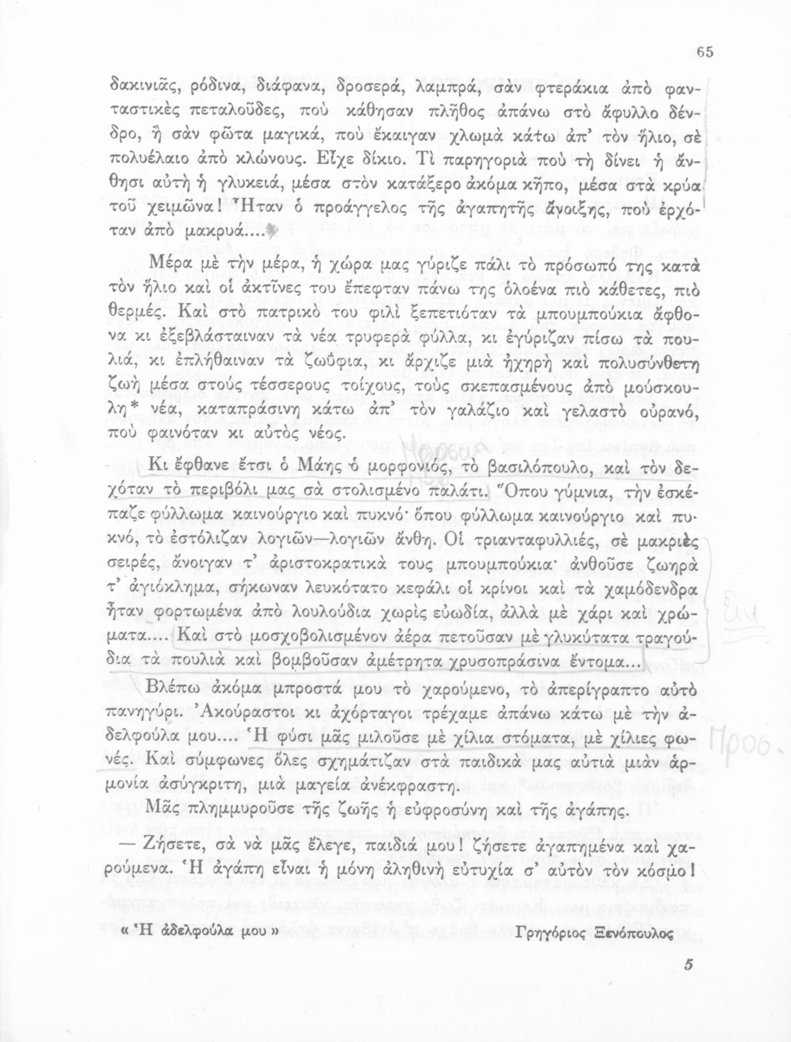 Σχολικό εγχειρίδιο Νέων Ελληνικών Γ΄ Γυμνασίου και Α' Αστικού Σχολείου που περιέχει πεζά και ποιήματα Ελλήνων συγγραφέων εμπνευσμένα από τη θρησκευτική και κοινωνική ζωή, την ελληνική μυθολογία, την αρχαία και