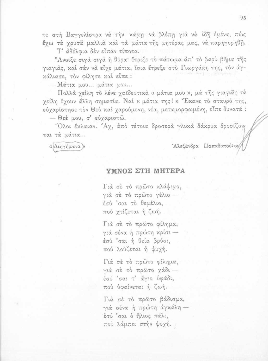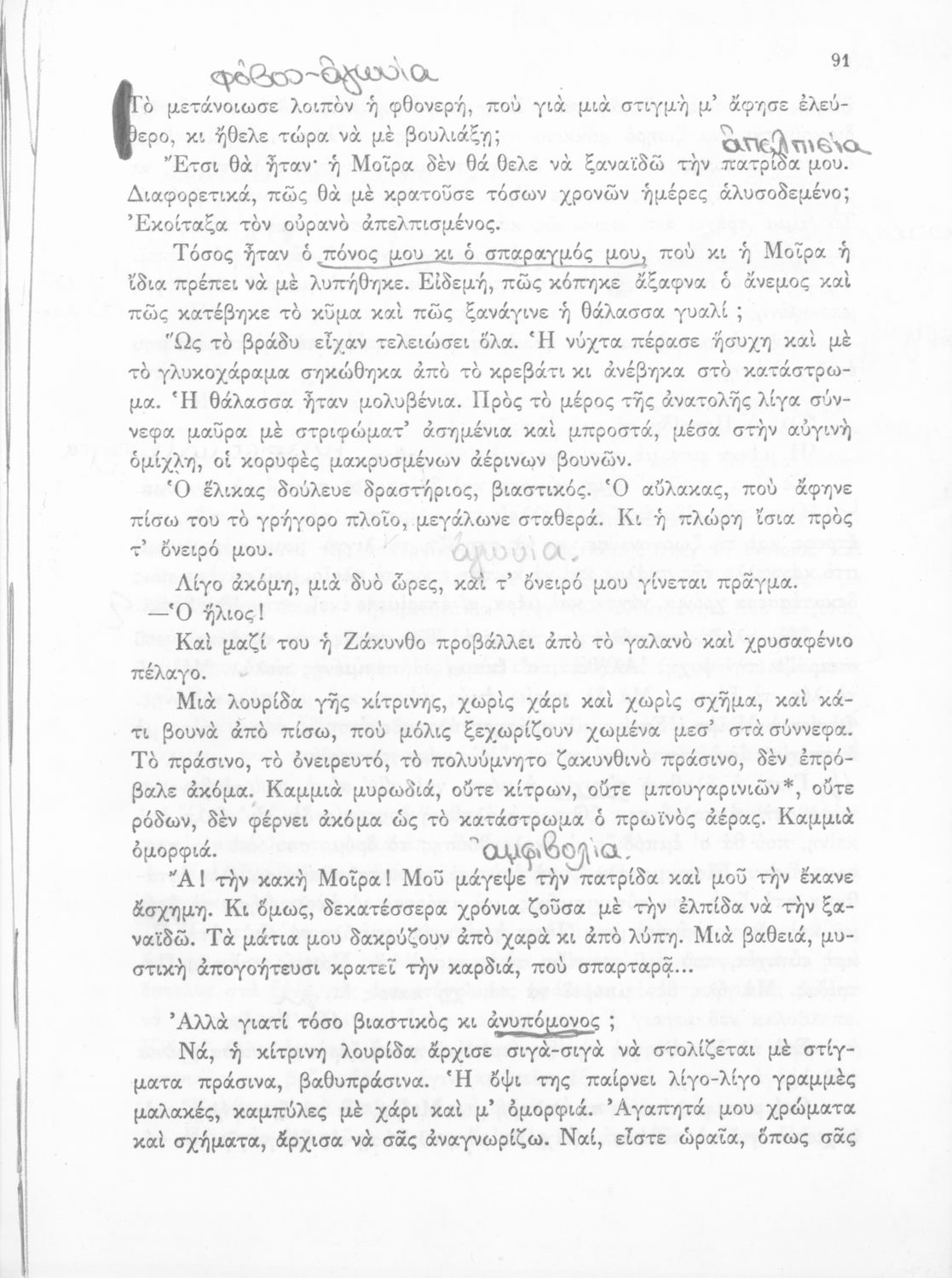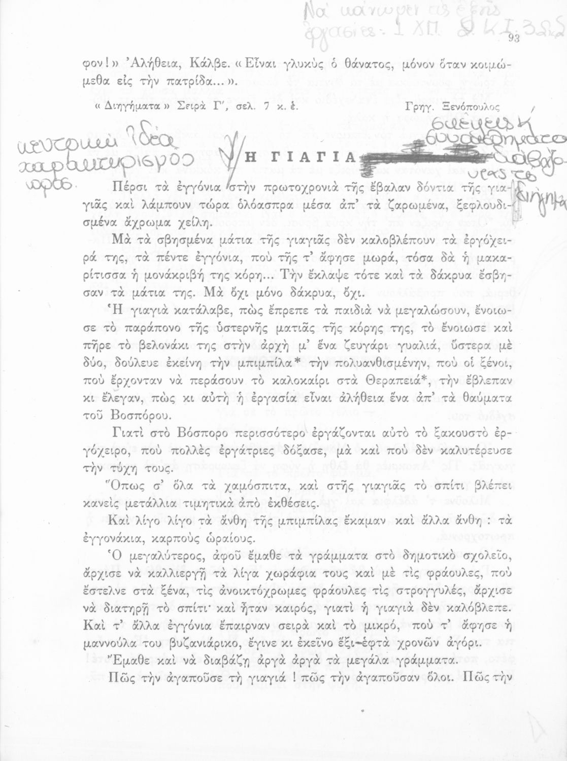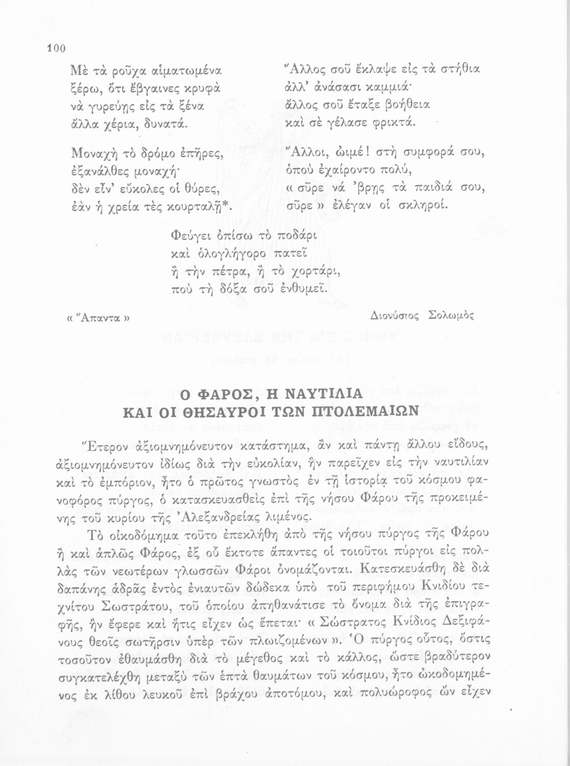 Σχολικό εγχειρίδιο Νέων Ελληνικών Γ΄ Γυμνασίου και Α' Αστικού Σχολείου που περιέχει πεζά και ποιήματα Ελλήνων συγγραφέων εμπνευσμένα από τη θρησκευτική και κοινωνική ζωή, την ελληνική μυθολογία, την αρχαία και