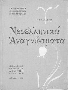 Βαθμίδα εκπαίδευσης: Δευτεροβάθμια Τάξη: Γ' Γυμνασίου Μάθημα: Νέα Ελληνικά Γλώσσα: Δημοτική Παρουσίαση περιεχομένου: Σχολικό εγχειρίδιο Νέων Ελληνικών Γ΄ Γυμνασίου που περιέχει ποιήματα και πεζά Ελλήνων συγγραφέων εμπνευσμένα από τη θρησκευτική, οικογενειακή και κοινωνική ζωή, την σύγχρονή ελληνική ιστορία και την ελληνική φύση. Περιέχει παράρτημα με βιογραφίες των συγγραφέων και λεξιλόγιο. |