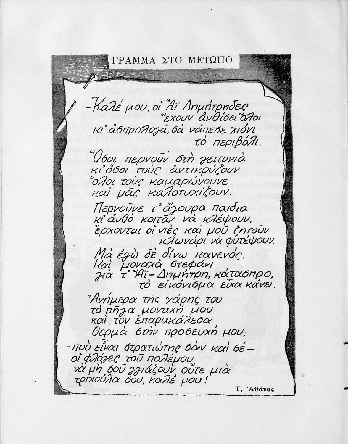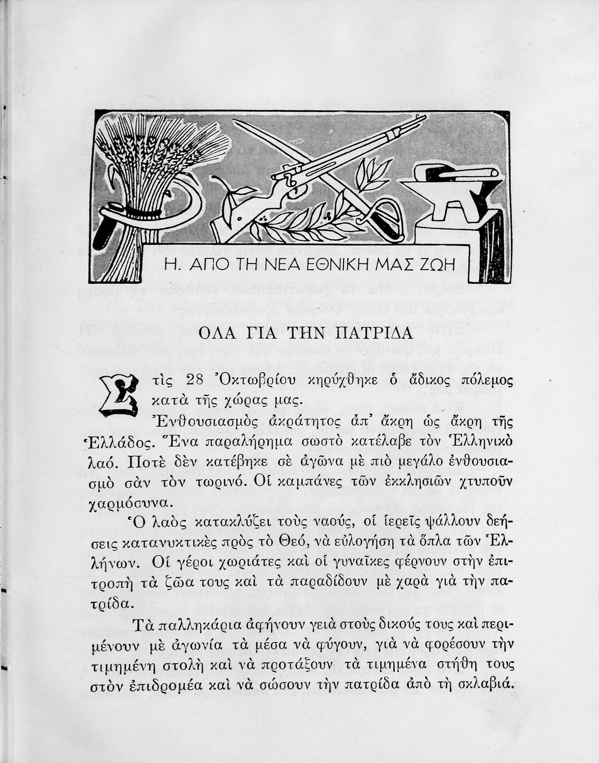 Αναγνωστικό Δ' Δημοτικού που περιλαμβάνει πεζά και ποιήματα Ελλήνων λογοτεχνών εμπνευσμένα από την ζωή στην ύπαιθρο, τις θρησκευτικές και εθνικές γιορτές και την οικογενειακή ζωή.