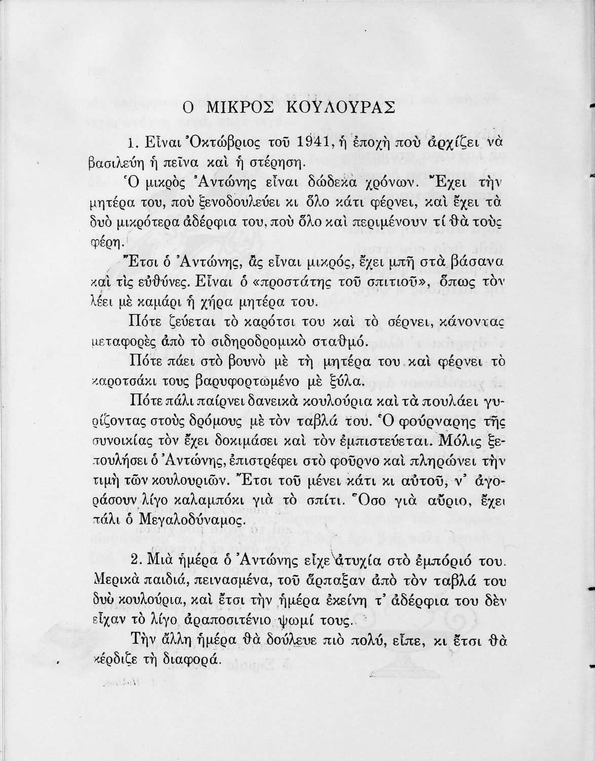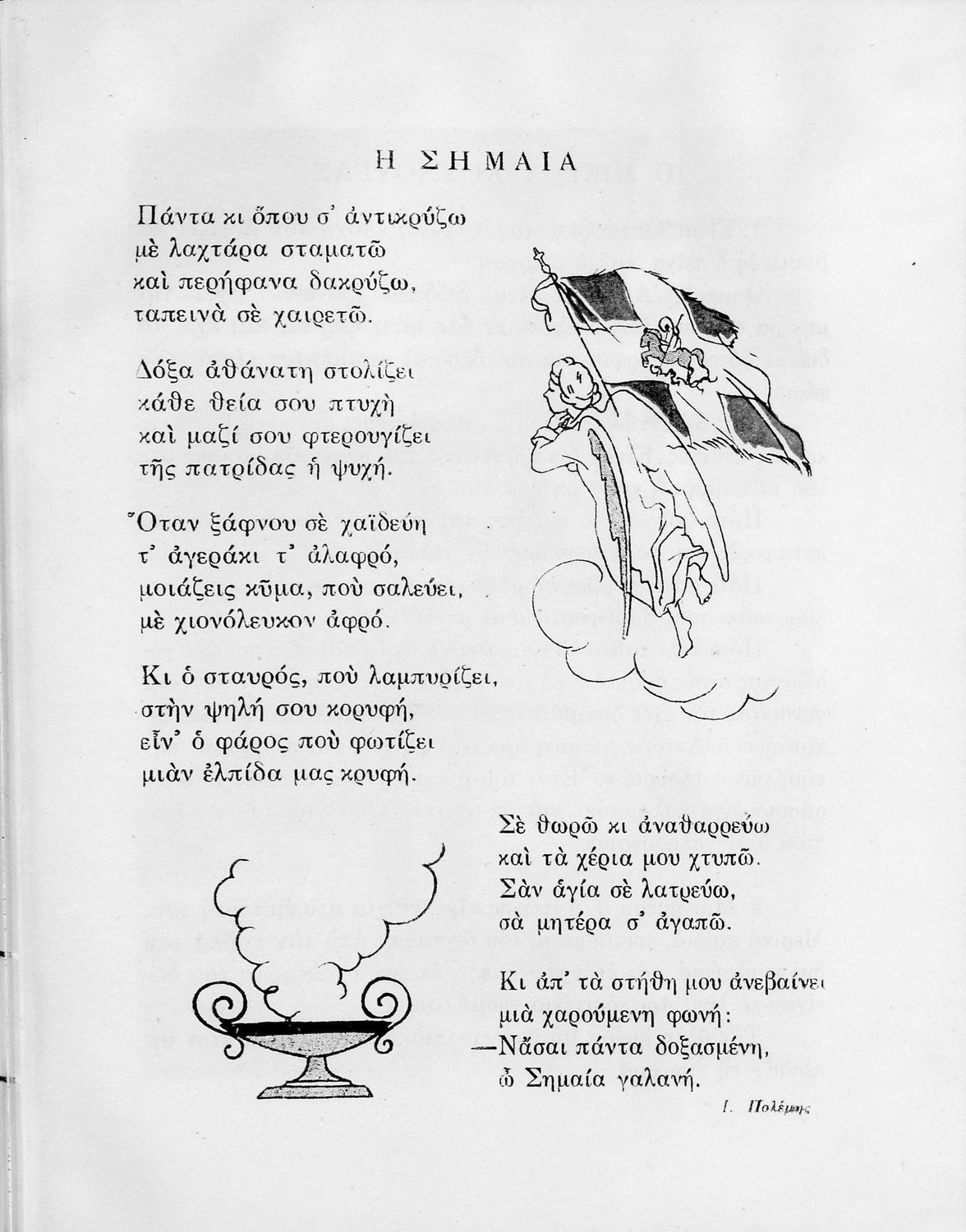 Αναγνωστικό για την Δ΄ τάξη του Δημοτικού. Περιλαμβάνει ένα κείμενο στο οποίο παρεμβάλλονται ποιήματα δημοτικά και Ελλήνων ποιητών.
