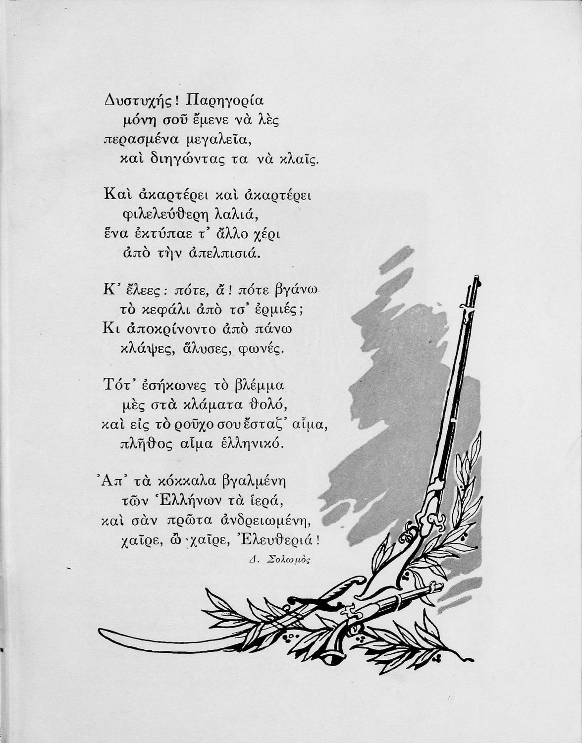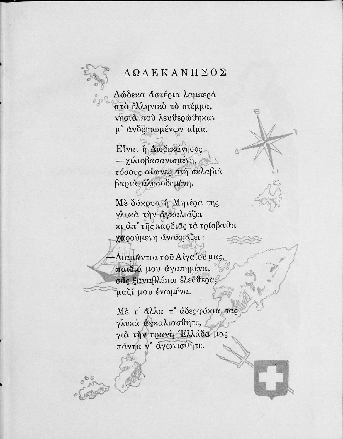 Αναγνωστικό για την Δ΄ τάξη του Δημοτικού. Περιλαμβάνει ένα κείμενο στο οποίο παρεμβάλλονται ποιήματα δημοτικά και Ελλήνων ποιητών.