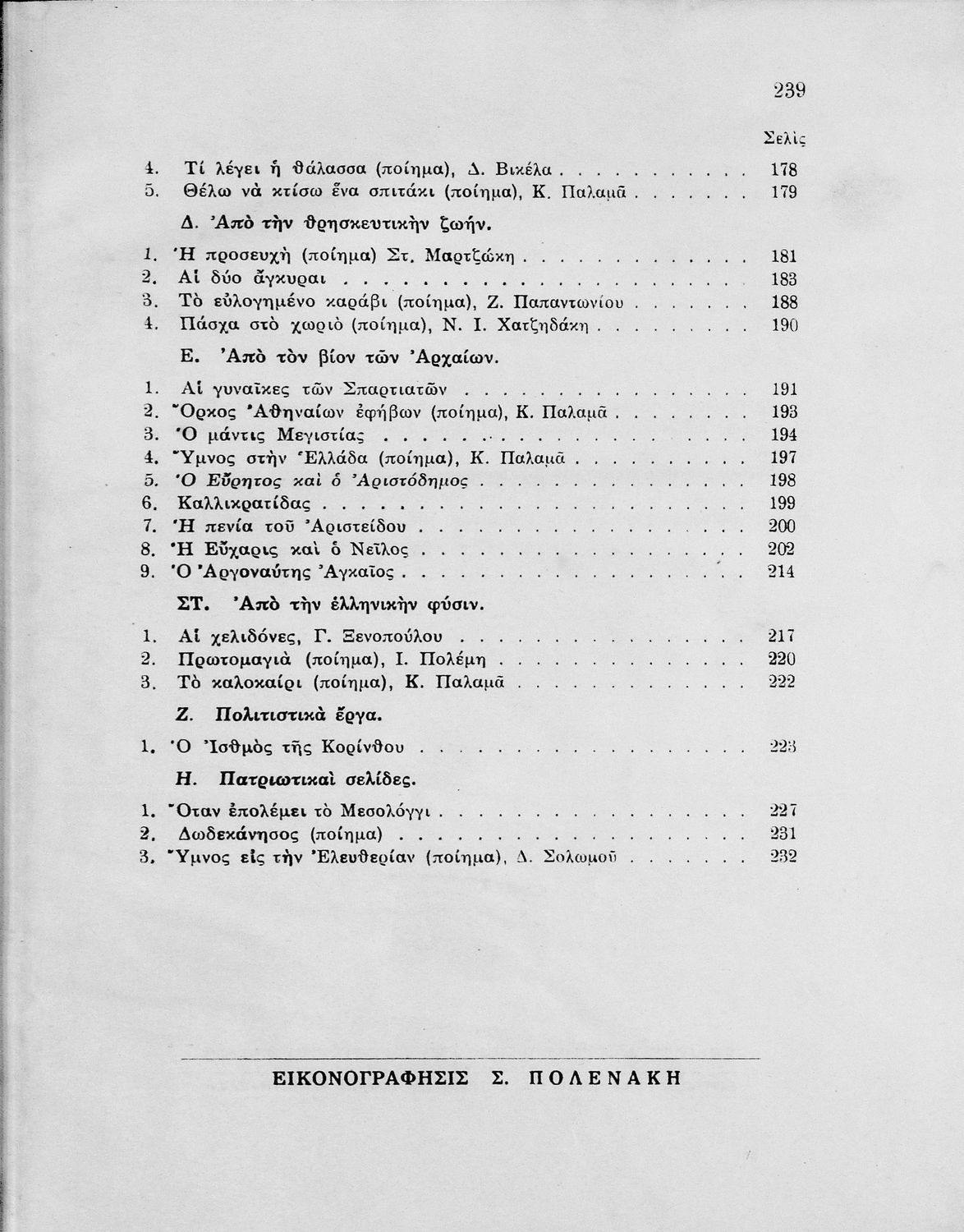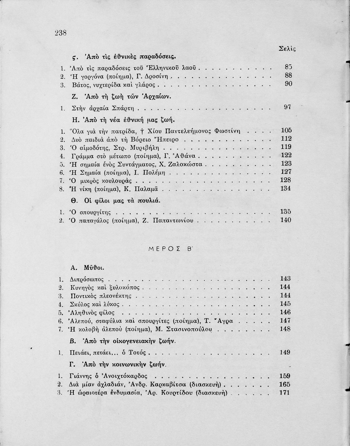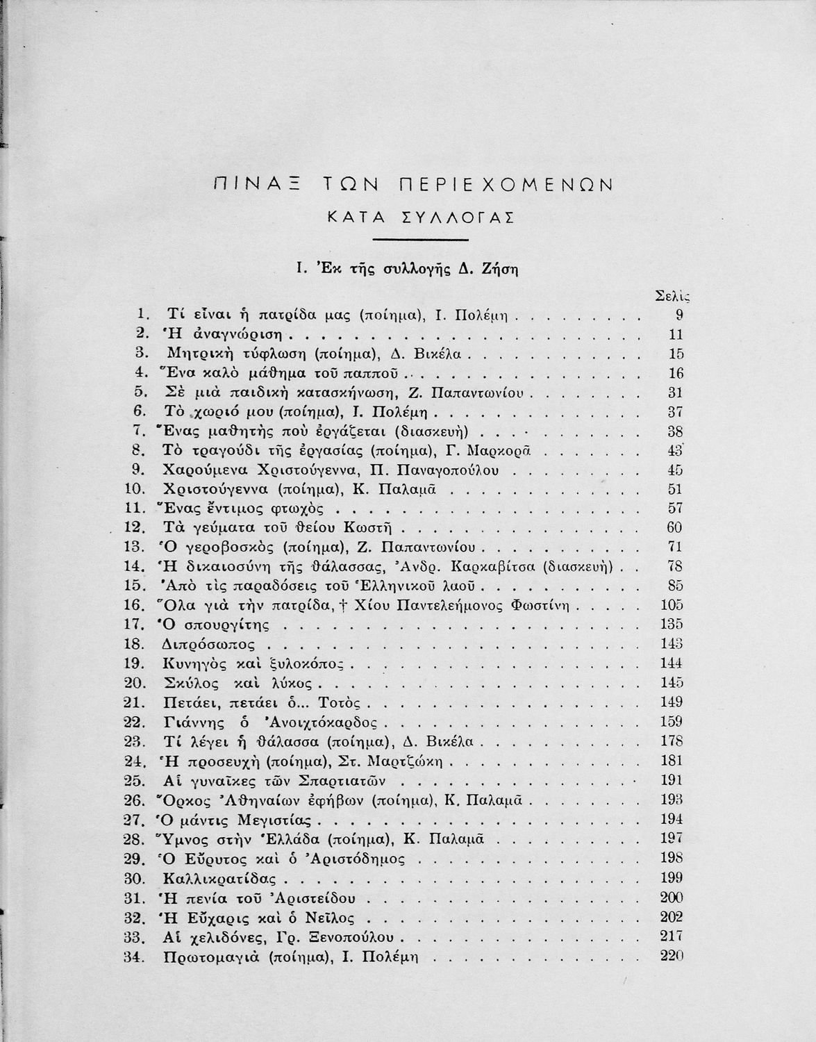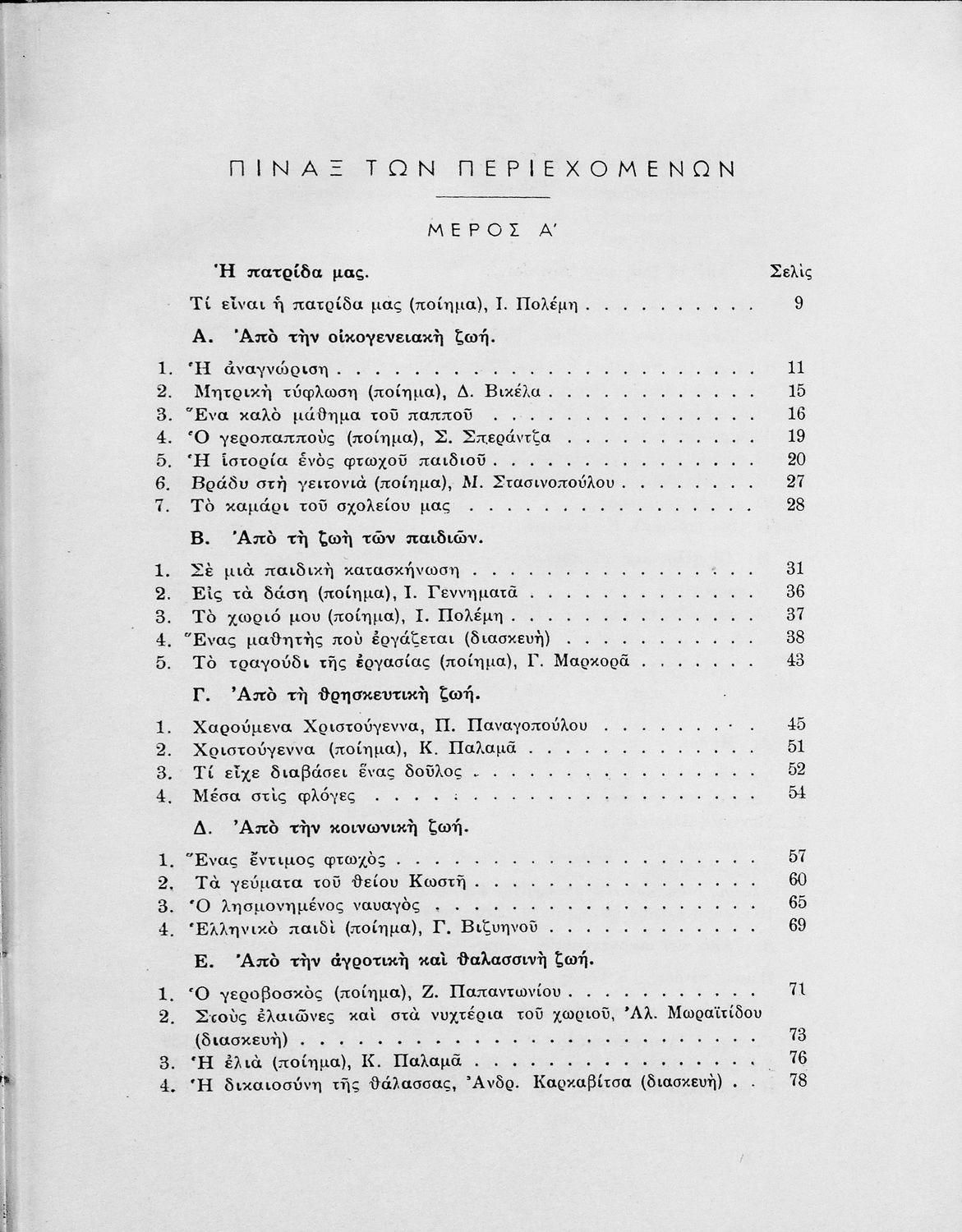 Αναγνωστικό Δ΄ Δημοτικού που περιέχει πεζά και ποιήματα με περιεχόμενο διδακτικό και ηθικοπλαστικό εμπνευσμένα από την ελληνική ιστορία και μυθολογία, και την αγροτική και κοινωνική ζωή.