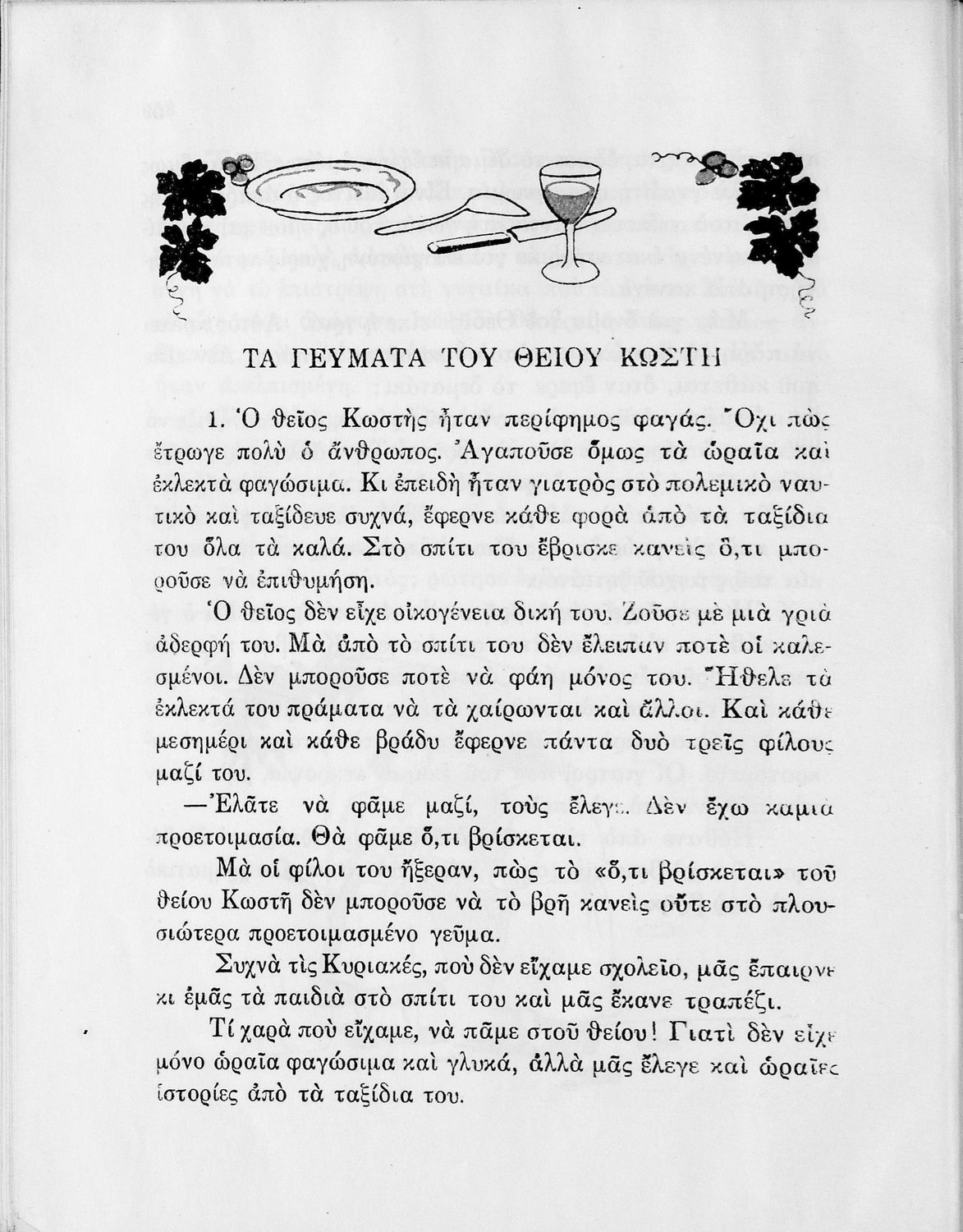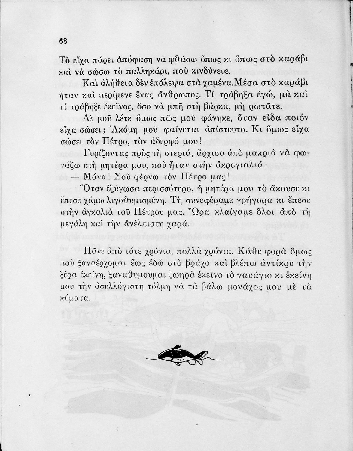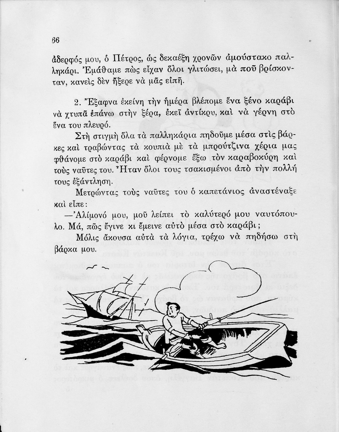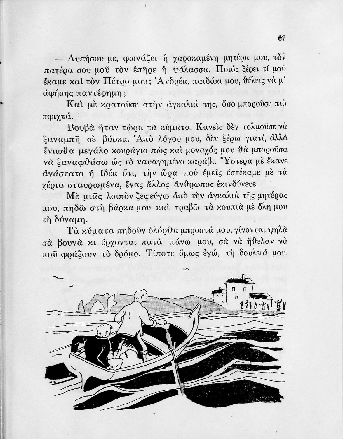 Αναγνωστικό για την Δ΄ τάξη του Δημοτικού. Περιλαμβάνει ένα κείμενο στο οποίο παρεμβάλλονται ποιήματα δημοτικά και Ελλήνων ποιητών.
