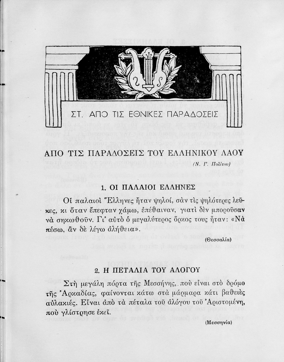 Αναγνωστικό Δ΄ Δημοτικού που περιέχει πεζά και ποιήματα εμπνευσμένα από την ελληνική ιστορία και μυθολογία, την κοινωνική ζωή και την ελληνική φύση.