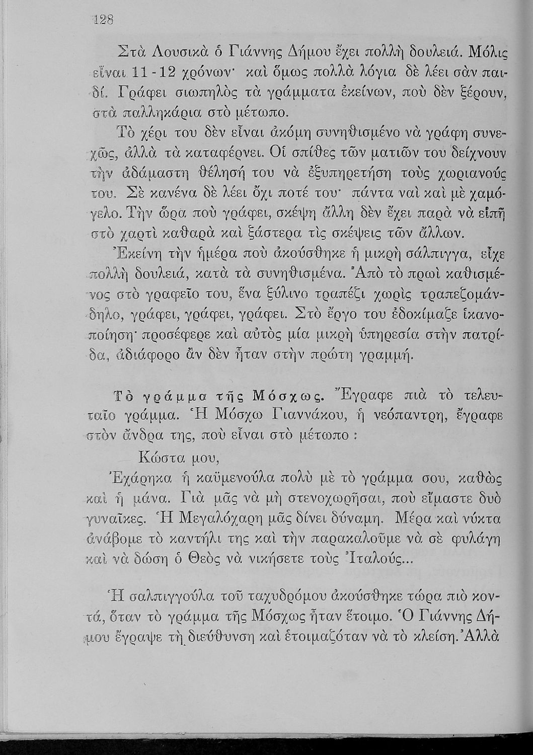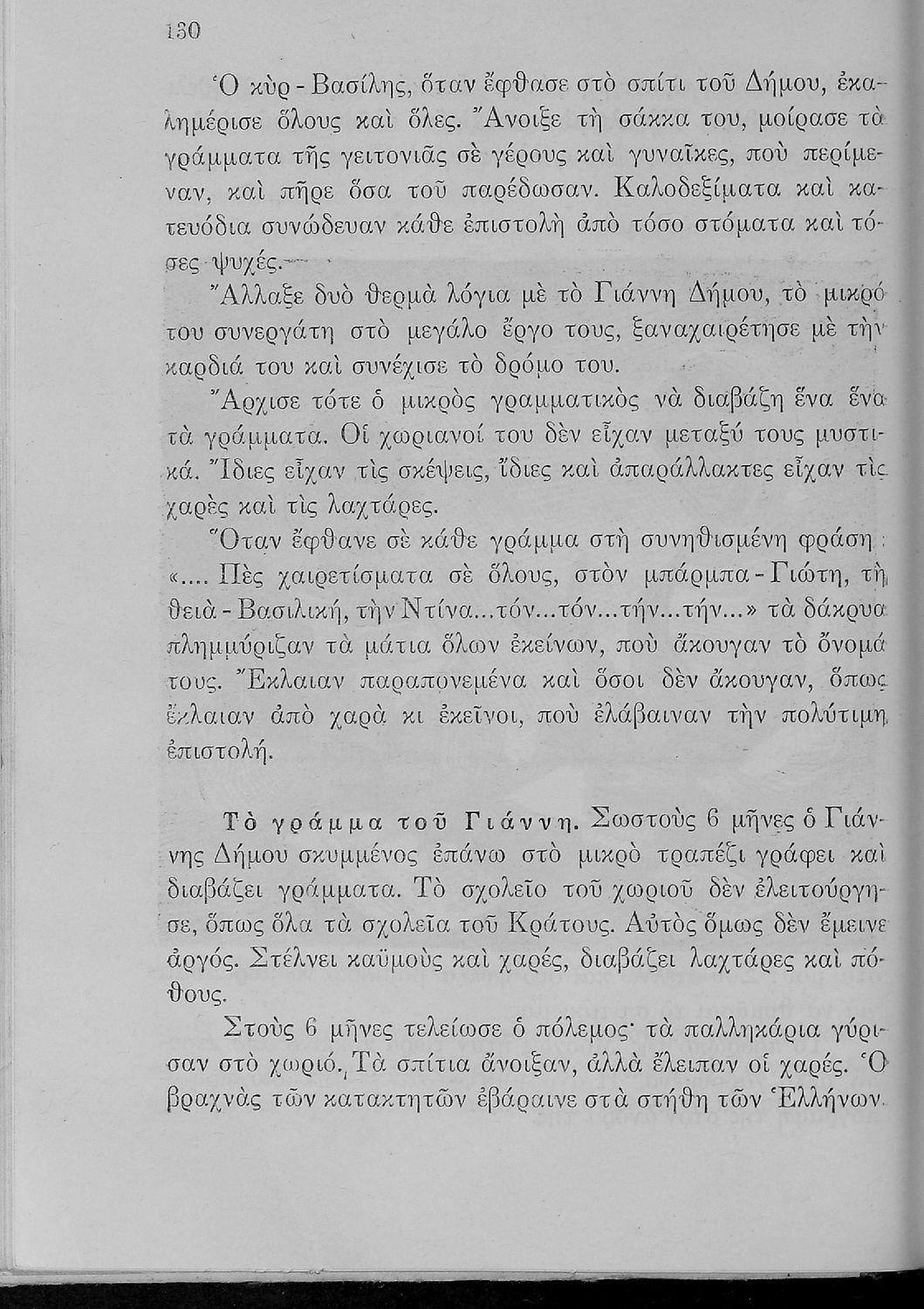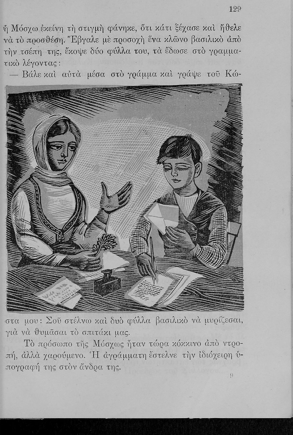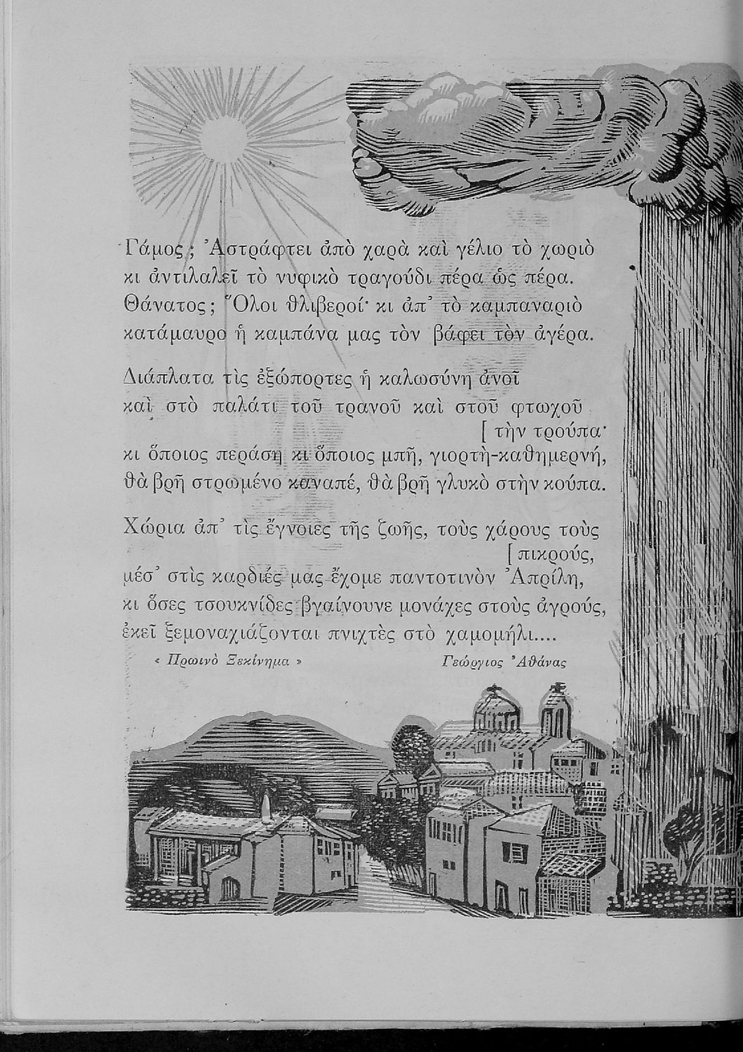 Αναγνωστικό Ε΄ Δημοτικού που περιλαμβάνει πεζογραφήματα εμπνευσμένα από την ελληνική φύση, την αγροτική ζωή και από το τρίπτυχο "Πατρίς- θρησκεία- οικογένεια".