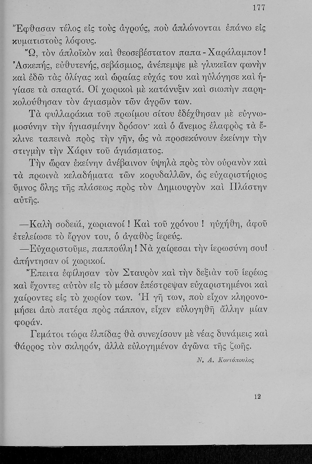 Αναγνωστικό Ε΄ Δημοτικού που περιλαμβάνει πεζογραφήματα εμπνευσμένα από την ελληνική φύση, την αγροτική ζωή και από το τρίπτυχο "Πατρίς- θρησκεία- οικογένεια".