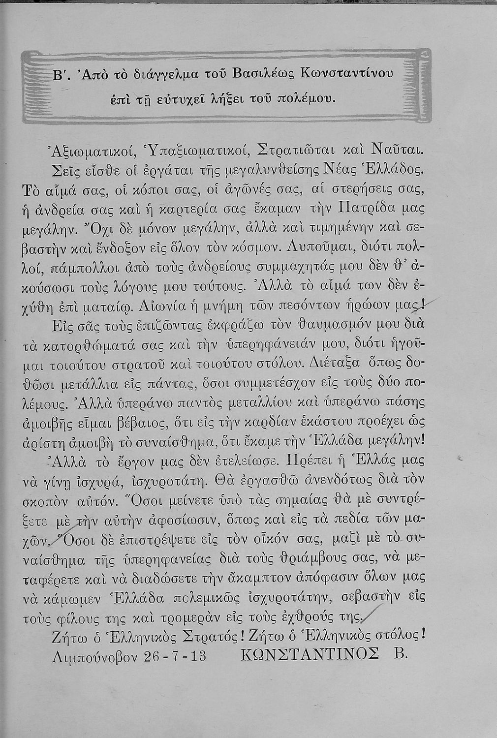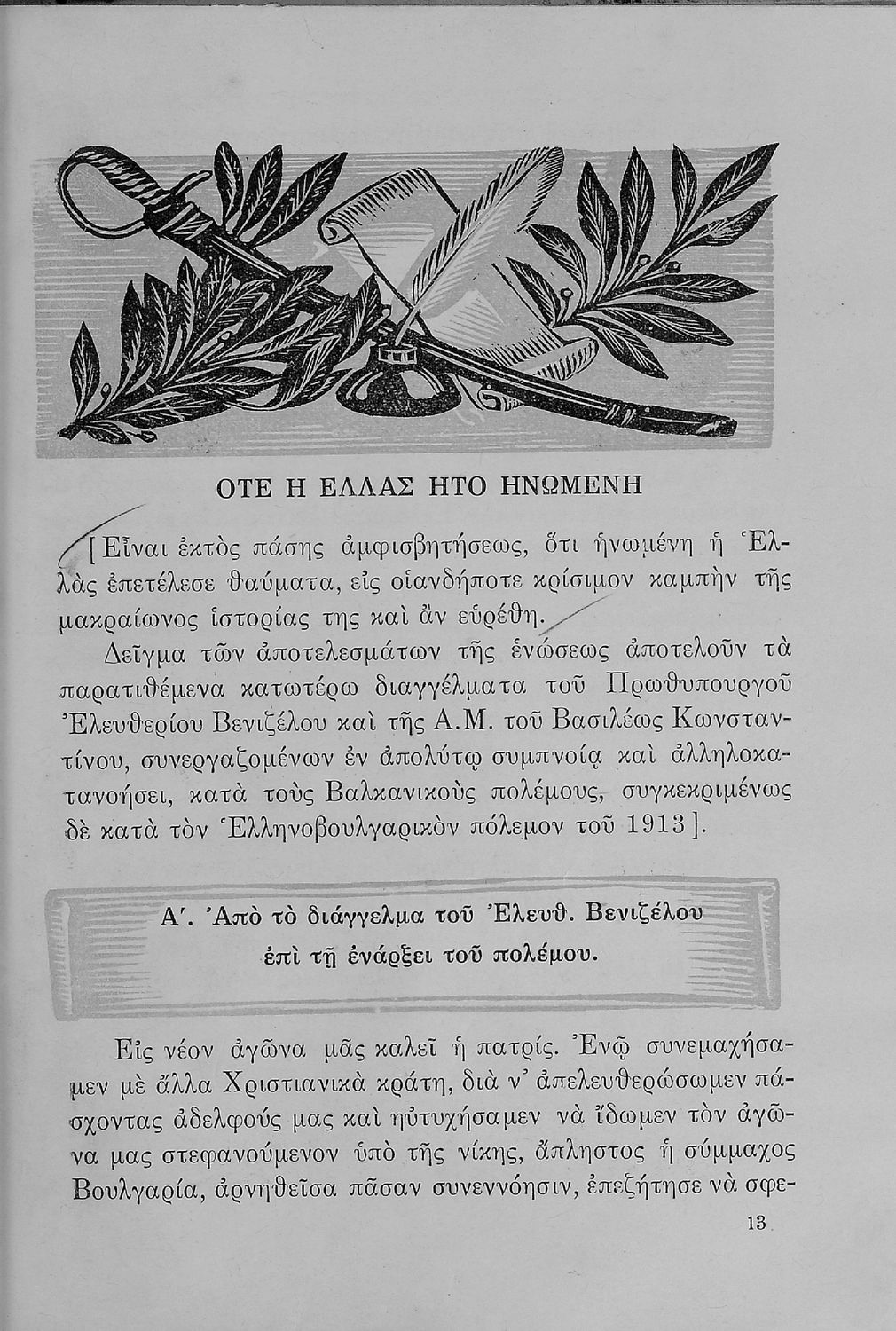 Αναγνωστικό Ε΄ Δημοτικού που περιλαμβάνει εξιστορήσεις πολεμικών γεγονότων εμπνευσμένες από την περίοδο του Βυζαντίου και των Βαλκανικών Πολέμων.