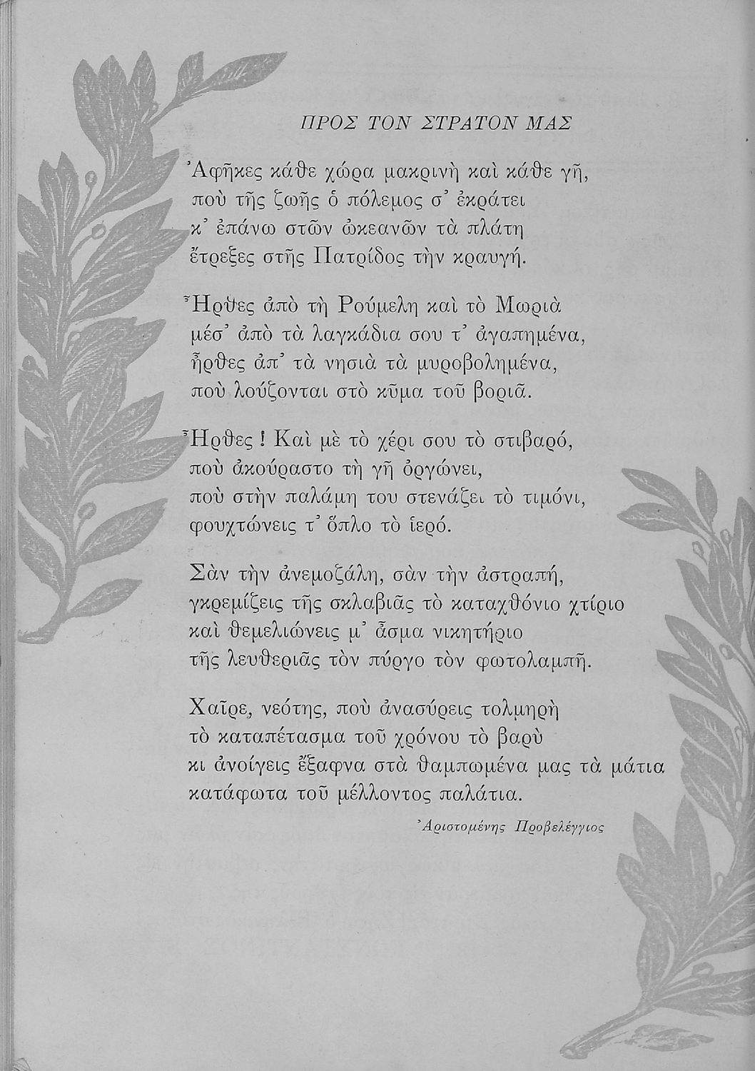 Αναγνωστικό για τους μαθητές της Ε΄ Δημοτικού που περιλαμβάνει ποιήματα και πεζά με θέματα από την ελληνική φύση και την ιστορία και θρησκεία των Ελλήνων.