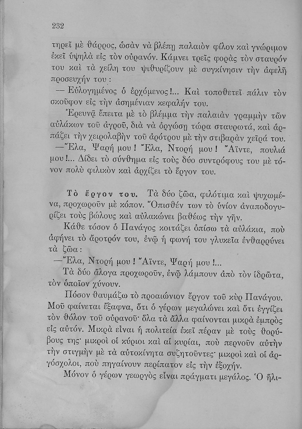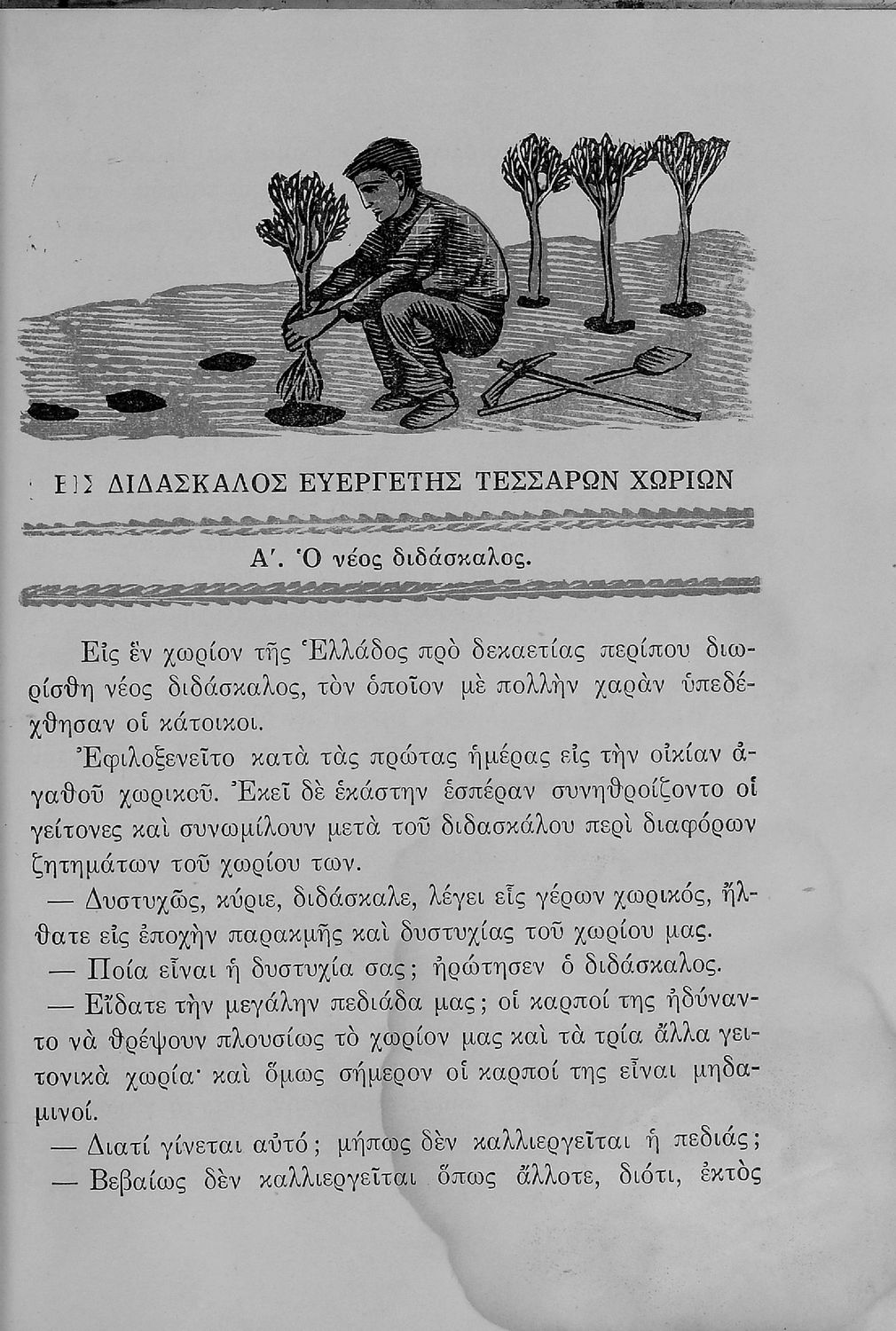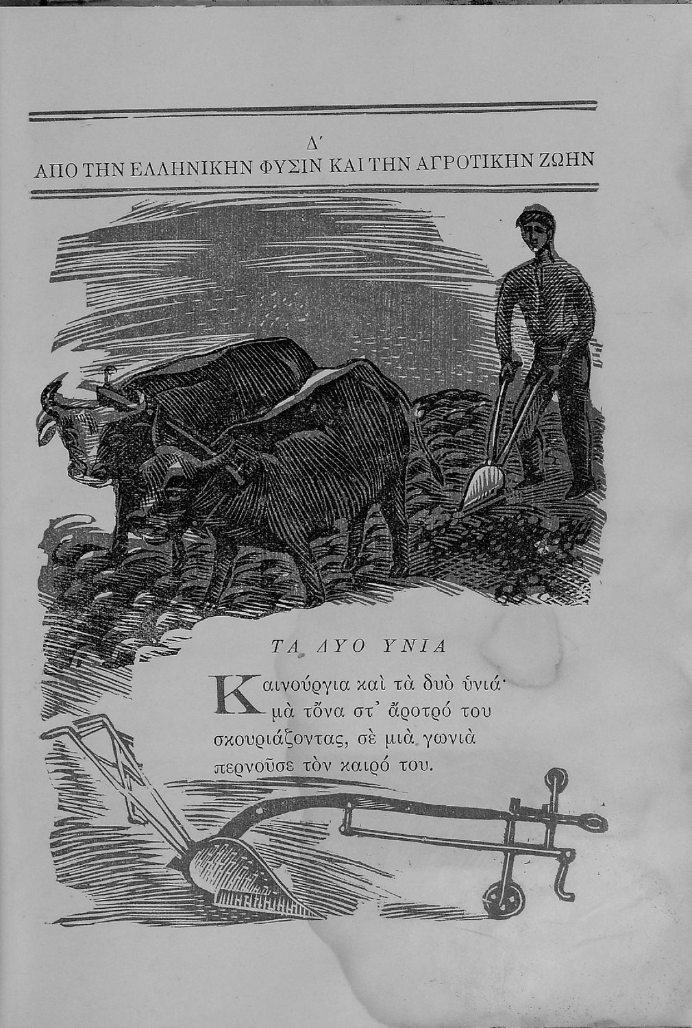 Αναγνωστικό Ε΄ Δημοτικού που περιλαμβάνει πεζογραφήματα εμπνευσμένα από την ελληνική φύση, την αγροτική ζωή και από το τρίπτυχο "Πατρίς- θρησκεία- οικογένεια".
