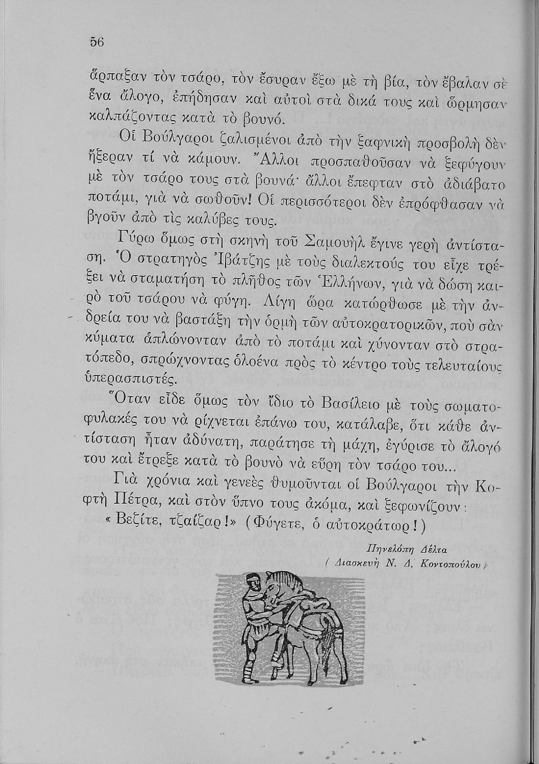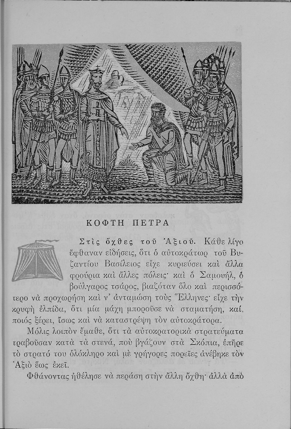 Αναγνωστικό Ε΄ Δημοτικού που περιλαμβάνει εξιστορήσεις πολεμικών γεγονότων εμπνευσμένες από την περίοδο του Βυζαντίου και των Βαλκανικών Πολέμων.