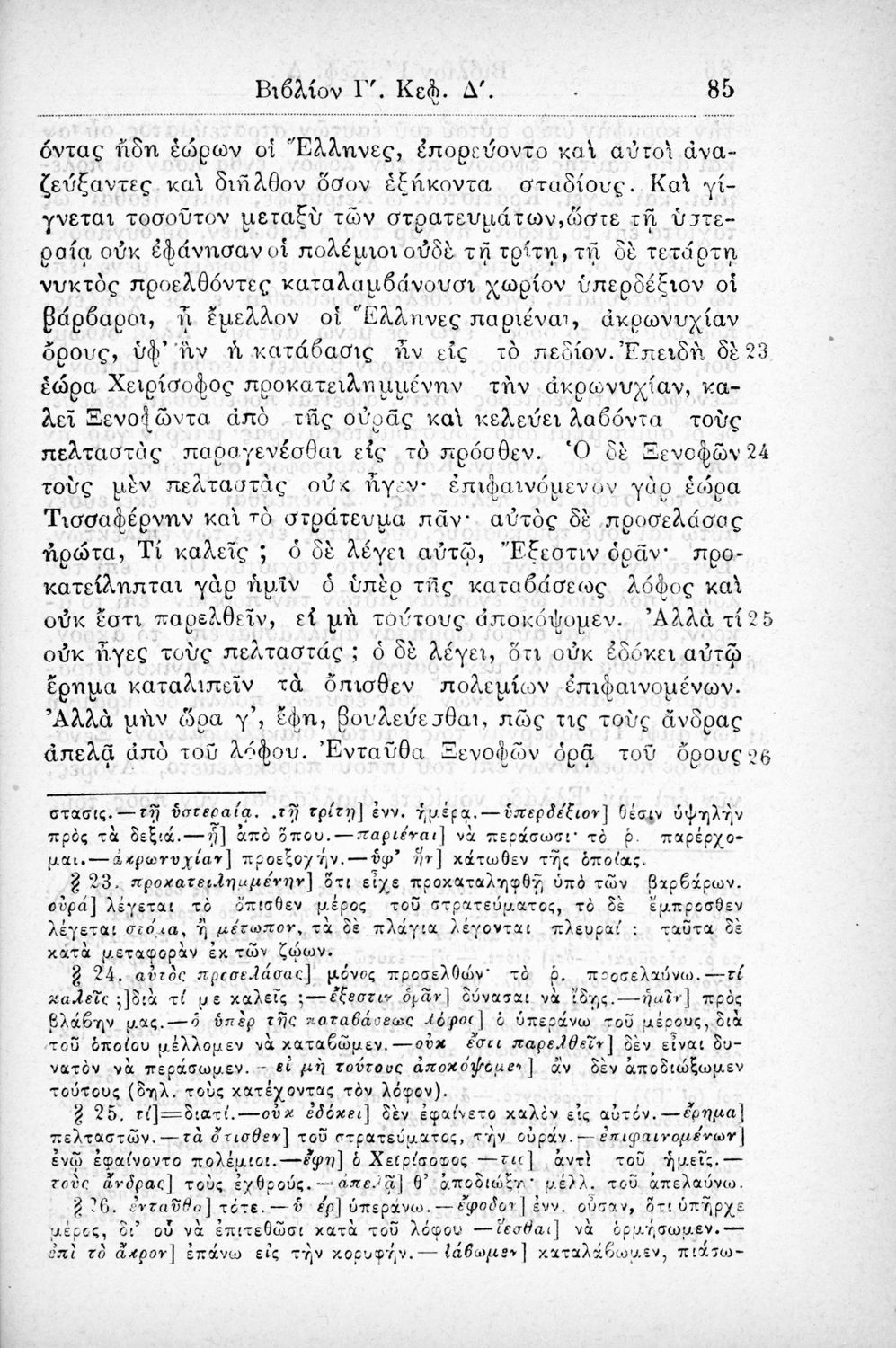 Σχολικό εγχειρίδιο Αρχαίων Ελληνικών για τα Ελληνικά Σχολεία και Παρθεναγωγεία που περιλαμβάνει αποσπάσματα από το έργο του Ξενοφώντα Κύρου Ανάβασις, και λεξικογραφικές παρατηρήσεις.