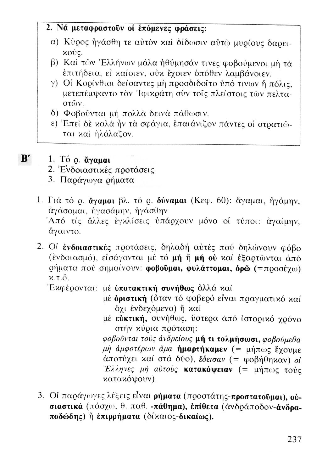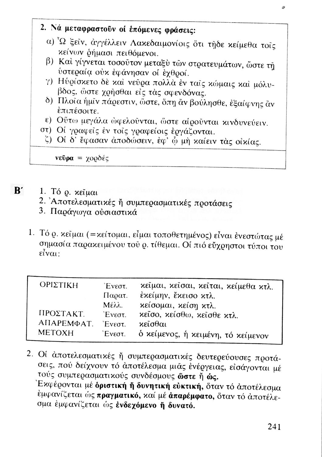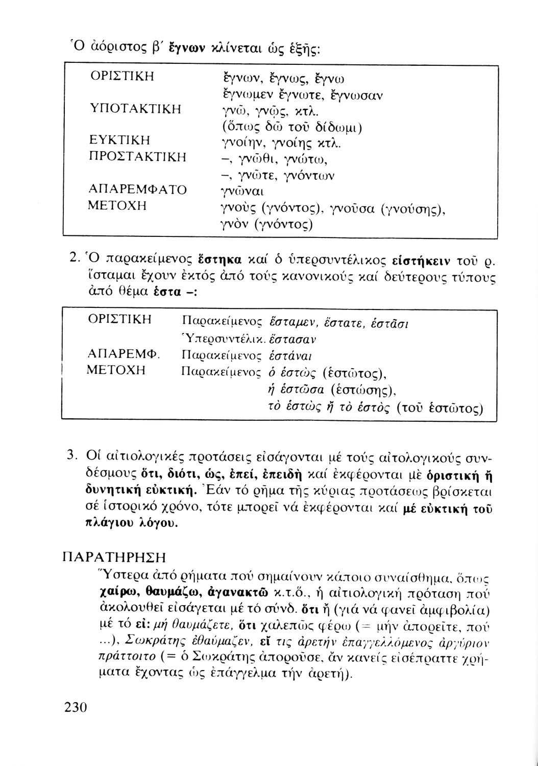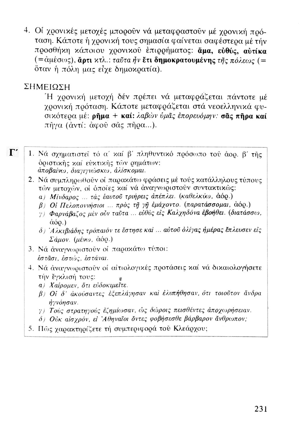 Σχολικό εγχειρίδιο Αρχαίων Ελληνικών για τις Α΄, Β΄ και Γ΄ Λυκείου που εξετάζει τα μέρη του λόγου και την σύνταξή τους.