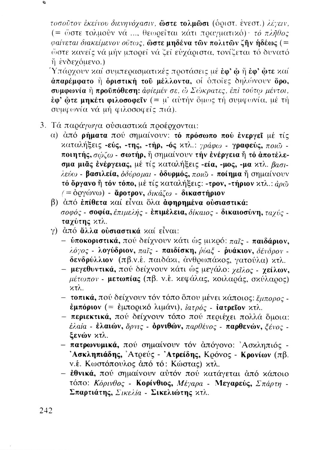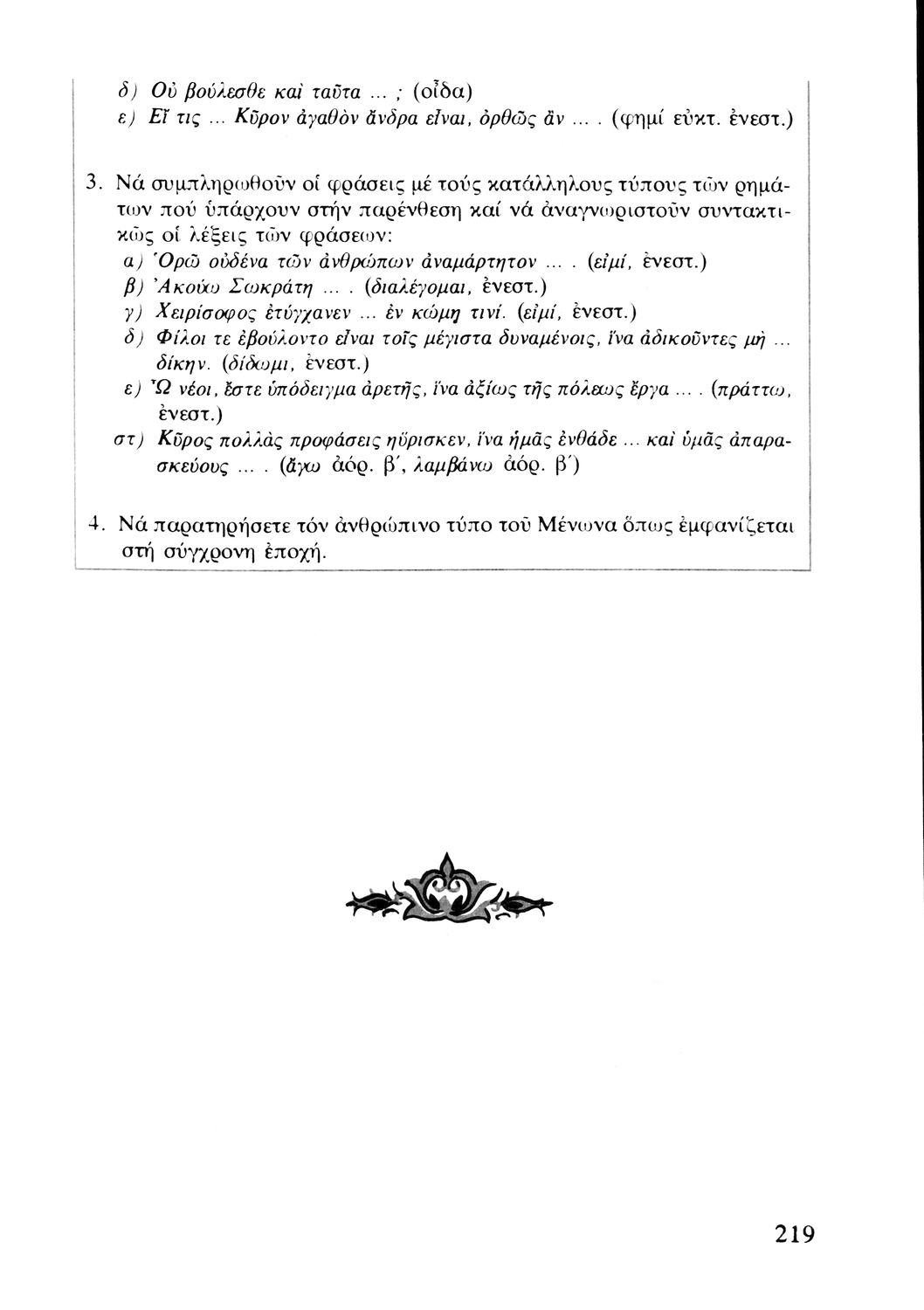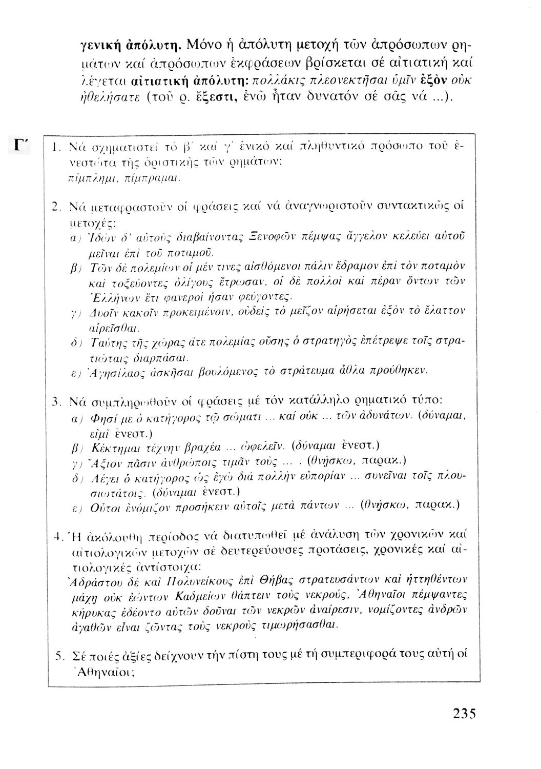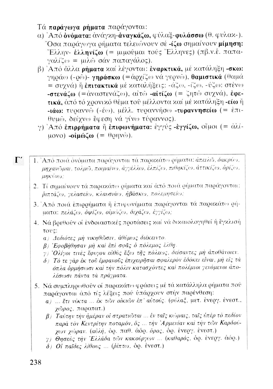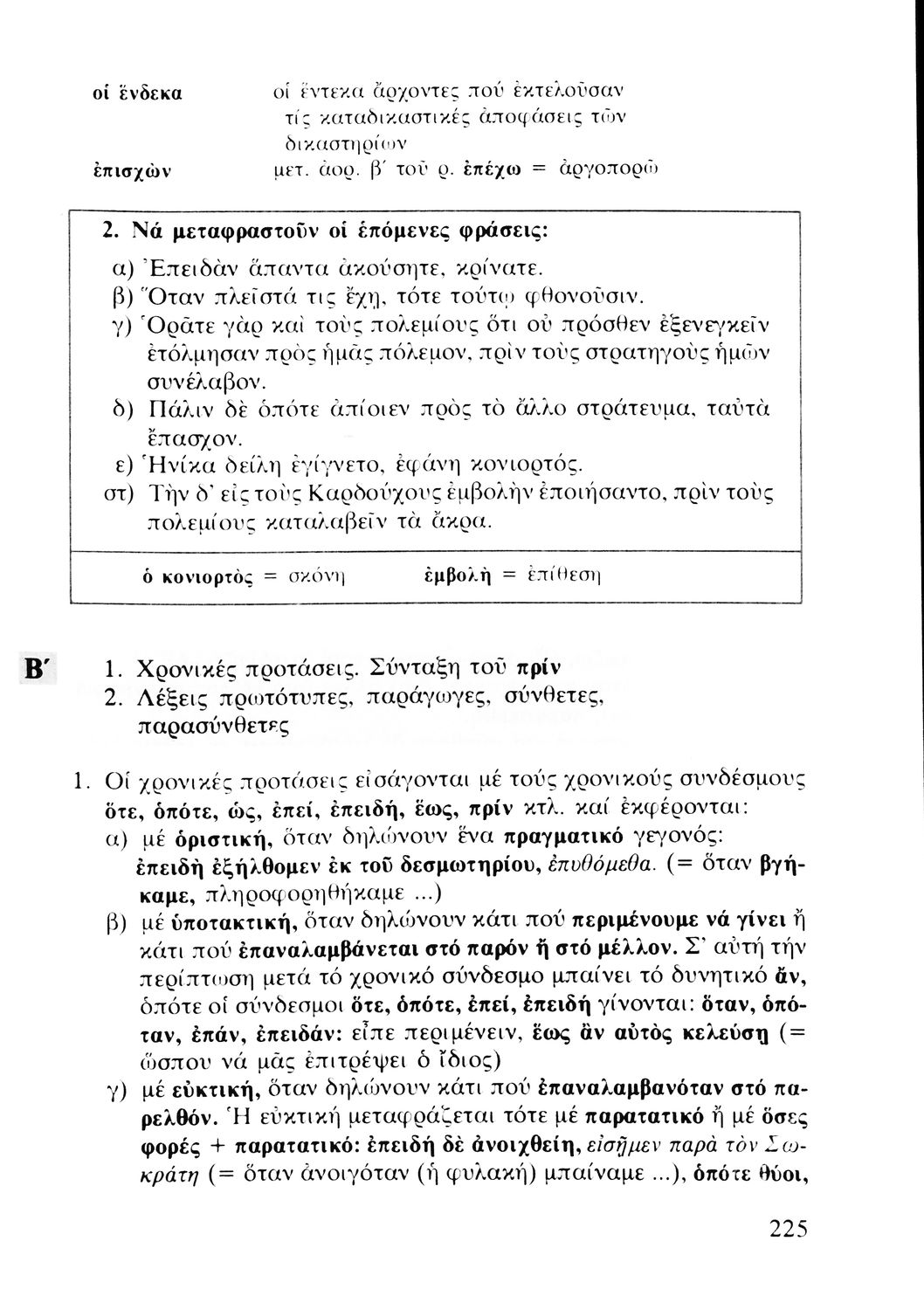 Σχολικό εγχειρίδιο Αρχαίων Ελληνικών για τις Α΄, Β΄ και Γ΄ Λυκείου που εξετάζει τα μέρη του λόγου και την σύνταξή τους.