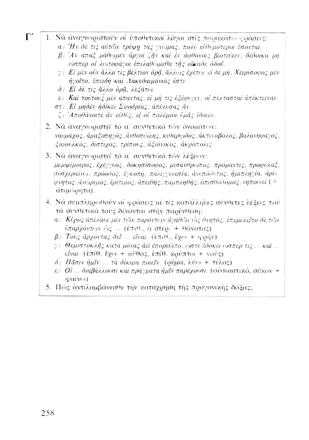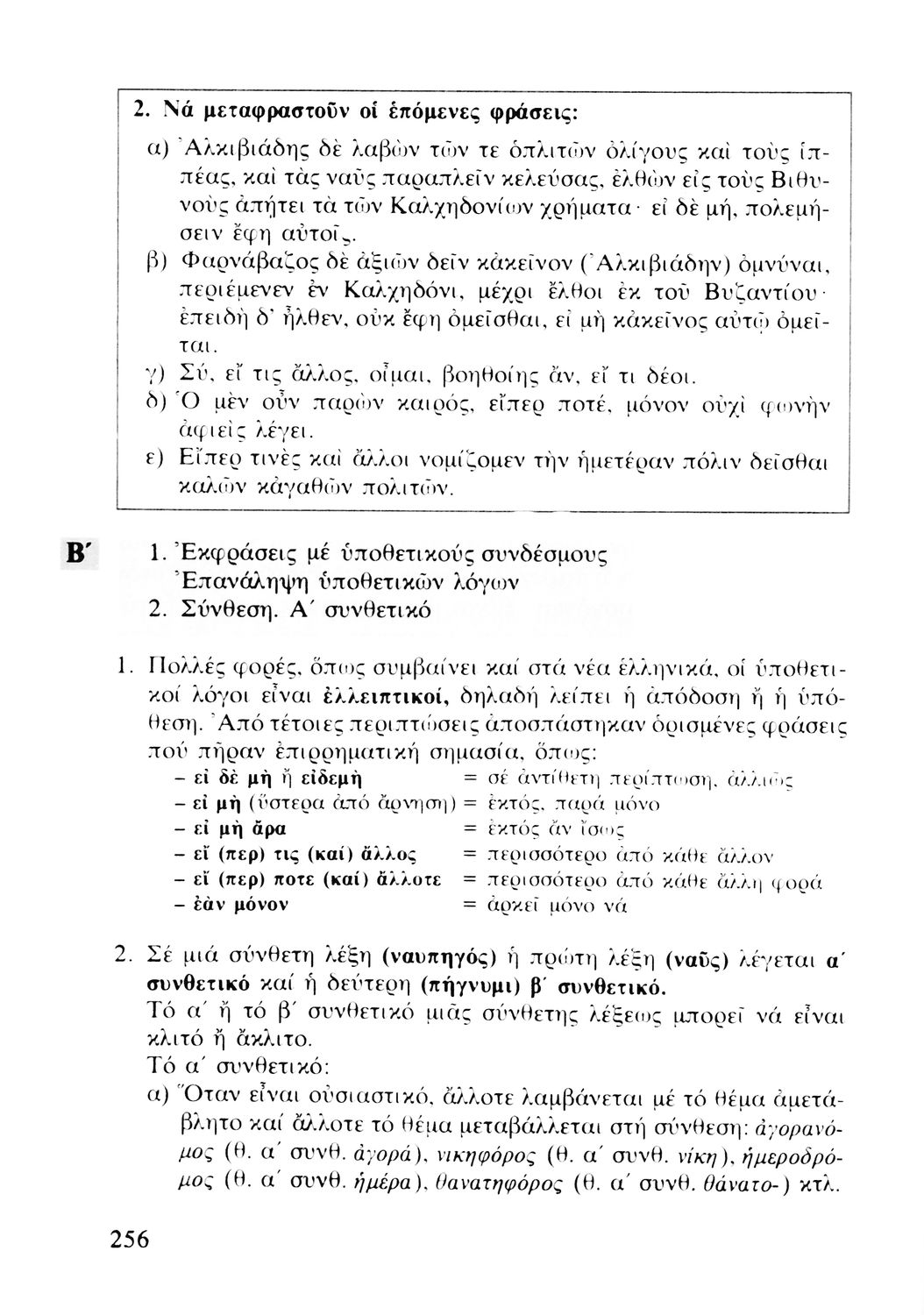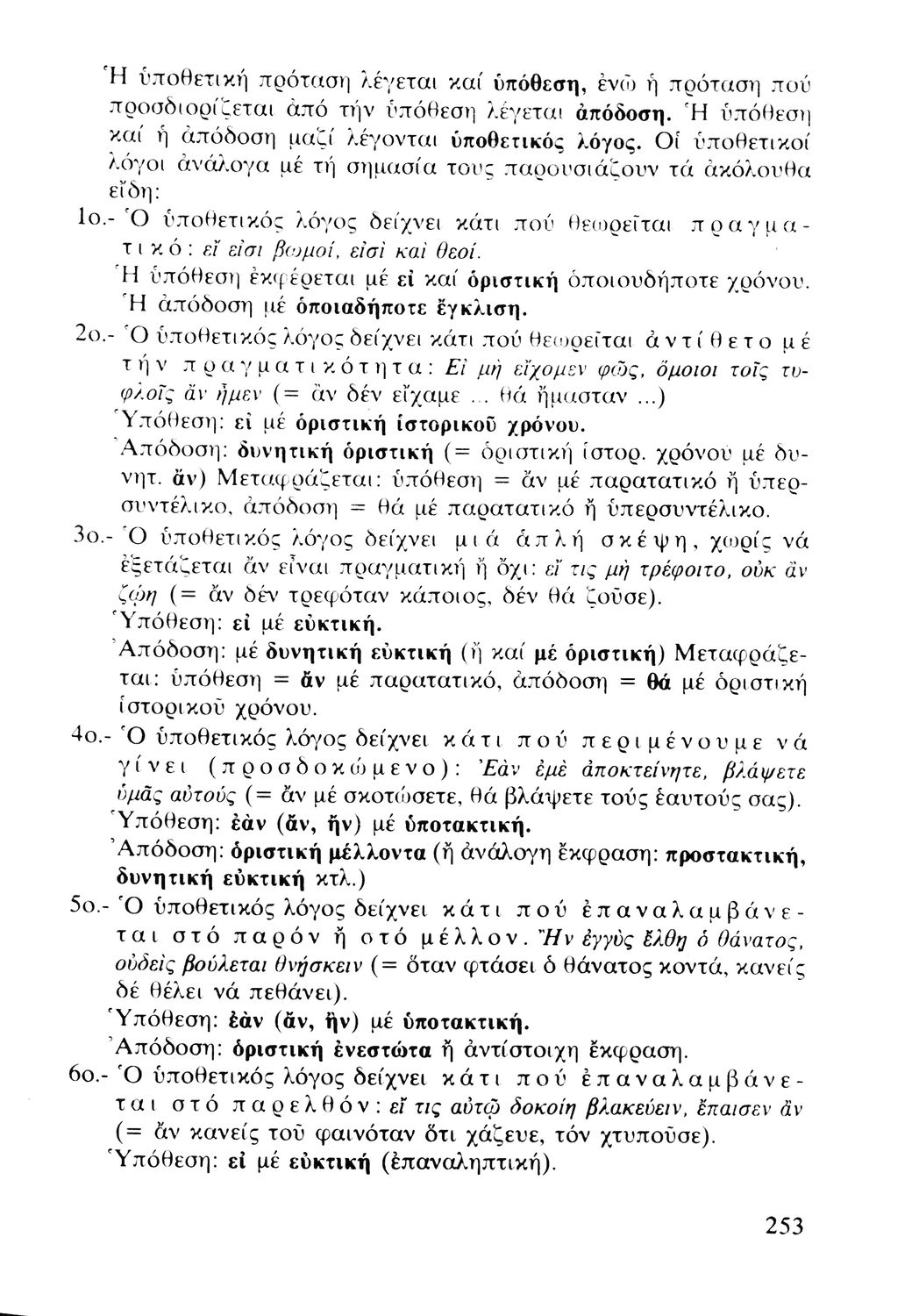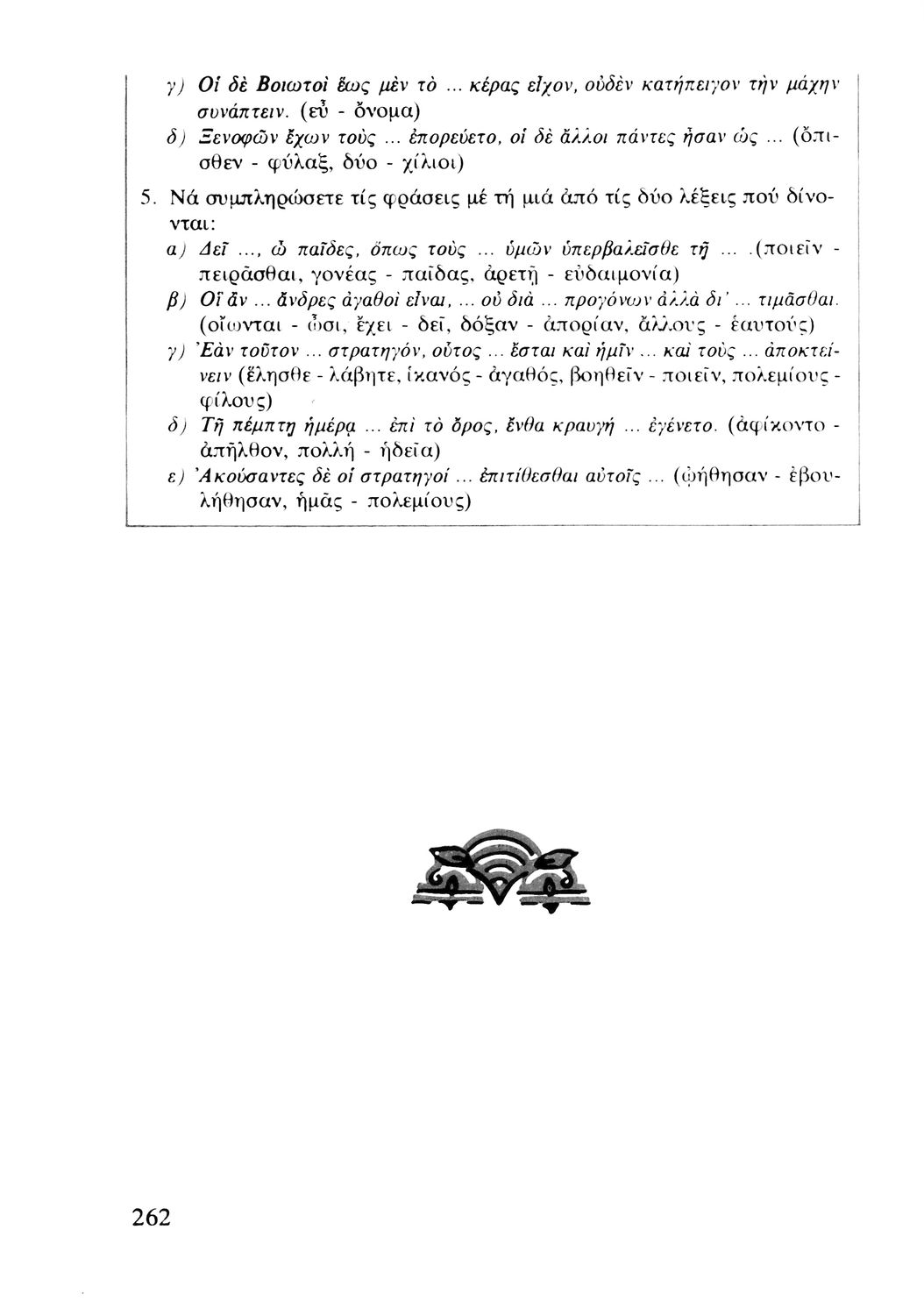 Σχολικό εγχειρίδιο Αρχαίων Ελληνικών για τις Α΄, Β΄ και Γ΄ Λυκείου που εξετάζει τα μέρη του λόγου και την σύνταξή τους.