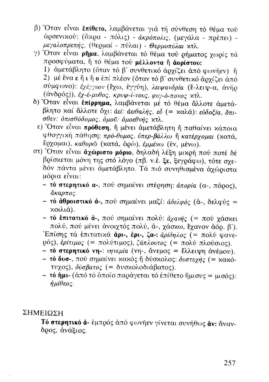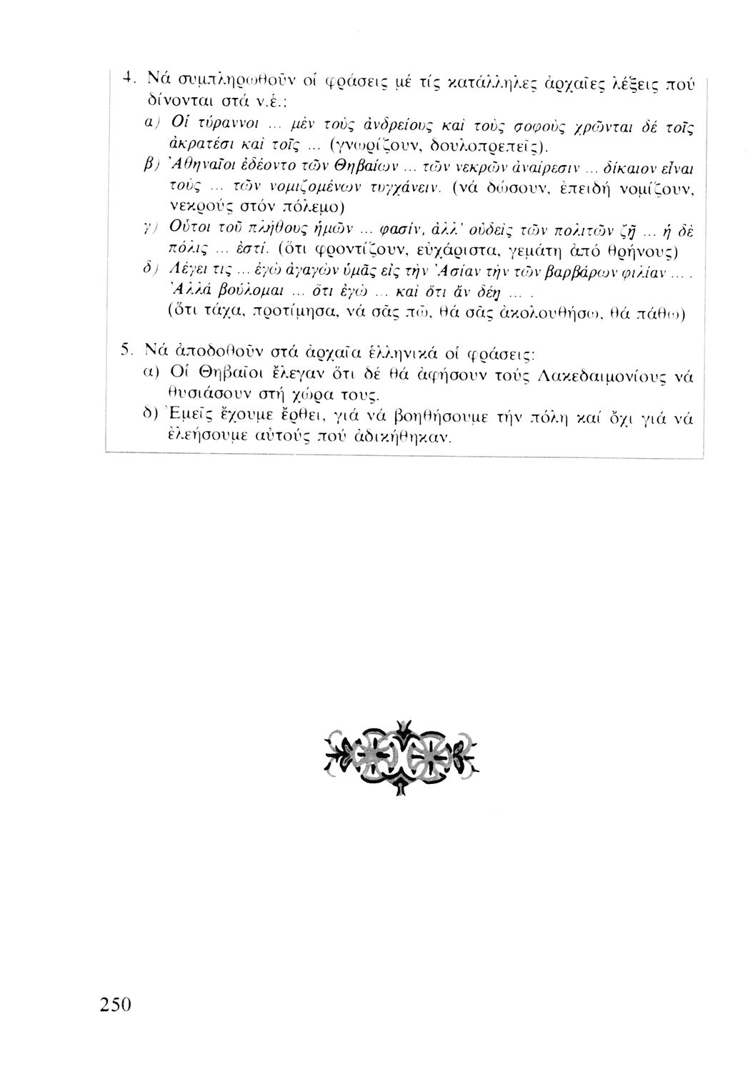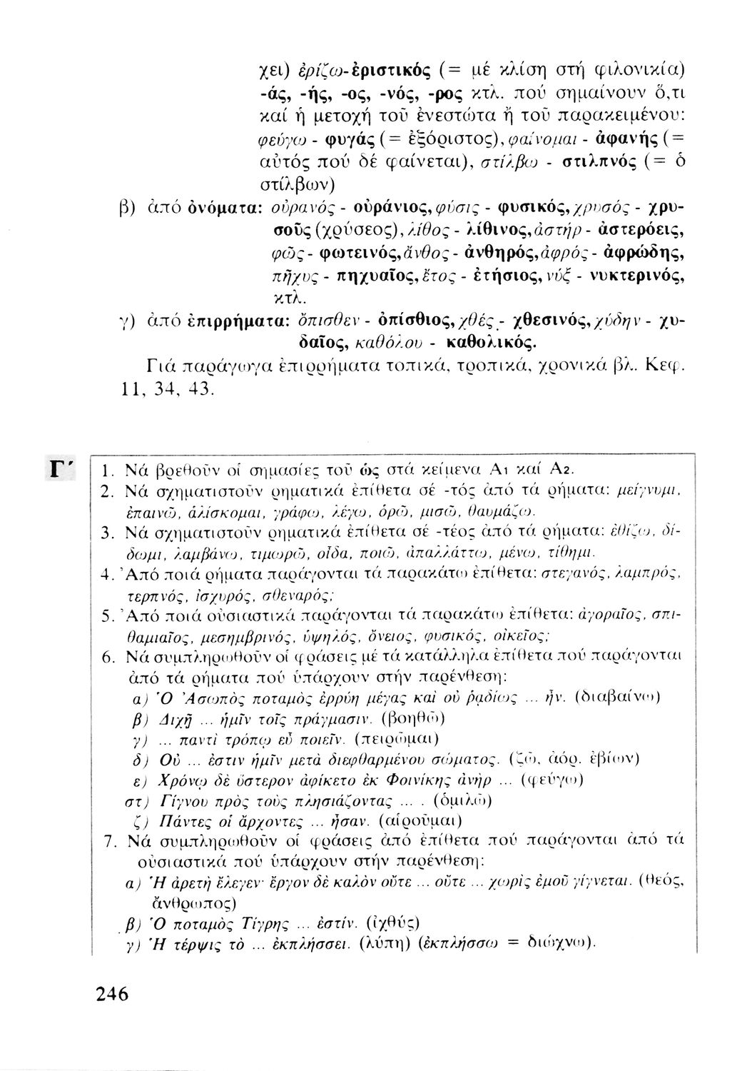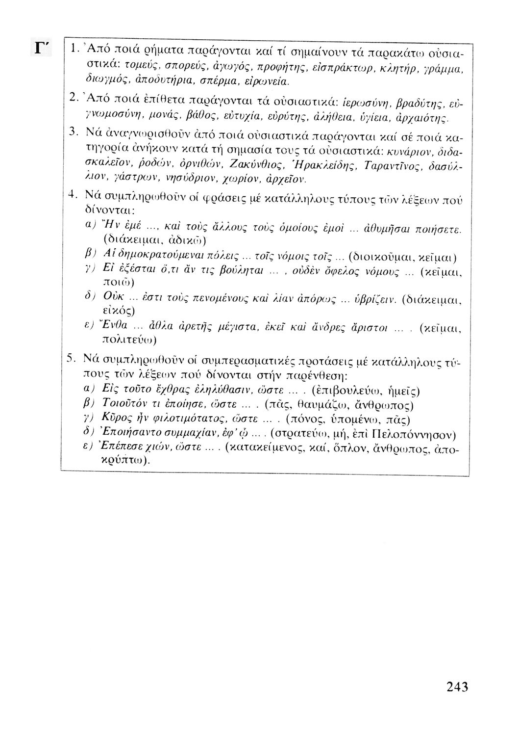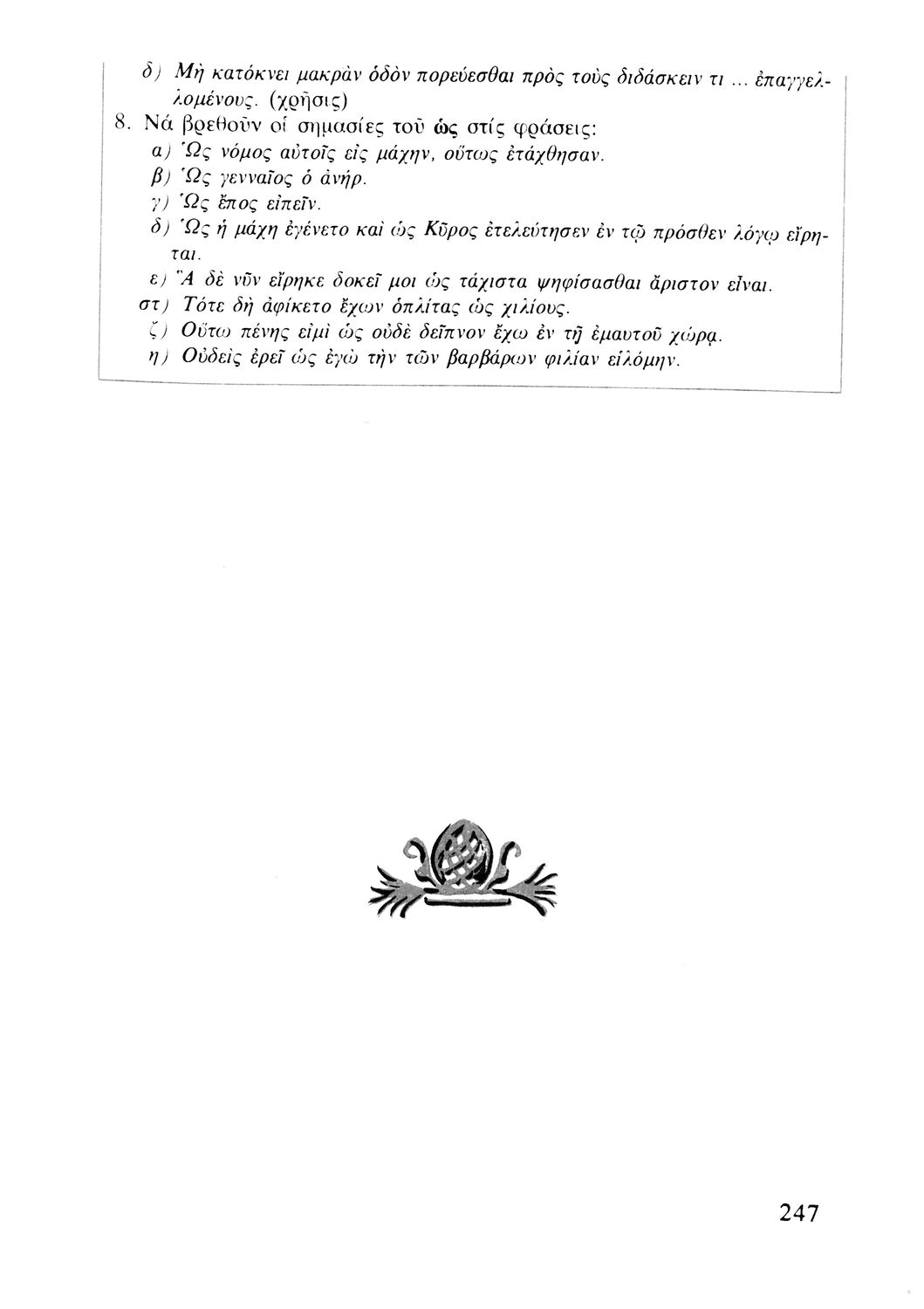 Σχολικό εγχειρίδιο Αρχαίων Ελληνικών για τις Α΄, Β΄ και Γ΄ Λυκείου που εξετάζει τα μέρη του λόγου και την σύνταξή τους.