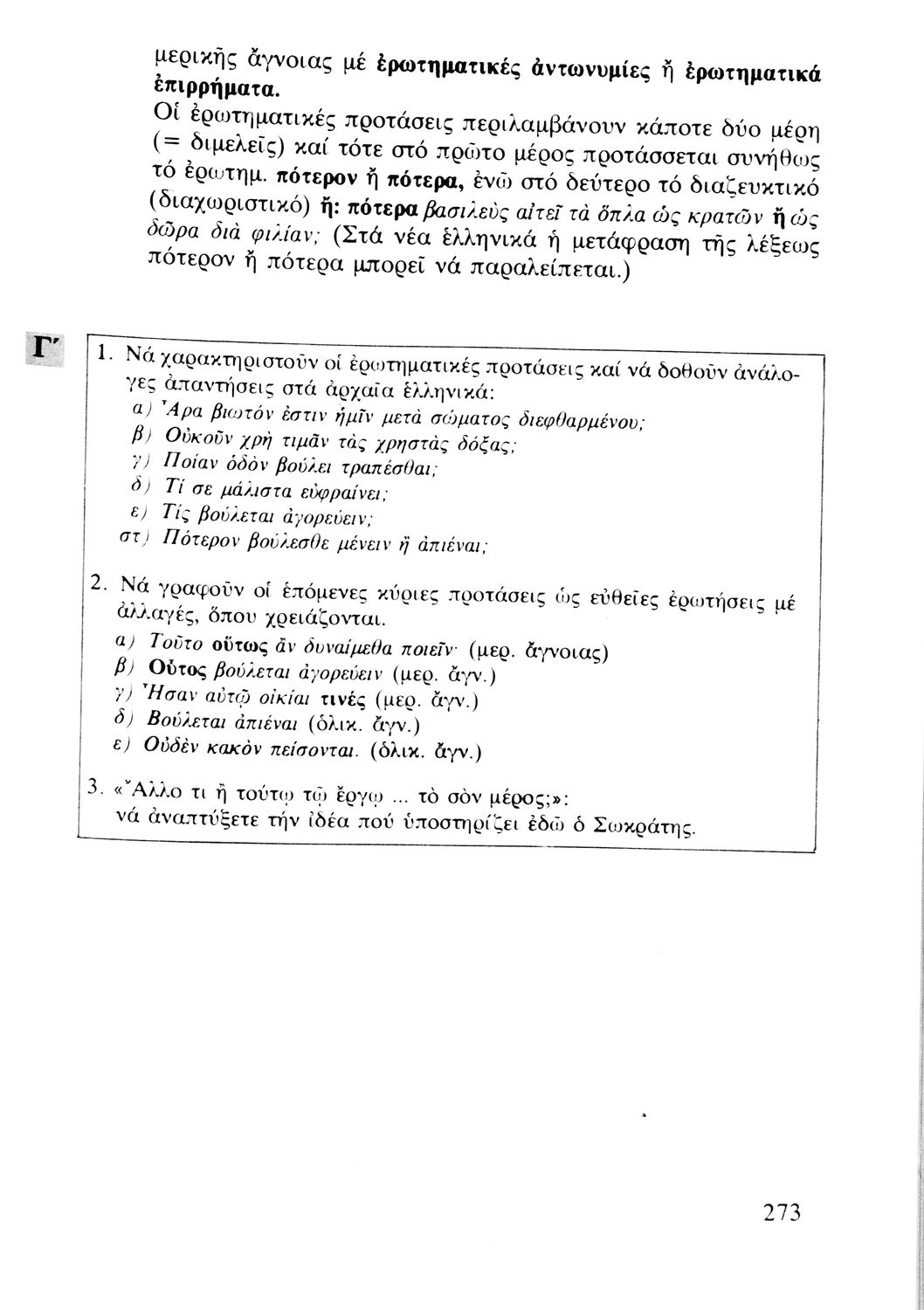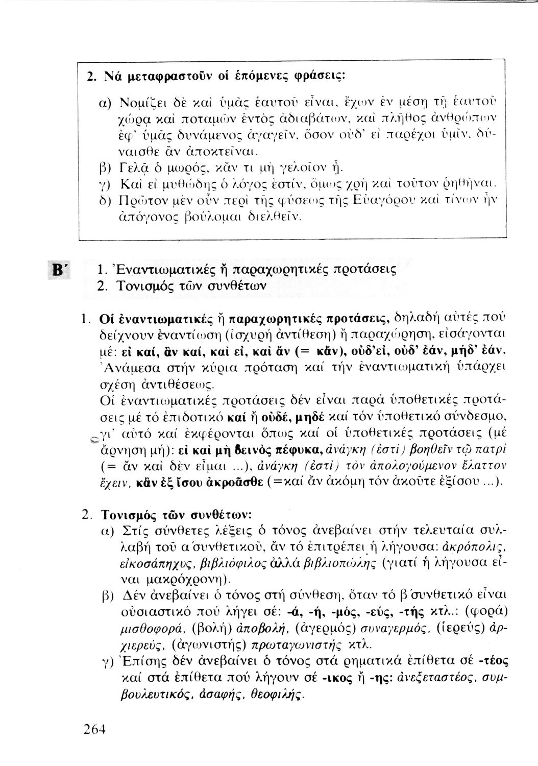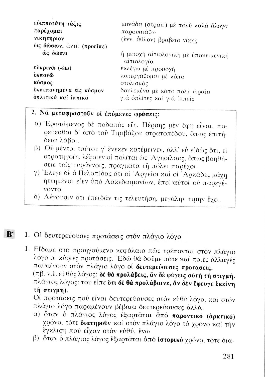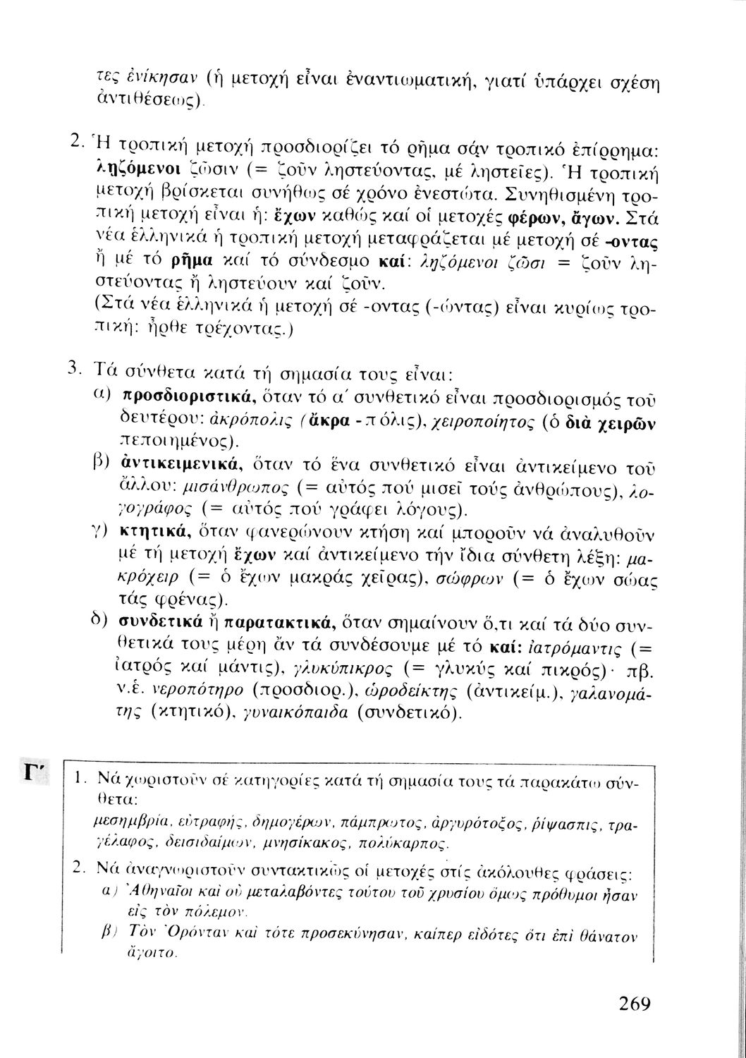 Σχολικό εγχειρίδιο Αρχαίων Ελληνικών για τις Α΄, Β΄ και Γ΄ Λυκείου που εξετάζει τα μέρη του λόγου και την σύνταξή τους.