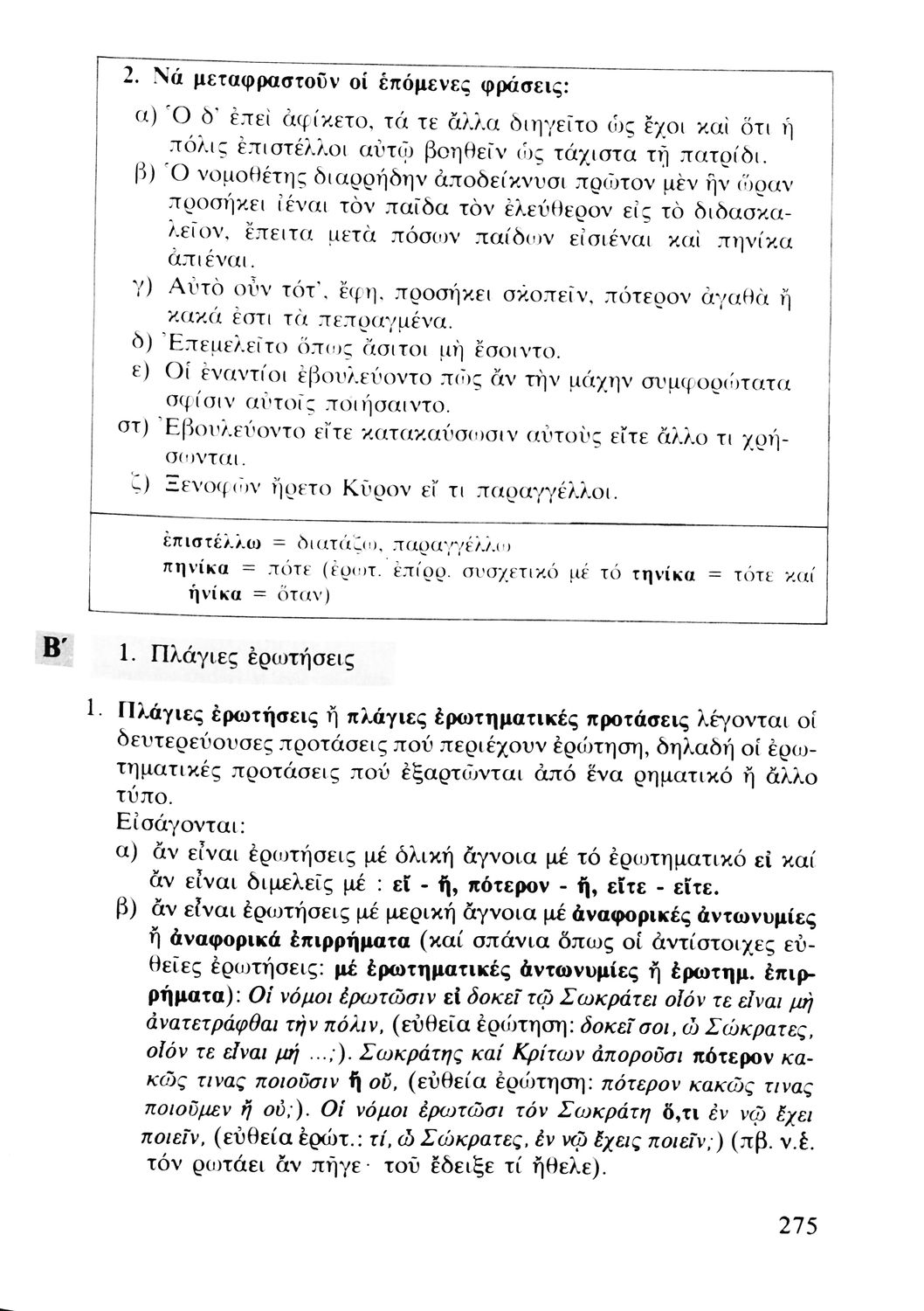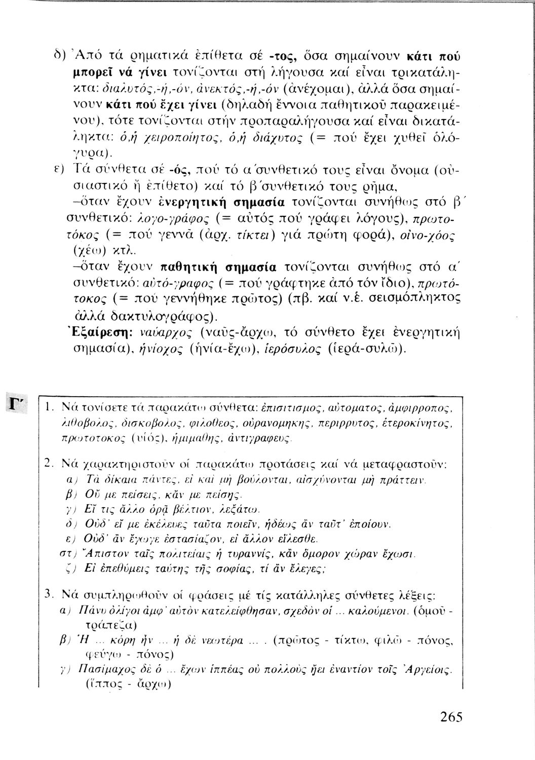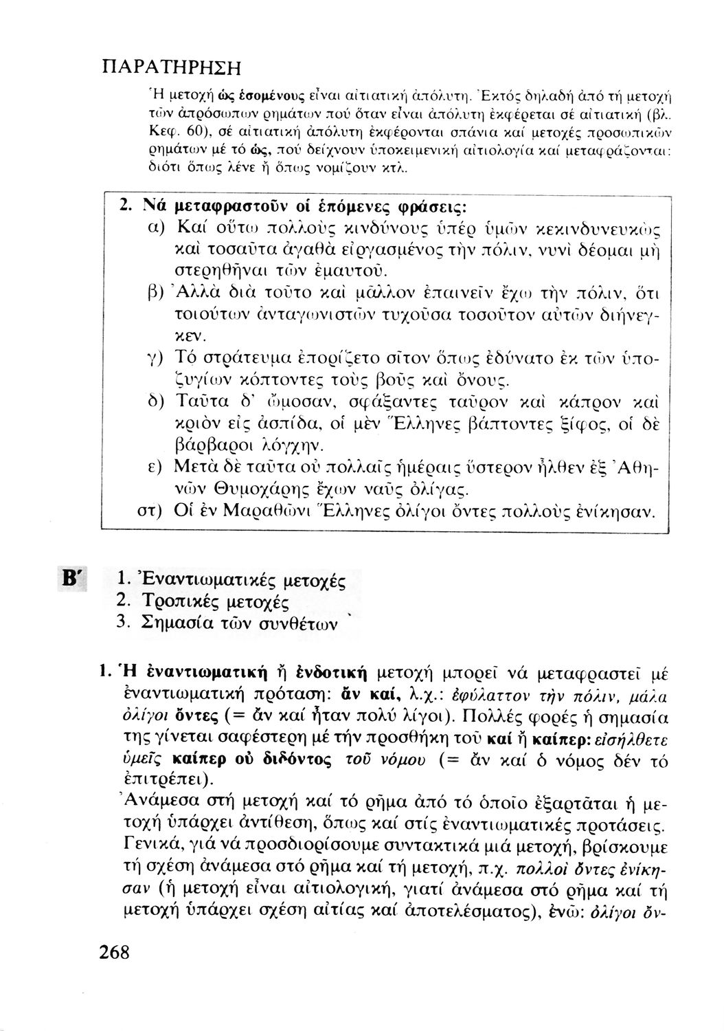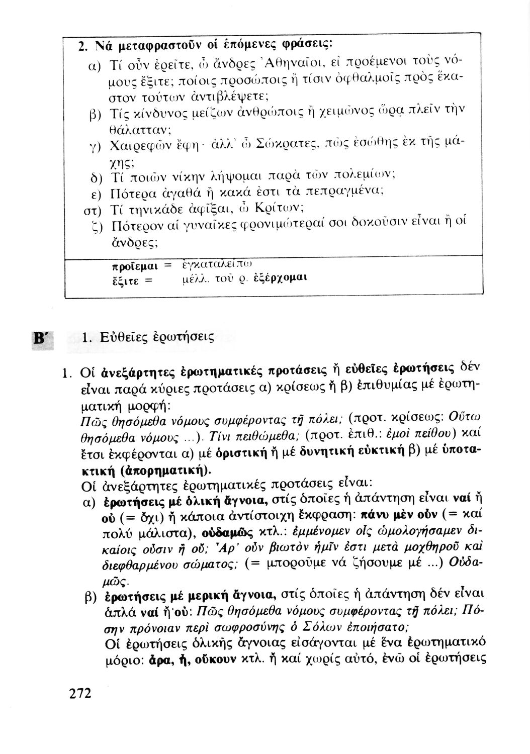 Σχολικό εγχειρίδιο Αρχαίων Ελληνικών για τις Α΄, Β΄ και Γ΄ Λυκείου που εξετάζει τα μέρη του λόγου και την σύνταξή τους.