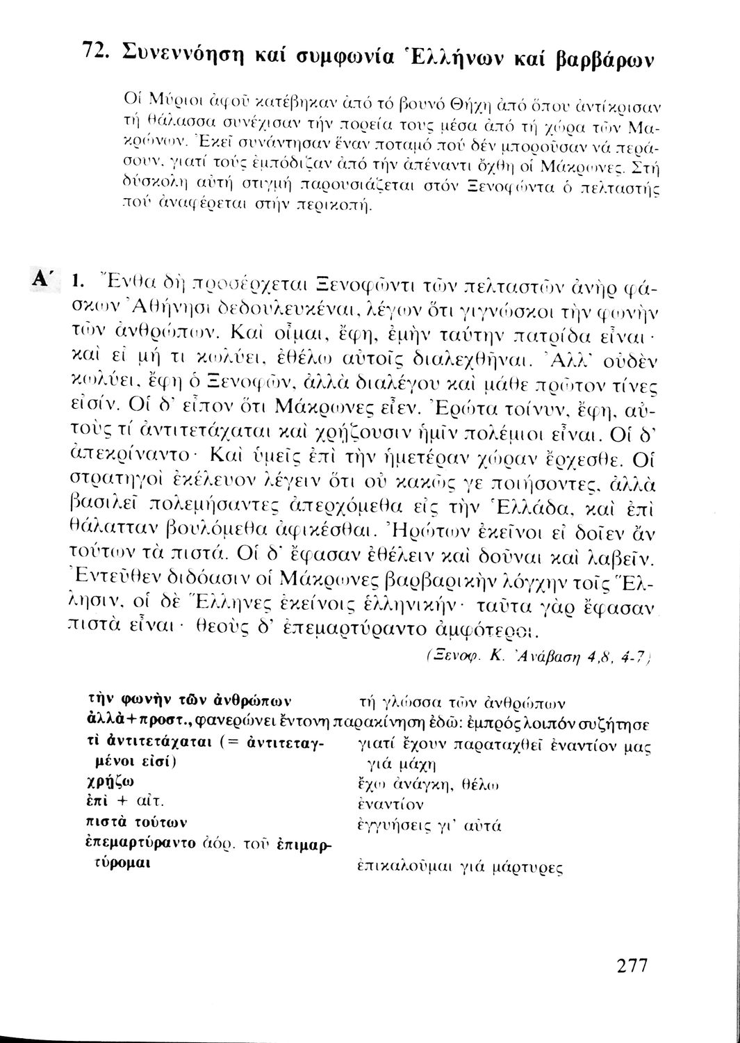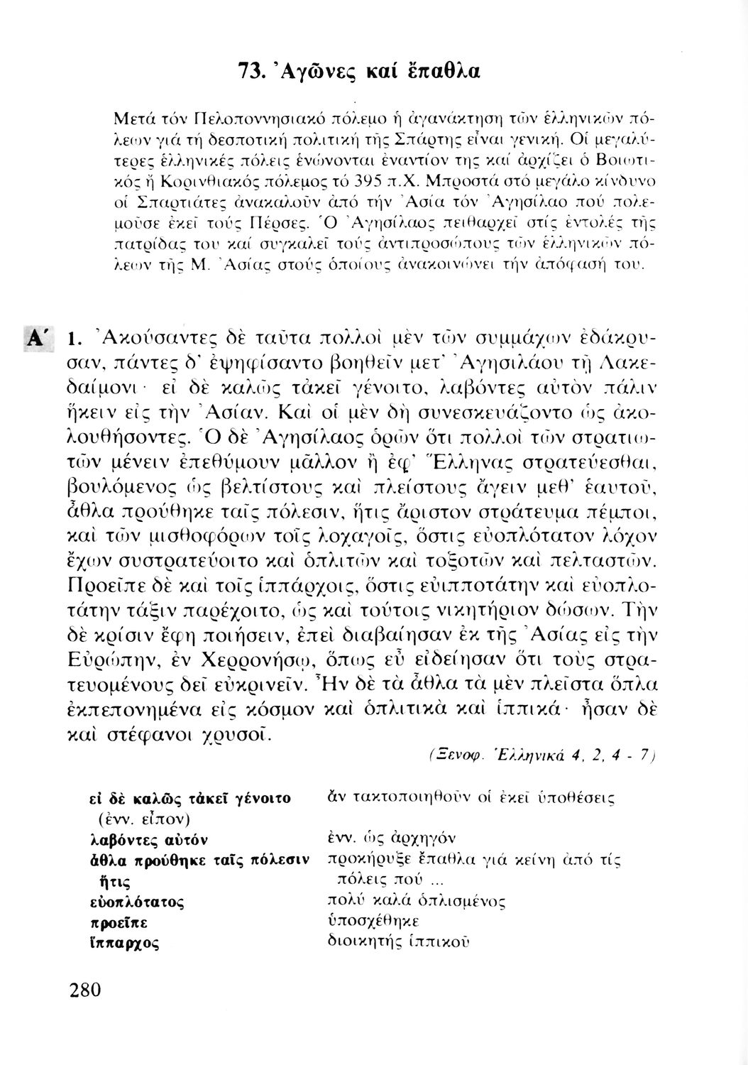 Σχολικό εγχειρίδιο Αρχαίων ελληνικών Α΄ Λυκείου που περιλαμβάνει αποσπάσματα από τα Ελληνικά του Ξενοφώντα, εισαγωγή στη ζωή και το έργο του, ερμηνευτικές σημειώσεις, τοπογραφικούς πίνακες και σχεδιαγράμματα ...