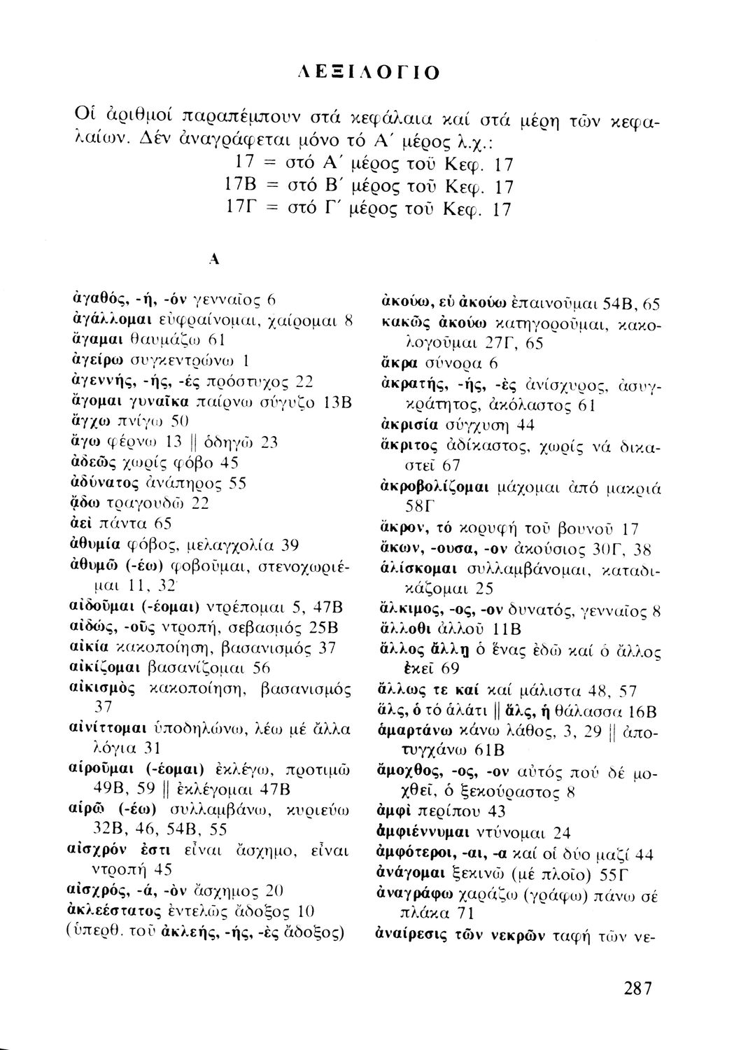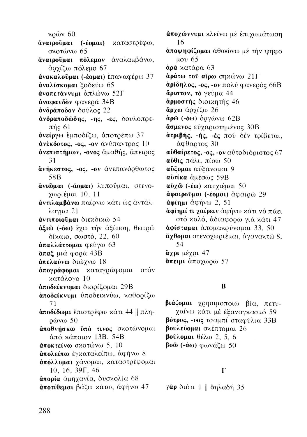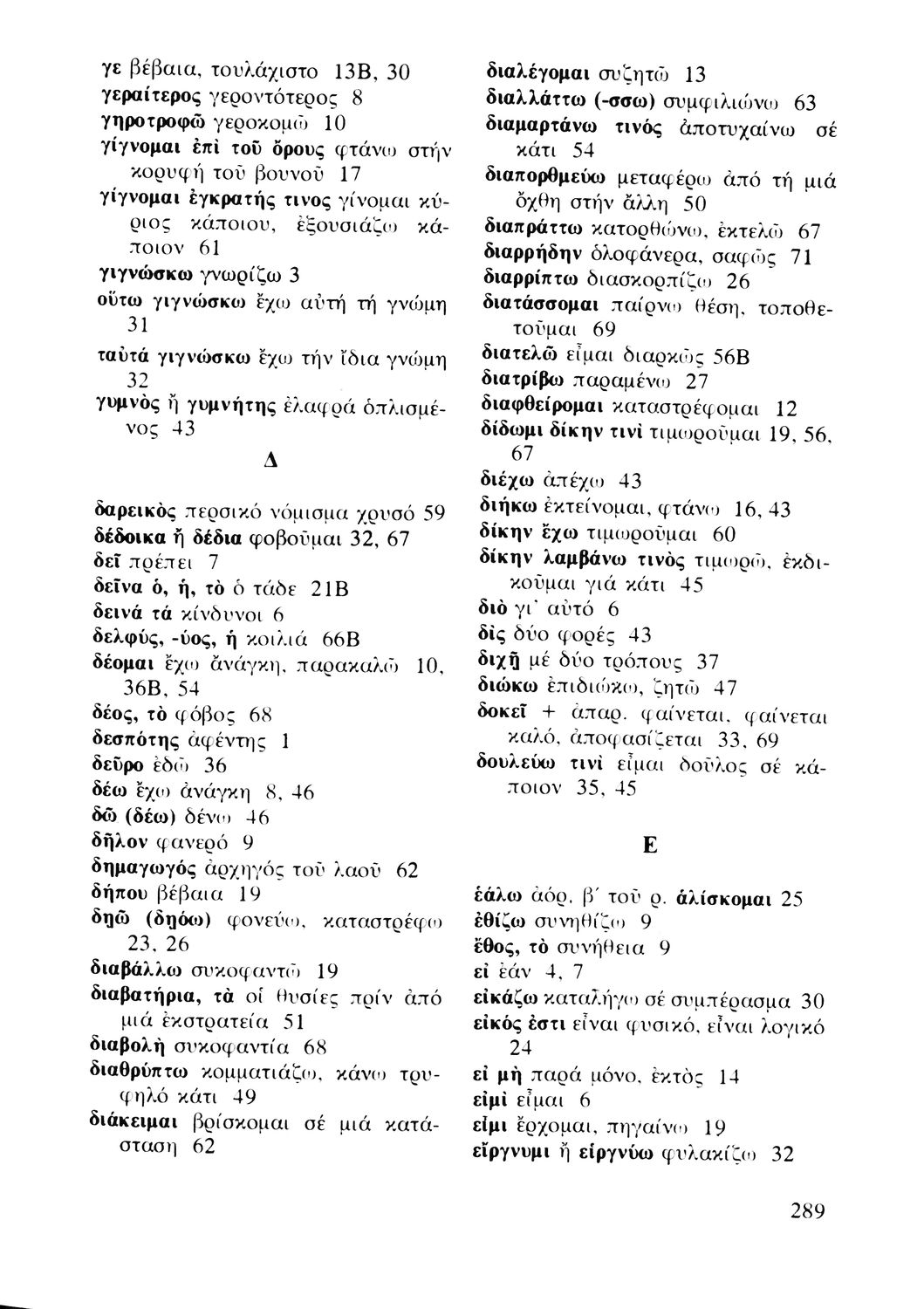 Σχολικό εγχειρίδιο Αρχαίων Ελληνικών Α' Λυκείου που περιλαμβάνει αποσπάσματα από κείμενα αρχαίων Ελλήνων συγγραφέων και γραμματικές, συντακτικές και ερμηνευτικές σημειώσεις. Περιέχει και ασκήσεις γραμματικής.