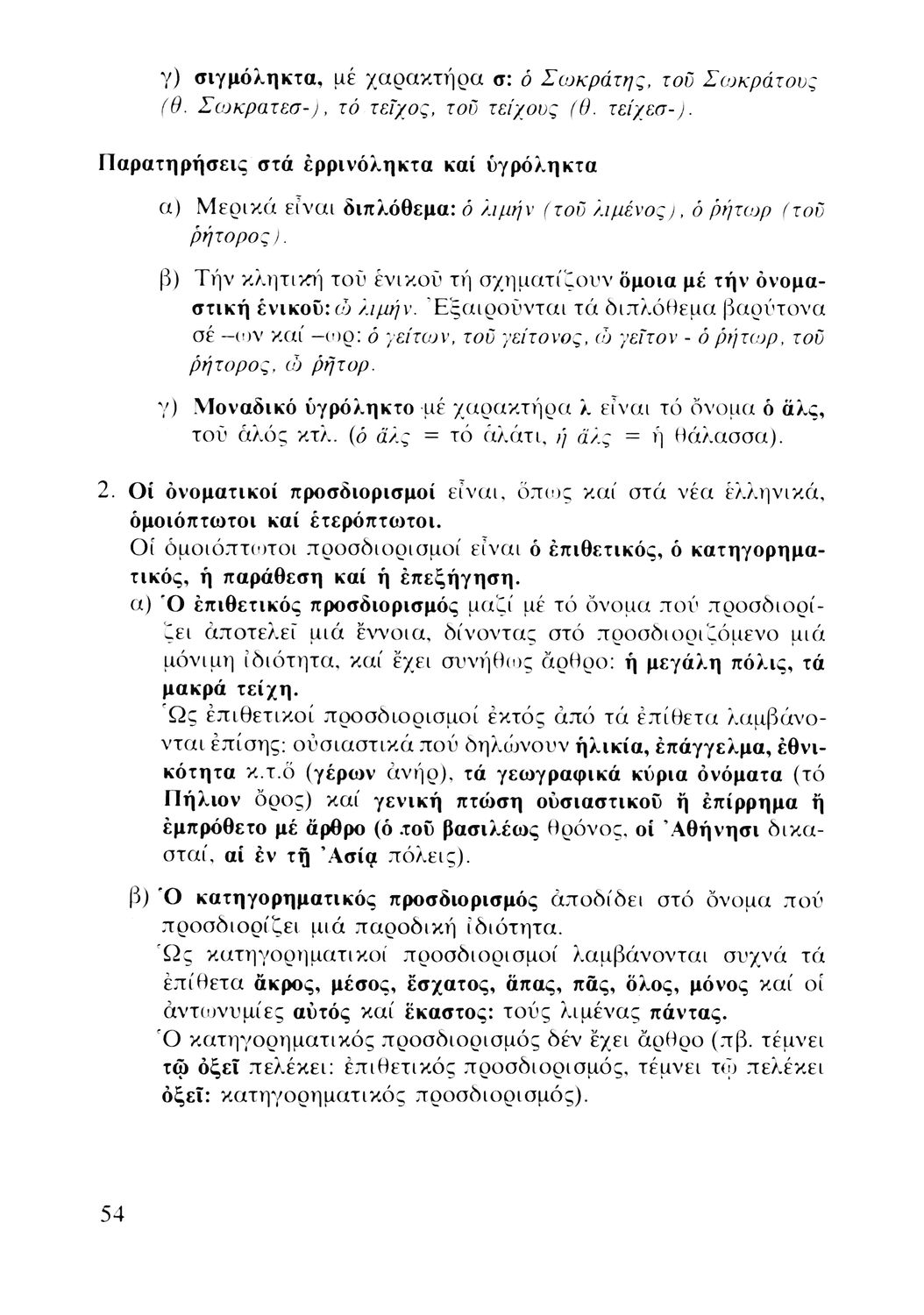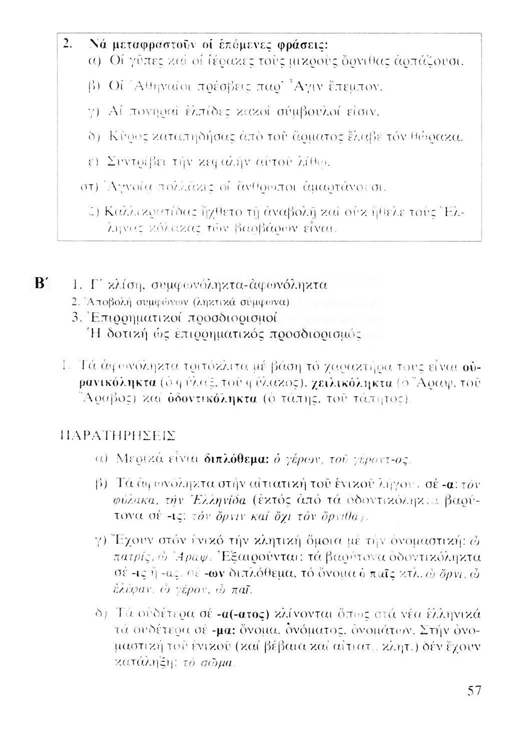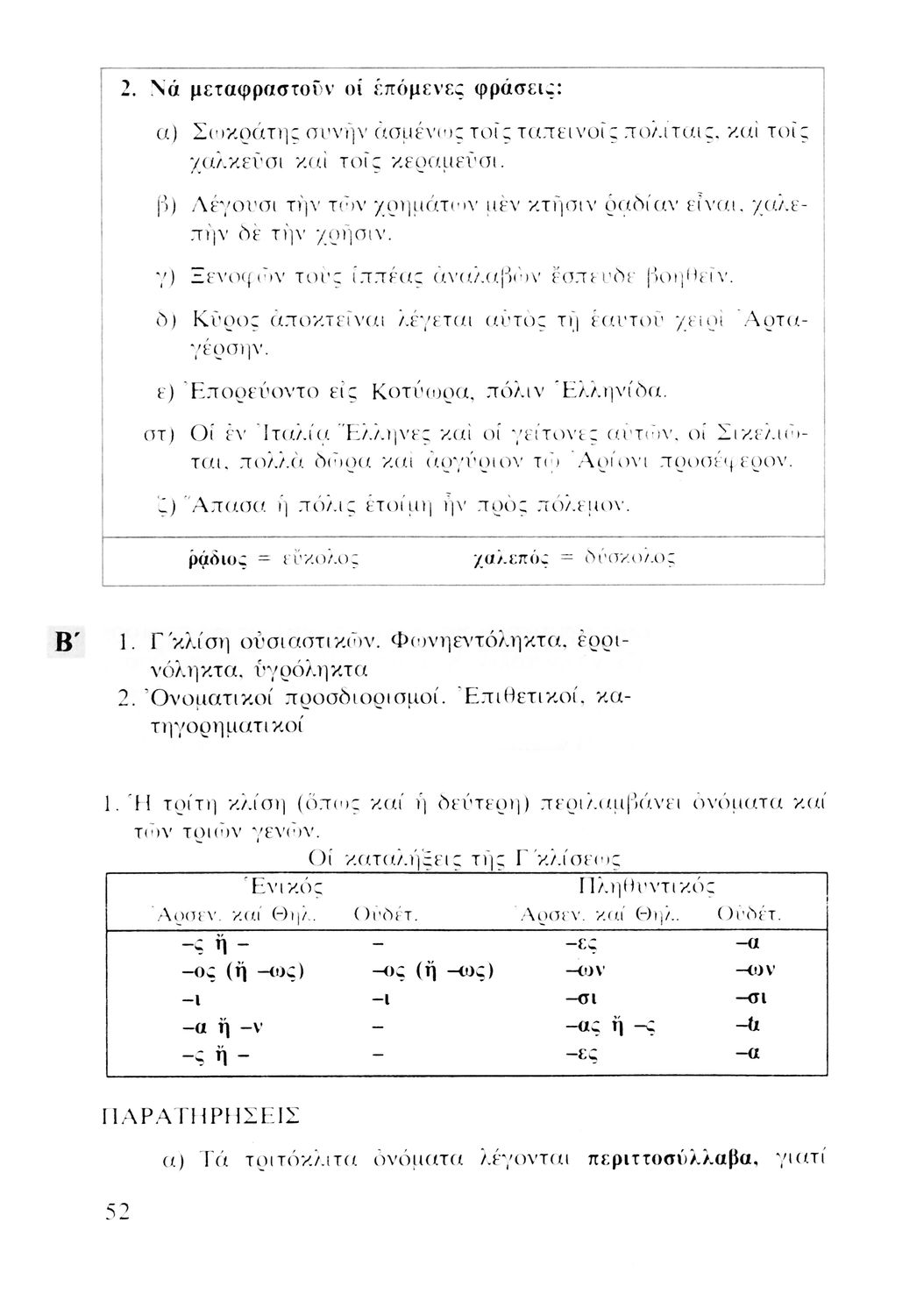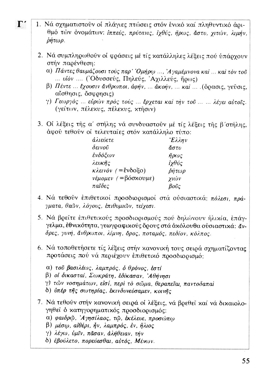 Σχολικό εγχειρίδιο Αρχαίων Ελληνικών για τις Α΄, Β΄ και Γ΄ Λυκείου που εξετάζει τα μέρη του λόγου και την σύνταξή τους.