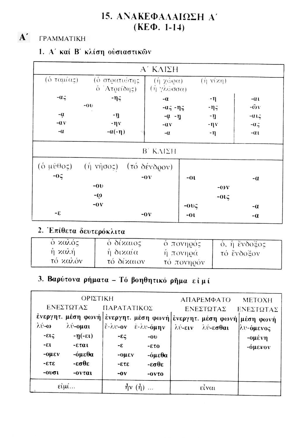 Αρχαία Ελληνικά, Α΄ Λυκείου