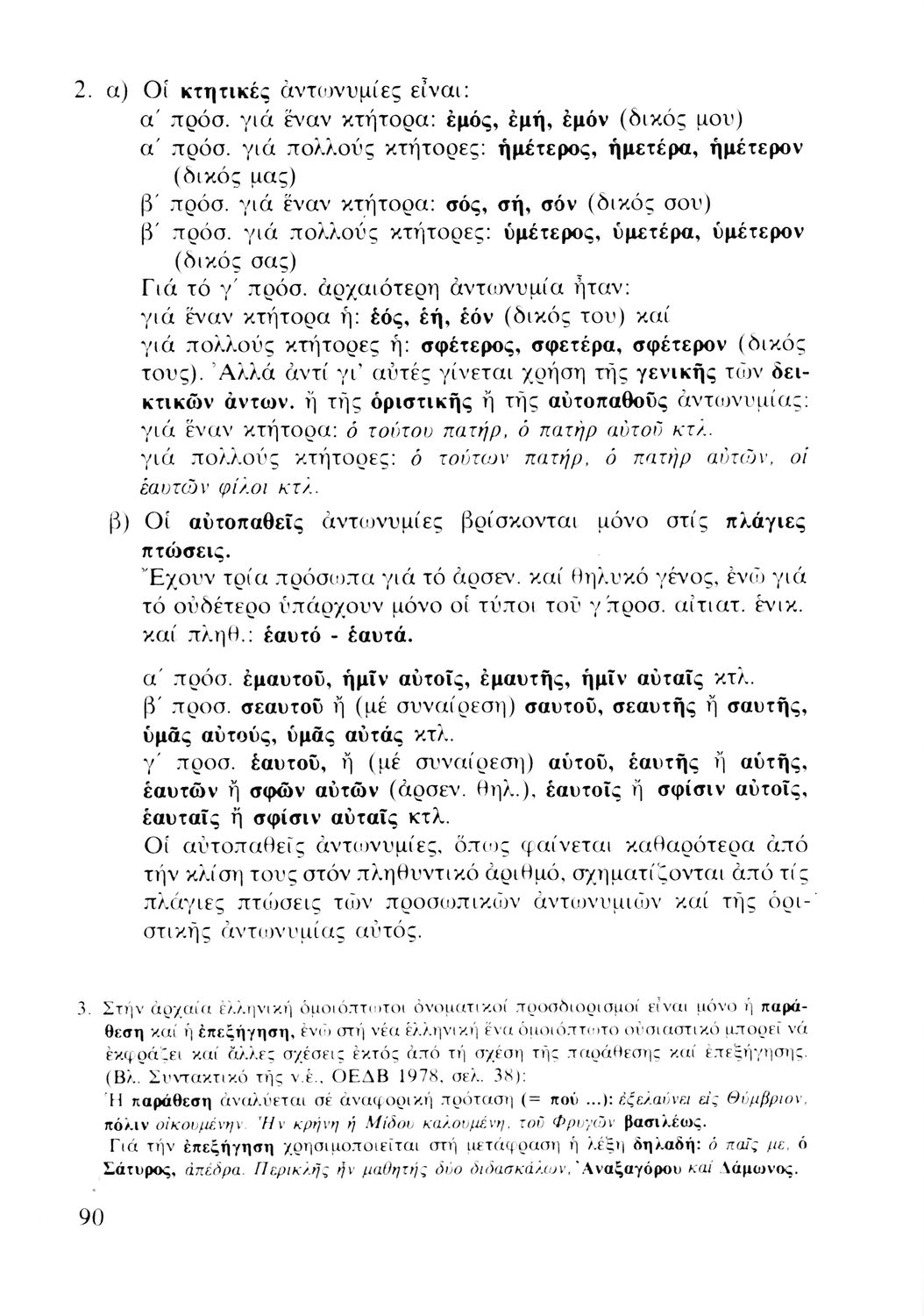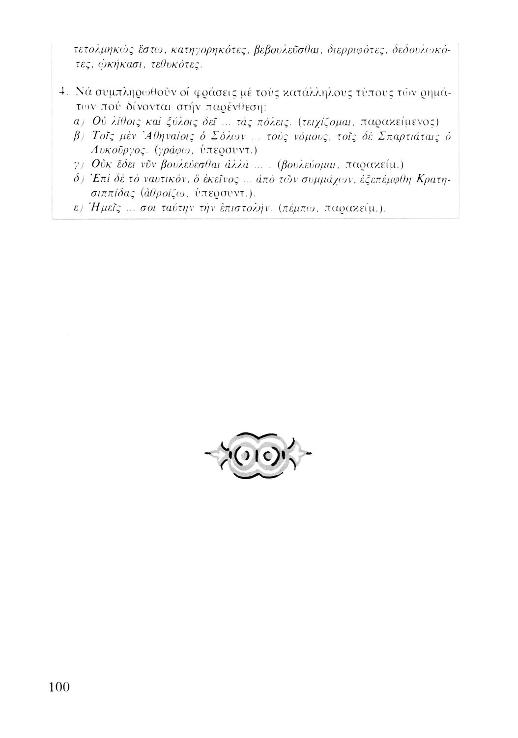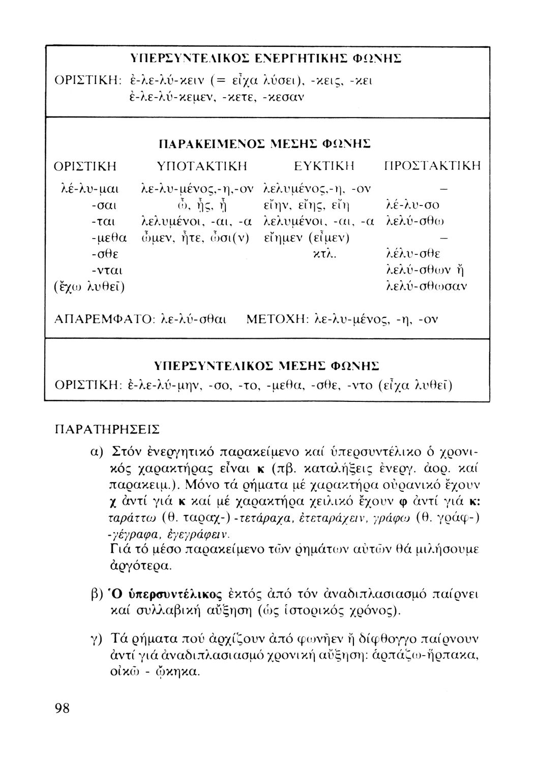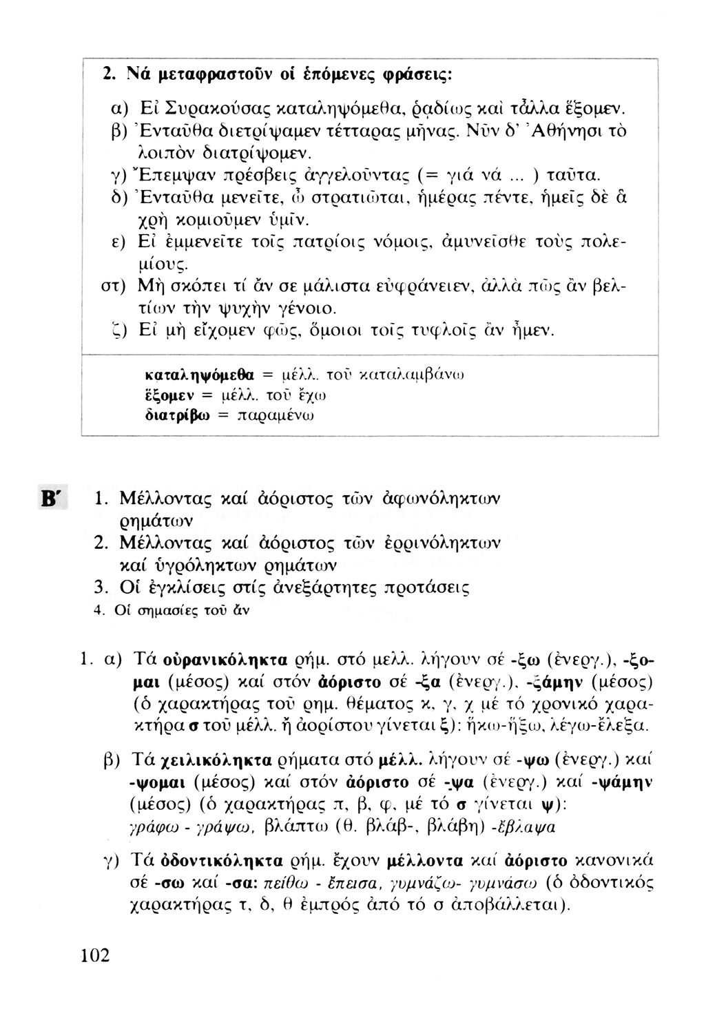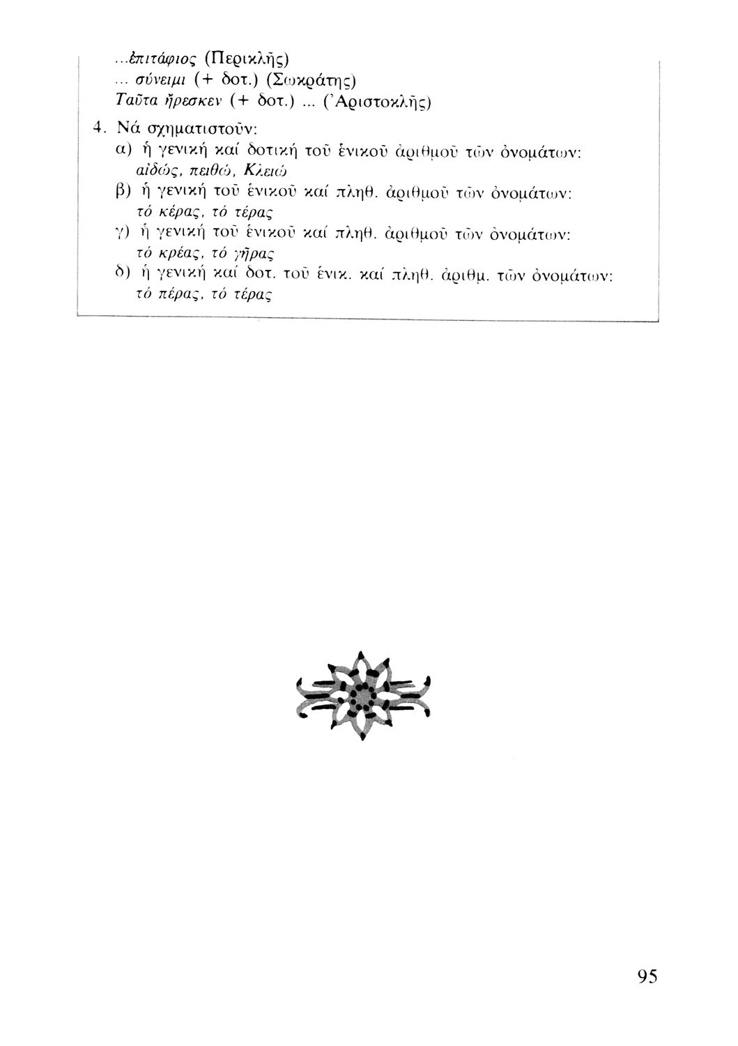 Σχολικό εγχειρίδιο Αρχαίων Ελληνικών για τις Α΄, Β΄ και Γ΄ Λυκείου που εξετάζει τα μέρη του λόγου και την σύνταξή τους.