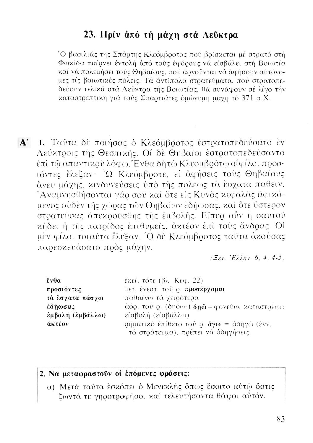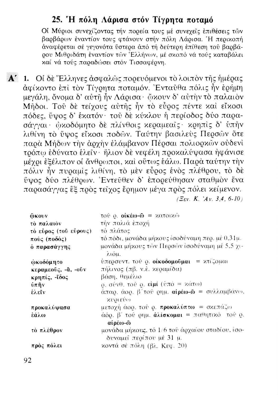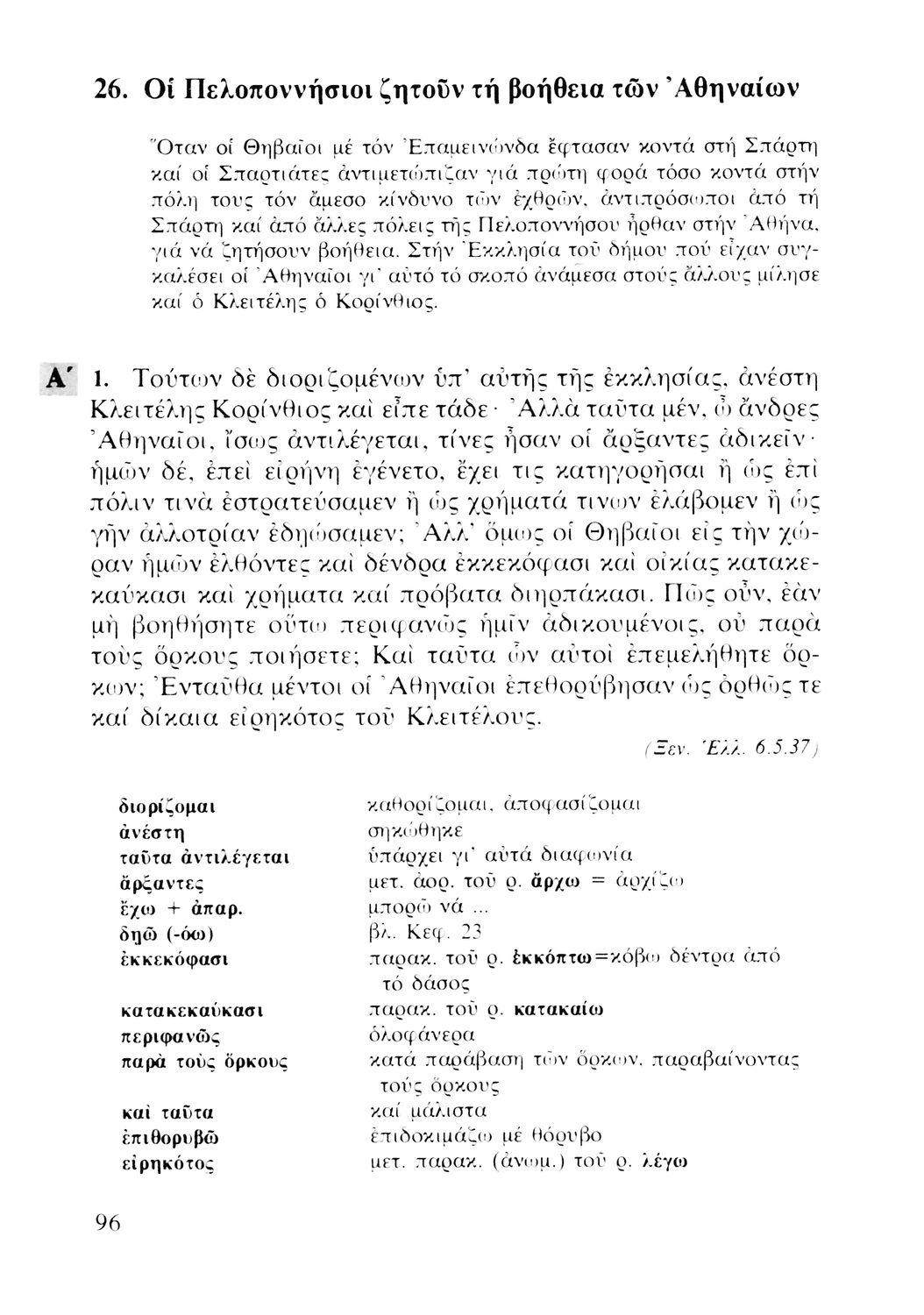 Σχολικό εγχειρίδιο Αρχαίων ελληνικών Α΄ Λυκείου που περιλαμβάνει αποσπάσματα από τα Ελληνικά του Ξενοφώντα, εισαγωγή στη ζωή και το έργο του, ερμηνευτικές σημειώσεις, τοπογραφικούς πίνακες και σχεδιαγράμματα ...