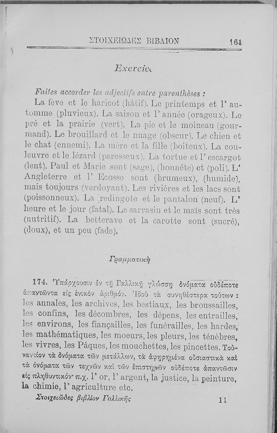 Σχολικό εγχειρίδιο Γαλλικών των Γυμνασίων, Αστικών Σχολείων θηλέων και Διδασκαλείων Δημοτικής Εκπαίδευσης. Κείμενα, ποιήματα, από εποχές και τον κοινωνικό και οικογενειακό βίο, τα οποία συνοδεύονται ασκήσεις ...