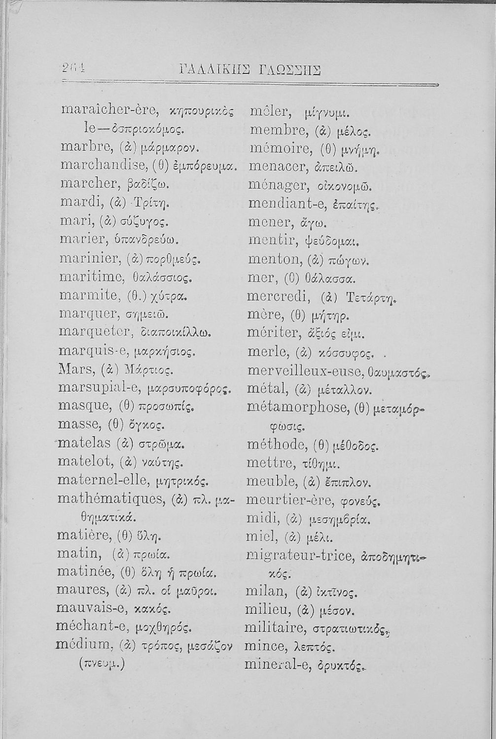 Σχολικό εγχειρίδιο Γαλλικών για τις Β΄ και Γ' Ελληνικού Σχολείου, Αστικού Σχολείου και Παρθεναγωγείου που περιλαμβάνει κείμενα, κανόνες γραμματικής και συντακτικού, λεξιλογικά και πραγματολογικά σχόλια.