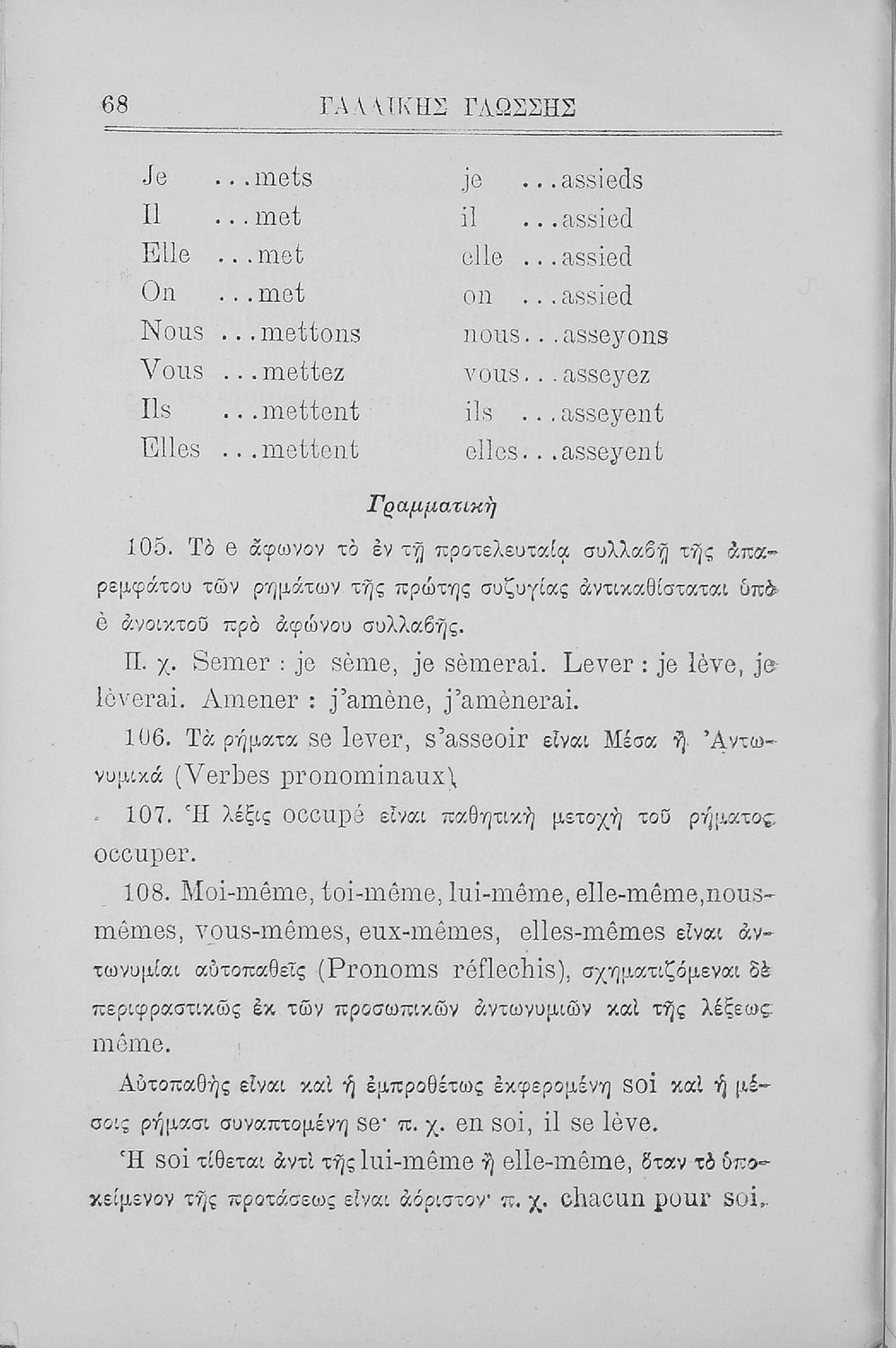 Σχολικό εγχειρίδιο Γαλλικών για τη Β' Ελληνικού Σχολείου, και τα Αστικά Σχολεία και Παρθεναγωγεία που περιλαμβάνει τους βασικούς κανόνες διδασκαλίας της γαλλικής γλώσσας, κανόνες τονισμού, γραμματικής και ...