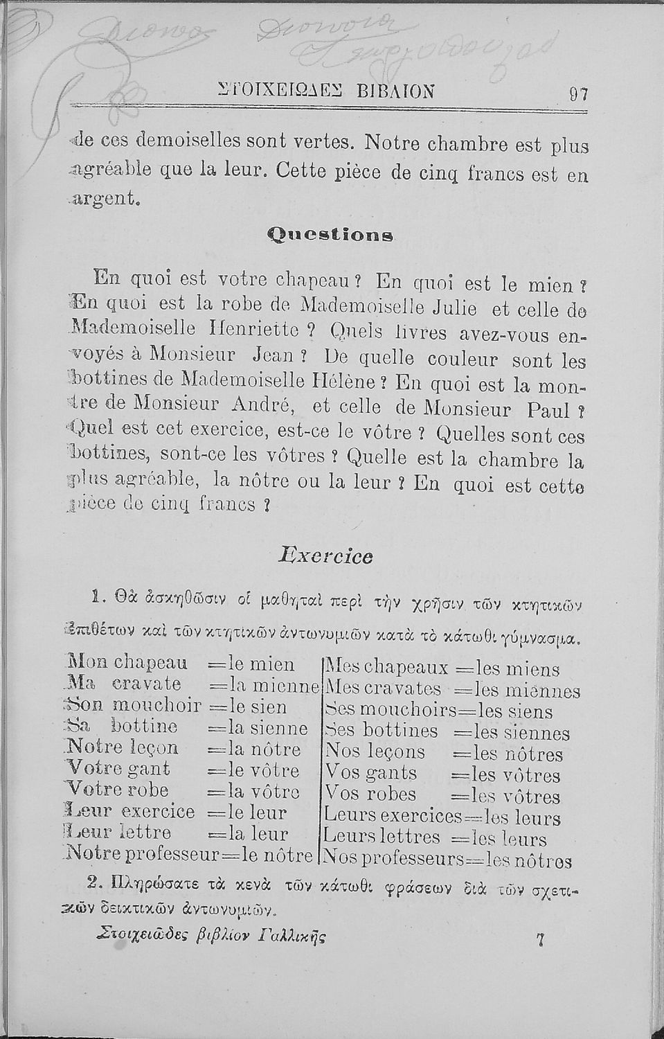 Στοιχειώδες βιβλίον προς διδασκαλίαν της γαλλικής γλώσσης δια την Β΄ και Γ΄ τάξιν του ελληνικού σχολείου
